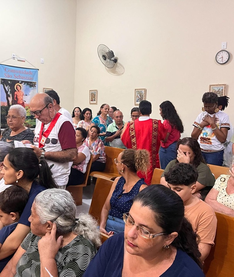 Após 3 dias de Tríduo em preparação para o dia de São Sebastião, nos dias 17, 18 e 19 (Sexta a Sábado), aconteceu no dia 20 de janeiro de 2025 às 19h30 na Comunidade São Sebastião, a Missa em honra ao Padroeiro da Comunidade com o tema: São Sebastião, Esperança de Conversão.