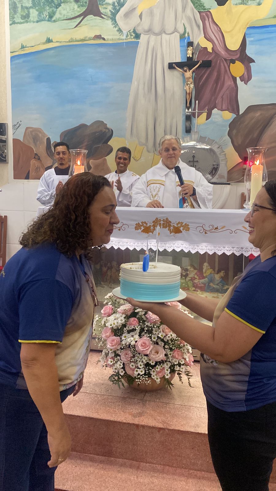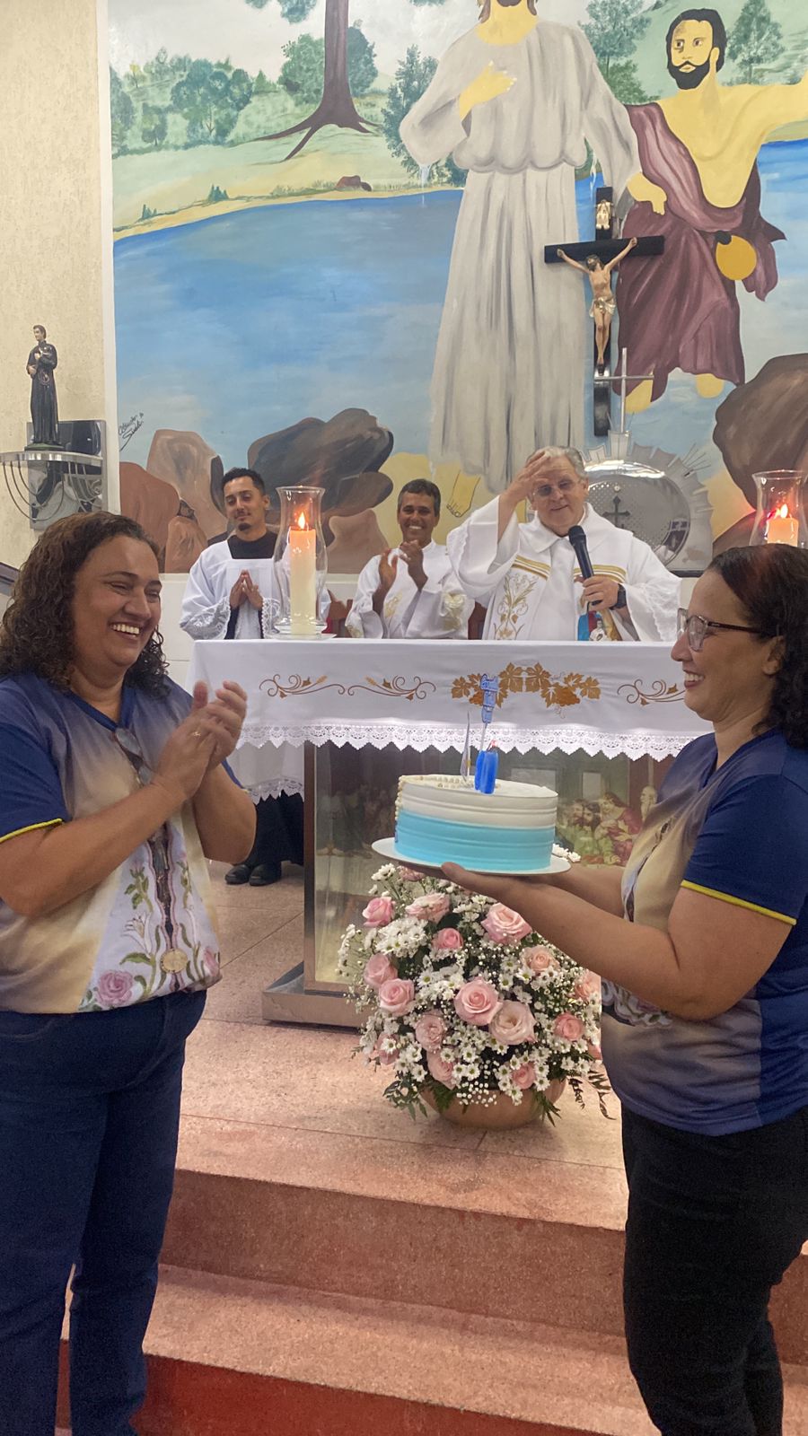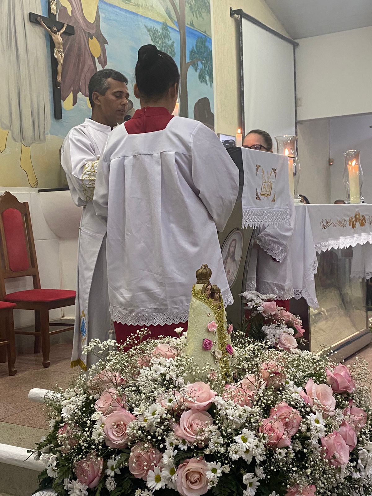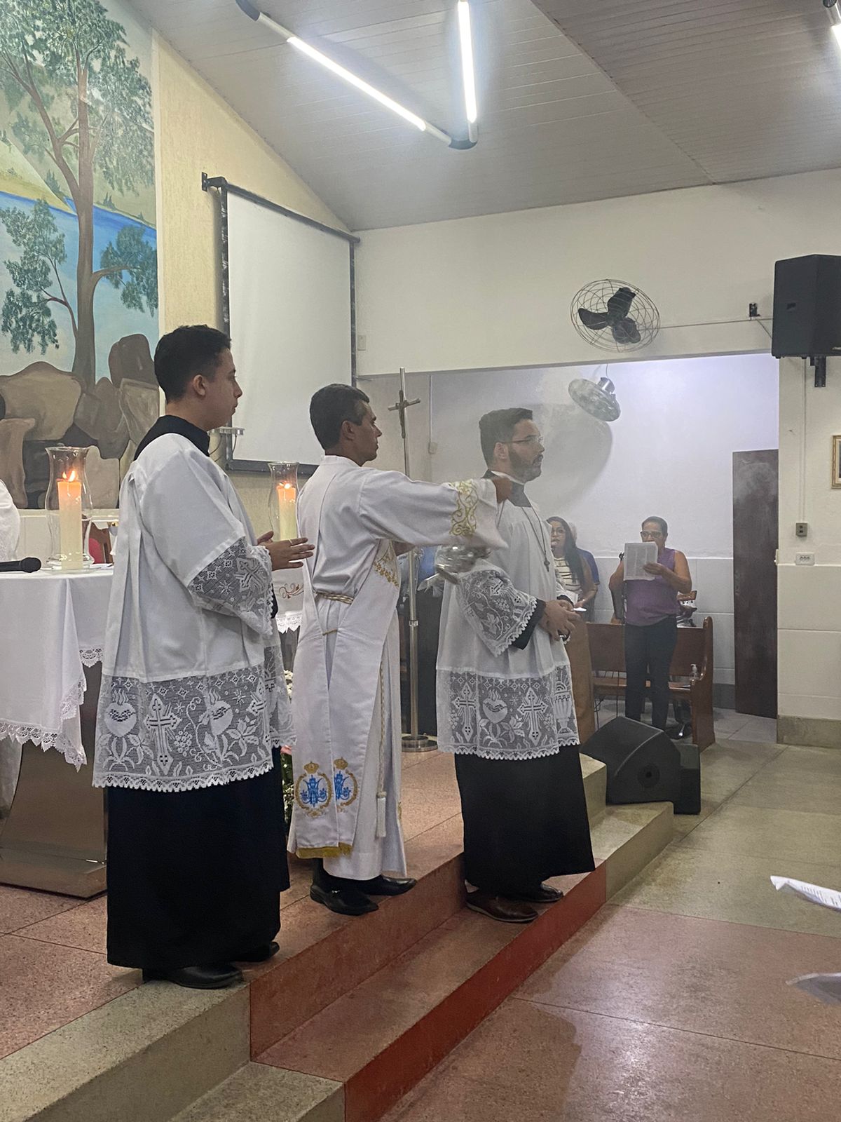 No dia 15 de Agosto às 19:30h na rua Francisca Constâncio 65 Bom Jardim realizou a Santa Missa com o Pé. Aloísio Vieira e o Diácono Márcio Rogério em celebração de júbilo em comemoração dos 30 anos de caminhada da Comunidade Maria de Nazaré. Toda a comunidade se reuniu e tivemos a presença de pessoas de várias comunidades da paróquia que vieram para celebrar junto conosco esse momento de muitas alegrias, celebrar o aniversário nada comunidade é agradecer a todos que já passaram pela nossa comunidade que deixaram seu grande legado de amor e comprometimento com os nossos irmãos, é reconhecer que eles deixaram o caminho a ser seguido e gratidão por tudo o que fizeram e hoje não se encontram aqui no meio de nós e lembrar também te tantos outros que buscaram novos rumos mas que ainda contribuem com suas orações e a todos nós que estamos continuando a escrever essa história de desafios e lutas na evangelização, mas somos vitoriosos porque Jesus Cristo nos dá essa vitória. E como todo aniversário tem que ter Bolo e este foi conduzido por Márcia coordenadora de liturgia até ao presbítero acompanha de palmas e canto de parabéns e que ficou responsável por soprar as velas foi a coordenadora da comunidade Marilza Gomes, ao final da celebração um dos momentos mais importantes do lado de fora da igreja o terço já estava posicionado e pronto para elevar até aos céus aos pés de Jesus Cristo todos os pedidos do povo, Diácono Márcio conduziu esse momento e ao som da Oração da Ave Maria o terço subiu até aos céus e foi acompanhado por fogos e pela assembleia que com os olhos fixos contemplava esse momento de agradecimento e pedidos a nossa senhora, o bolo foi servido logo após.