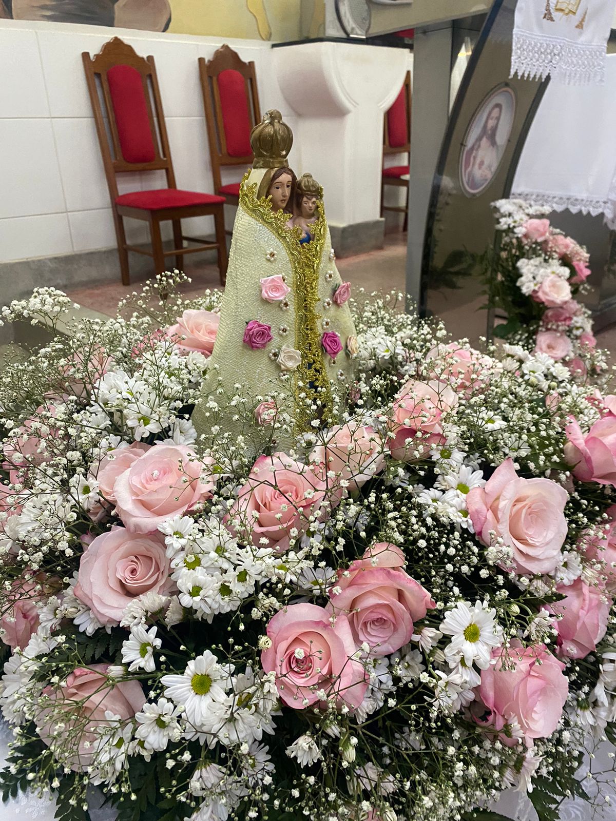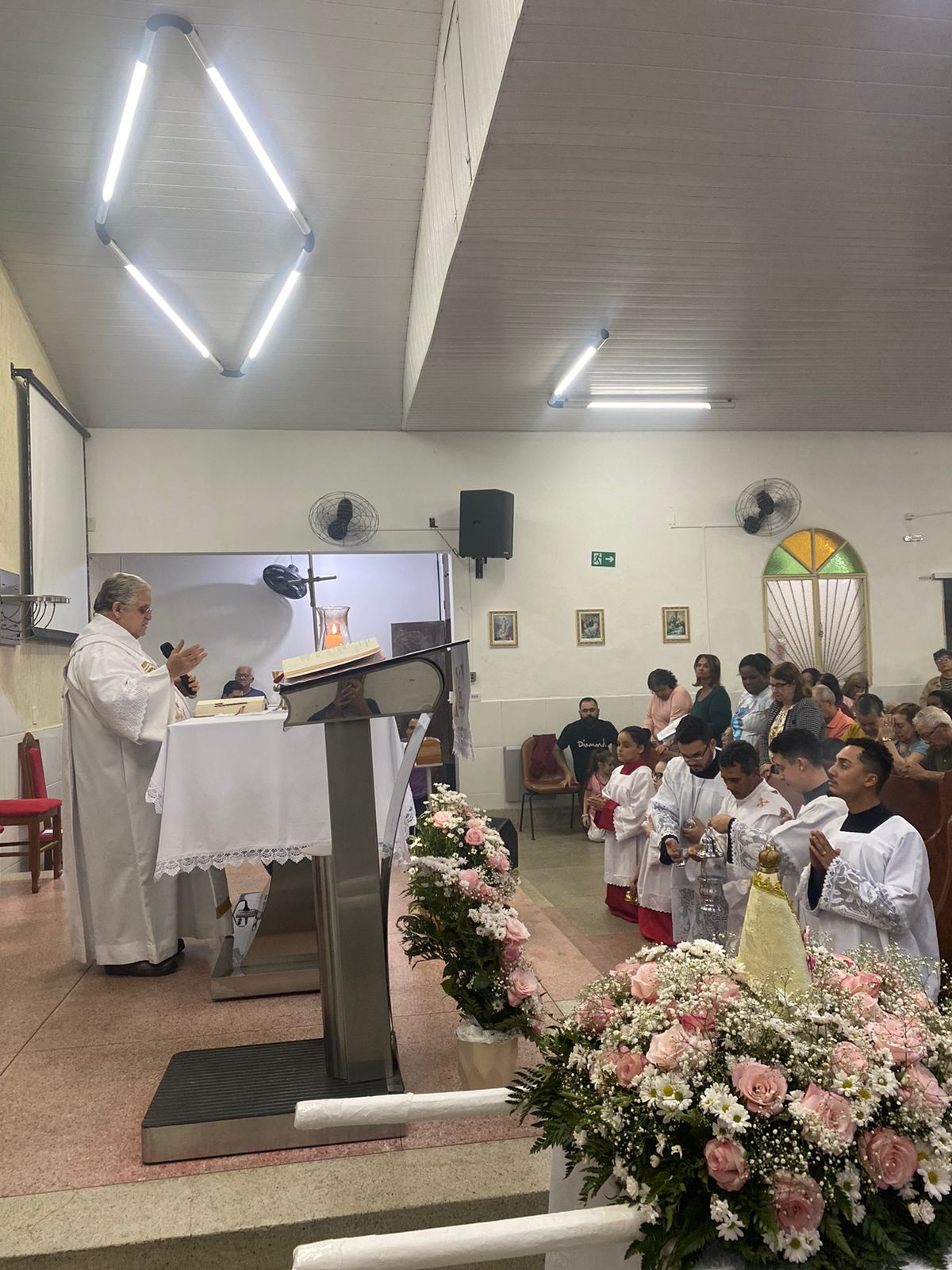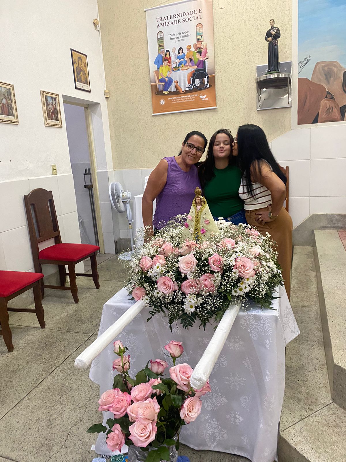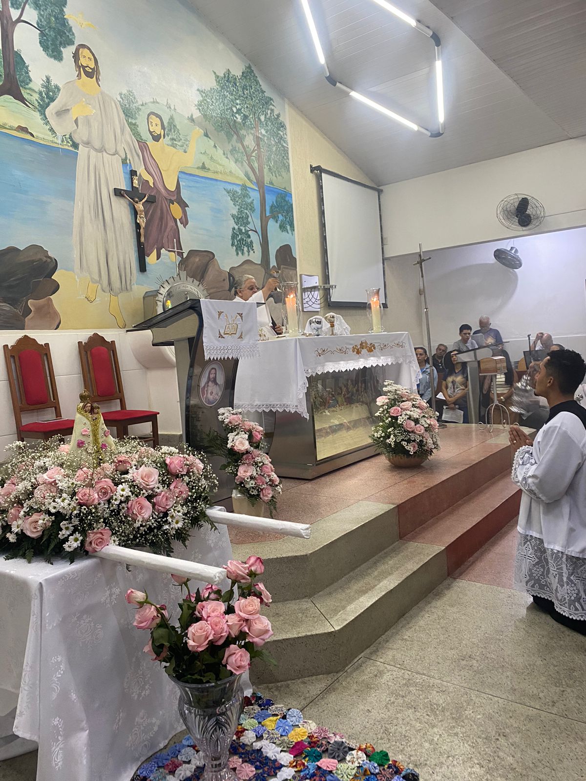 No dia 15 de Agosto às 19:30h na rua Francisca Constâncio 65 Bom Jardim realizou a Santa Missa com o Pé. Aloísio Vieira e o Diácono Márcio Rogério em celebração de júbilo em comemoração dos 30 anos de caminhada da Comunidade Maria de Nazaré. Toda a comunidade se reuniu e tivemos a presença de pessoas de várias comunidades da paróquia que vieram para celebrar junto conosco esse momento de muitas alegrias, celebrar o aniversário nada comunidade é agradecer a todos que já passaram pela nossa comunidade que deixaram seu grande legado de amor e comprometimento com os nossos irmãos, é reconhecer que eles deixaram o caminho a ser seguido e gratidão por tudo o que fizeram e hoje não se encontram aqui no meio de nós e lembrar também te tantos outros que buscaram novos rumos mas que ainda contribuem com suas orações e a todos nós que estamos continuando a escrever essa história de desafios e lutas na evangelização, mas somos vitoriosos porque Jesus Cristo nos dá essa vitória. E como todo aniversário tem que ter Bolo e este foi conduzido por Márcia coordenadora de liturgia até ao presbítero acompanha de palmas e canto de parabéns e que ficou responsável por soprar as velas foi a coordenadora da comunidade Marilza Gomes, ao final da celebração um dos momentos mais importantes do lado de fora da igreja o terço já estava posicionado e pronto para elevar até aos céus aos pés de Jesus Cristo todos os pedidos do povo, Diácono Márcio conduziu esse momento e ao som da Oração da Ave Maria o terço subiu até aos céus e foi acompanhado por fogos e pela assembleia que com os olhos fixos contemplava esse momento de agradecimento e pedidos a nossa senhora, o bolo foi servido logo após.