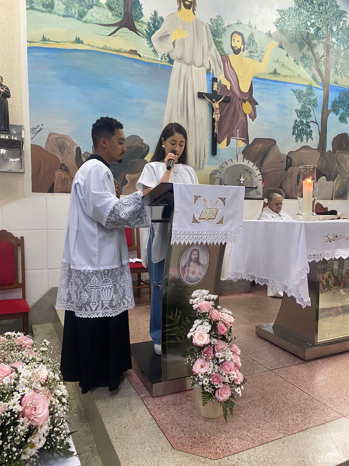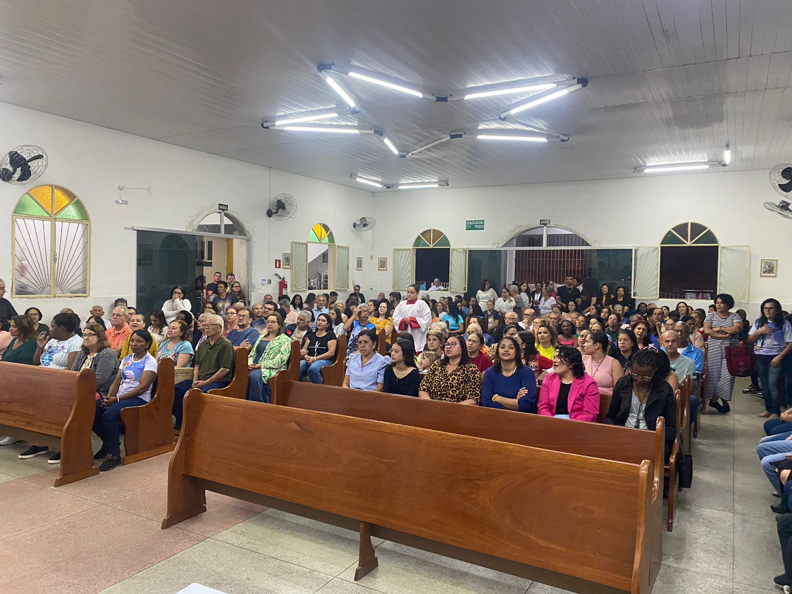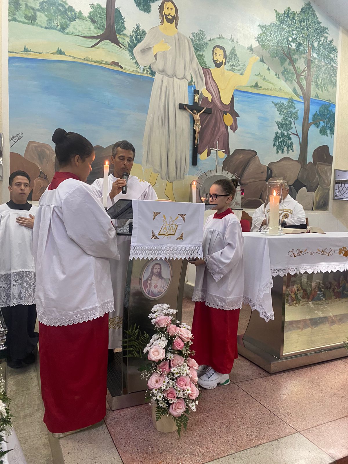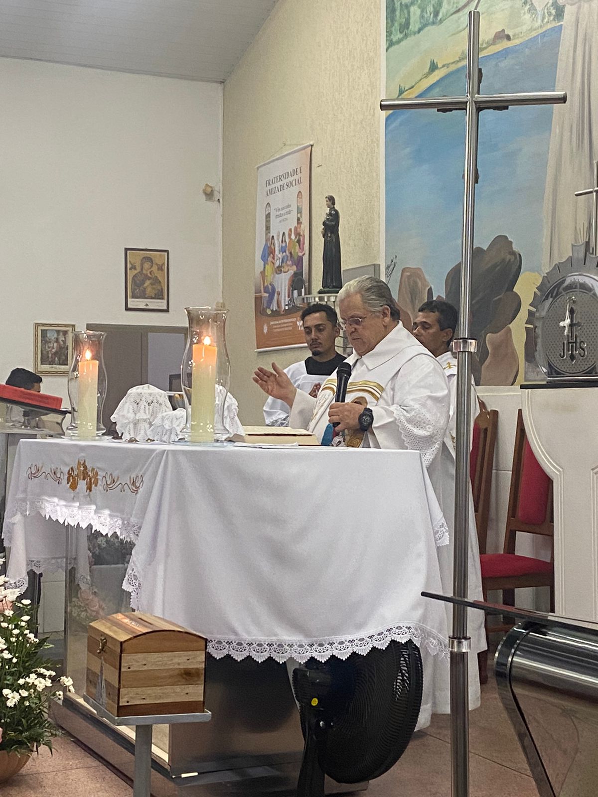No dia 15 de Agosto às 19:30h na rua Francisca Constâncio 65 Bom Jardim realizou a Santa Missa com o Pé. Aloísio Vieira e o Diácono Márcio Rogério em celebração de júbilo em comemoração dos 30 anos de caminhada da Comunidade Maria de Nazaré. Toda a comunidade se reuniu e tivemos a presença de pessoas de várias comunidades da paróquia que vieram para celebrar junto conosco esse momento de muitas alegrias, celebrar o aniversário nada comunidade é agradecer a todos que já passaram pela nossa comunidade que deixaram seu grande legado de amor e comprometimento com os nossos irmãos, é reconhecer que eles deixaram o caminho a ser seguido e gratidão por tudo o que fizeram e hoje não se encontram aqui no meio de nós e lembrar também te tantos outros que buscaram novos rumos mas que ainda contribuem com suas orações e a todos nós que estamos continuando a escrever essa história de desafios e lutas na evangelização, mas somos vitoriosos porque Jesus Cristo nos dá essa vitória. E como todo aniversário tem que ter Bolo e este foi conduzido por Márcia coordenadora de liturgia até ao presbítero acompanha de palmas e canto de parabéns e que ficou responsável por soprar as velas foi a coordenadora da comunidade Marilza Gomes, ao final da celebração um dos momentos mais importantes do lado de fora da igreja o terço já estava posicionado e pronto para elevar até aos céus aos pés de Jesus Cristo todos os pedidos do povo, Diácono Márcio conduziu esse momento e ao som da Oração da Ave Maria o terço subiu até aos céus e foi acompanhado por fogos e pela assembleia que com os olhos fixos contemplava esse momento de agradecimento e pedidos a nossa senhora, o bolo foi servido logo após.