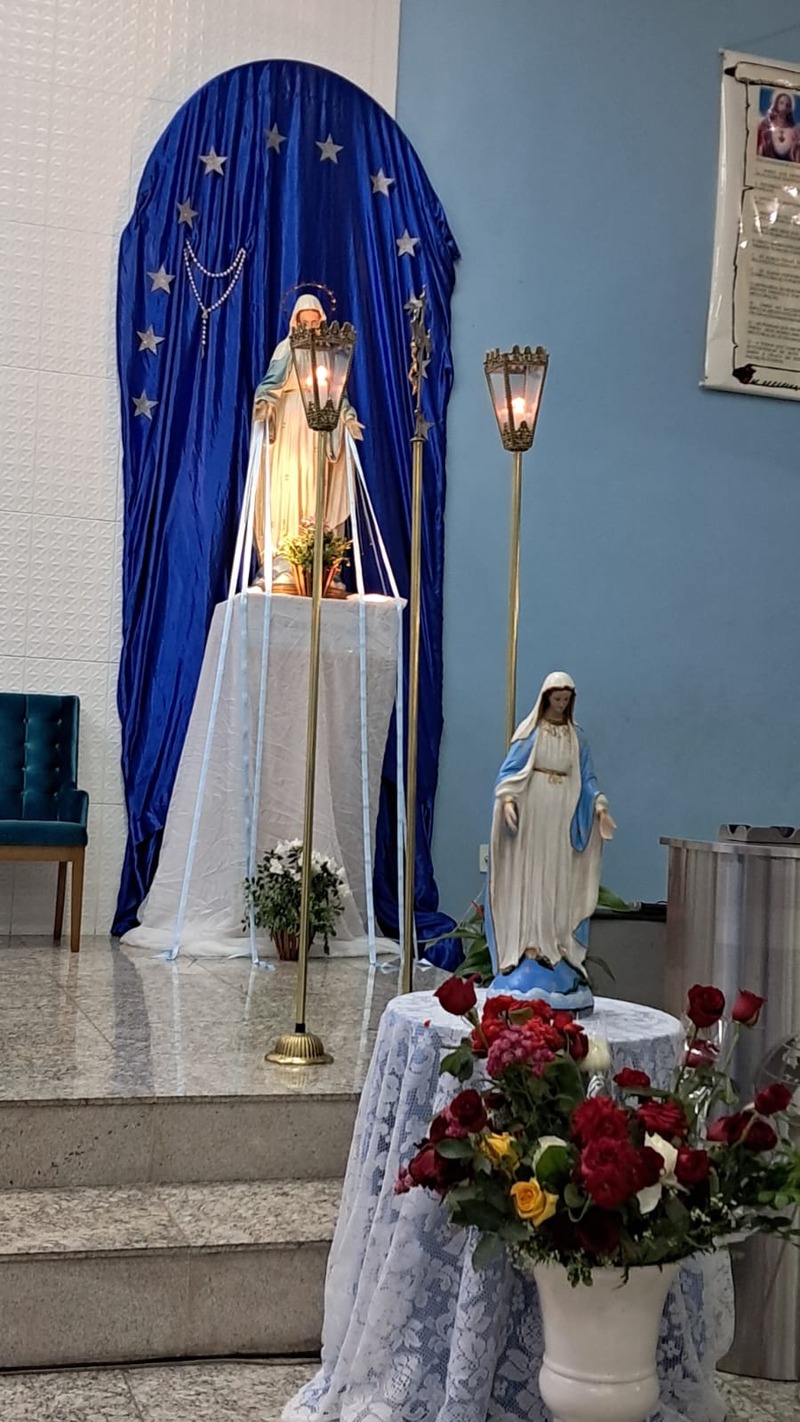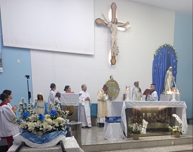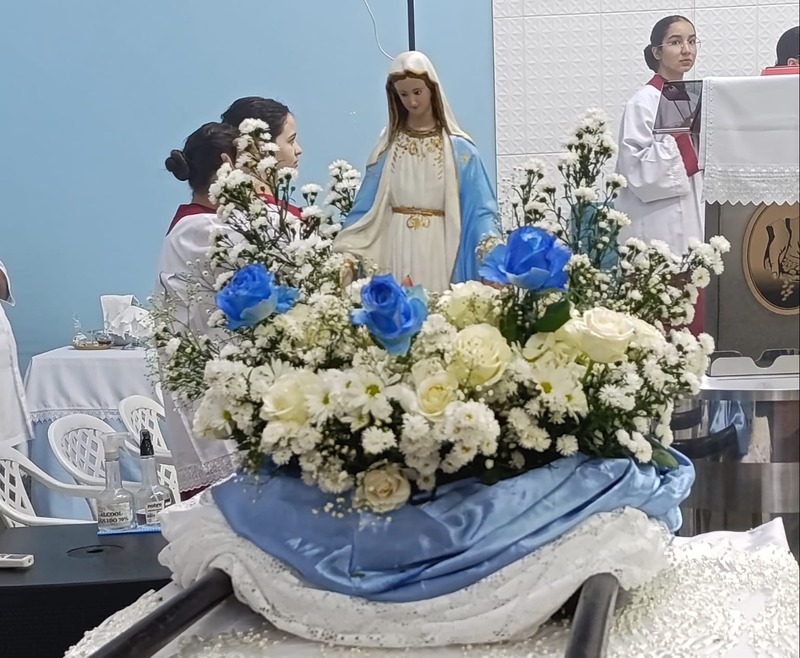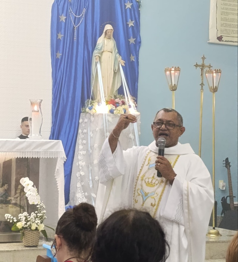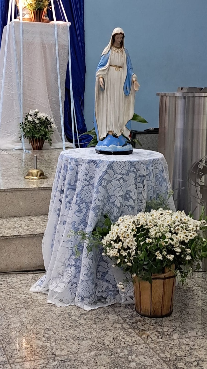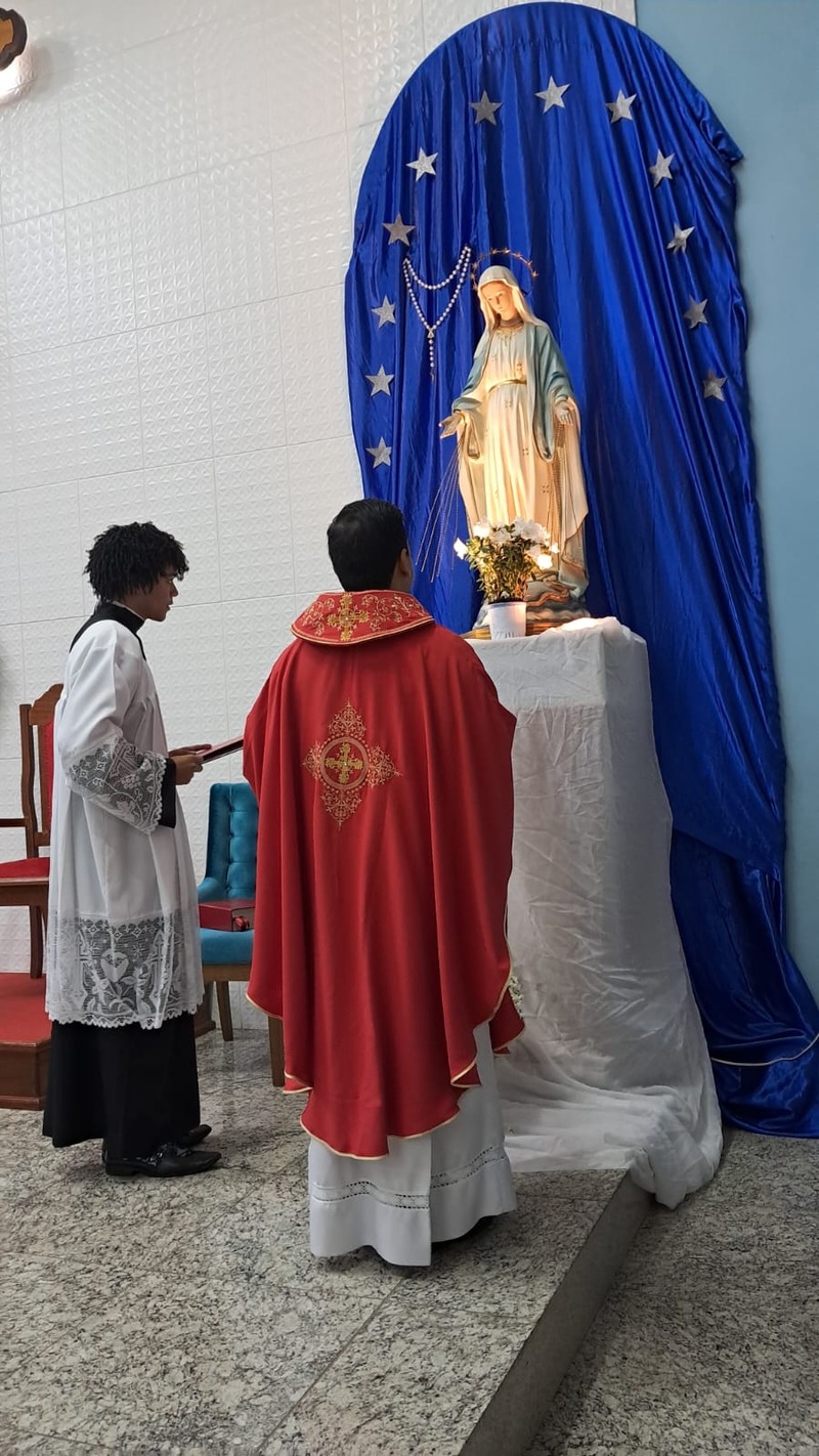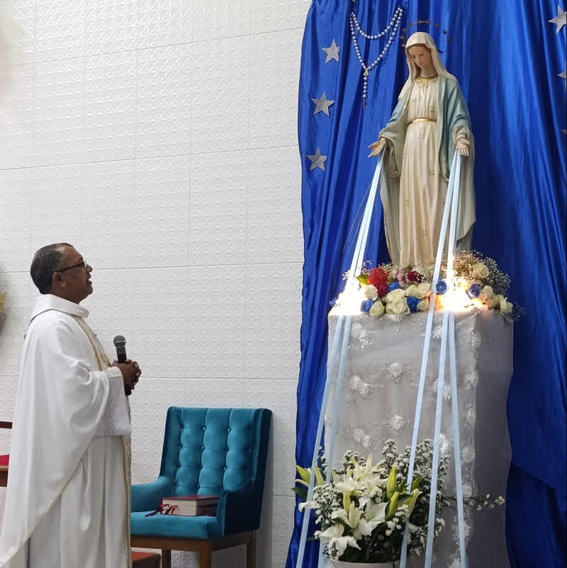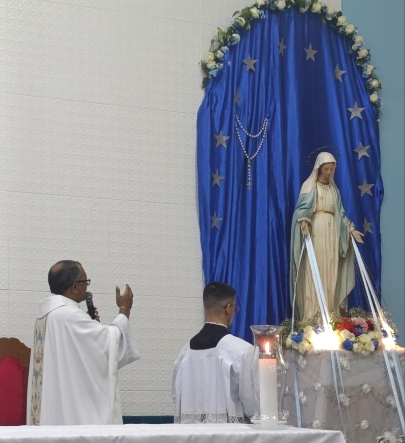 A Santa Missa pela solenidade de Nossa Senhoras das Graças, foi celebrada pelo Pároco da Paróquia Nossa Senhora Aparecida do bairro Iguaçu, Padre Marco José e contou com o auxílio do Diácono Henrique Armstrong Carvalho. Em sua reflexão, Padre Marco José falou sobre a história de Nossa Senhora das Graças e seus milagres, a na oportunidade ele disse: “se estou aqui hoje como Padre, é graças a intercessão de Nossa Senhora das Graças”. A Comunidade agradece a todos que envolveram, para levar aos fiéis este momento de Fé. Nossa Senhora das Graças, rogai por nós.