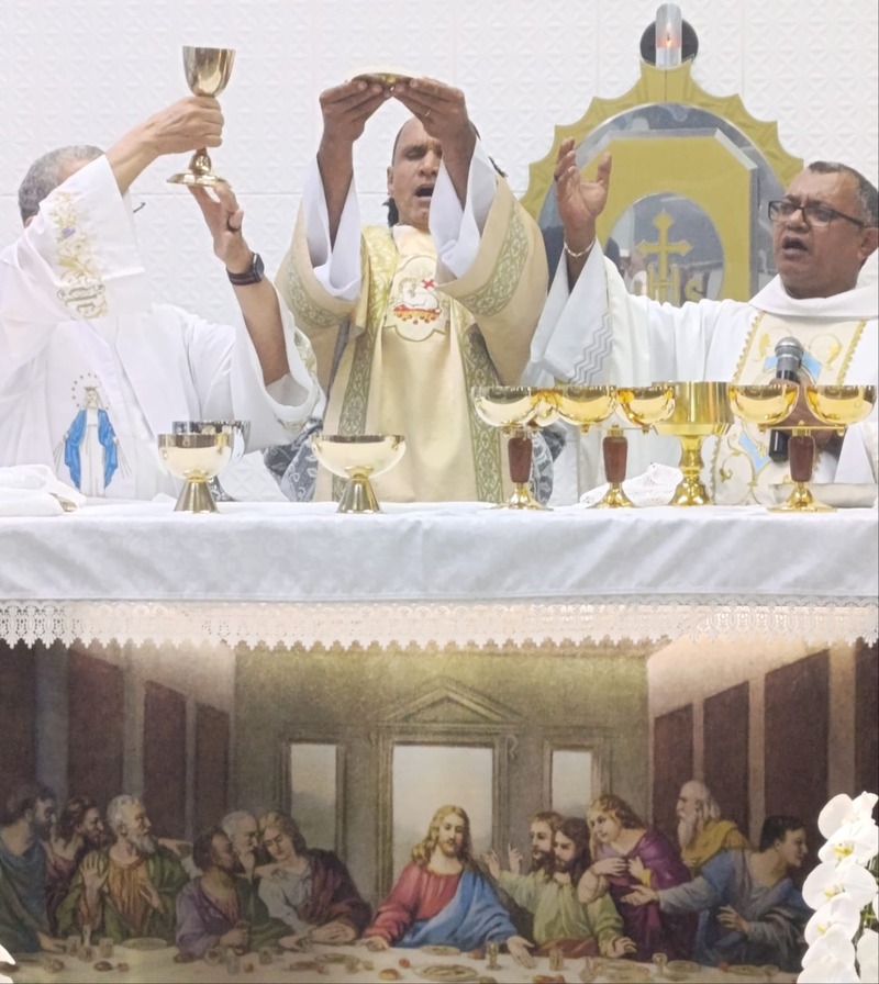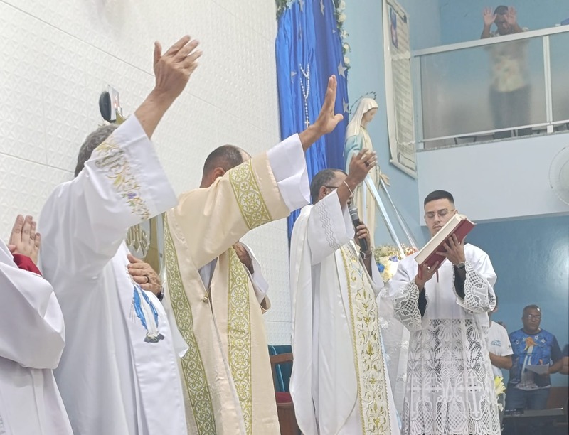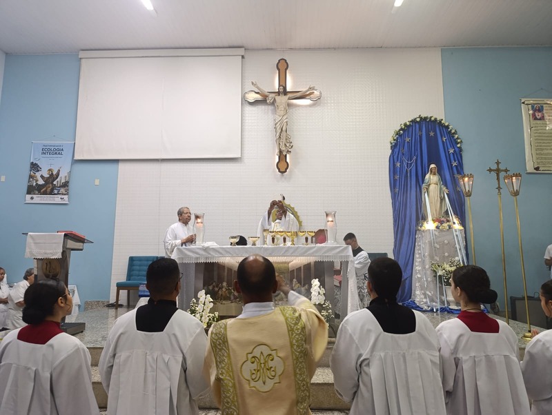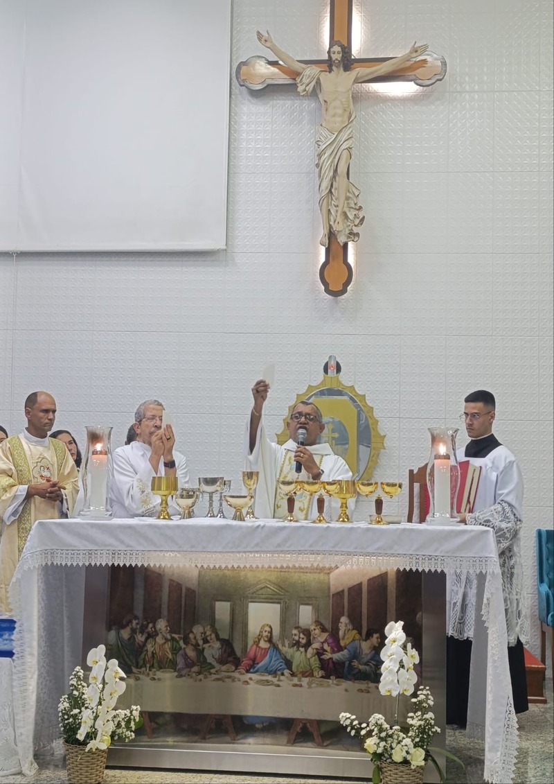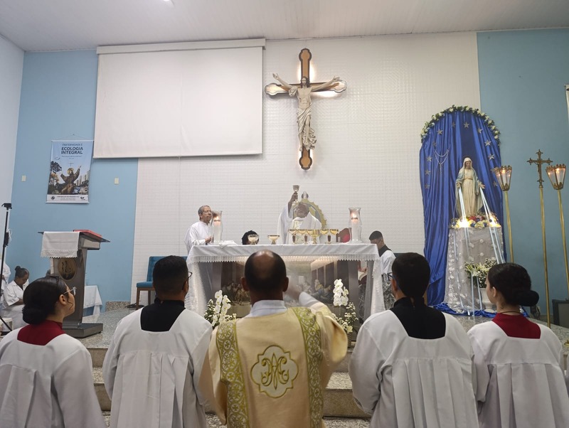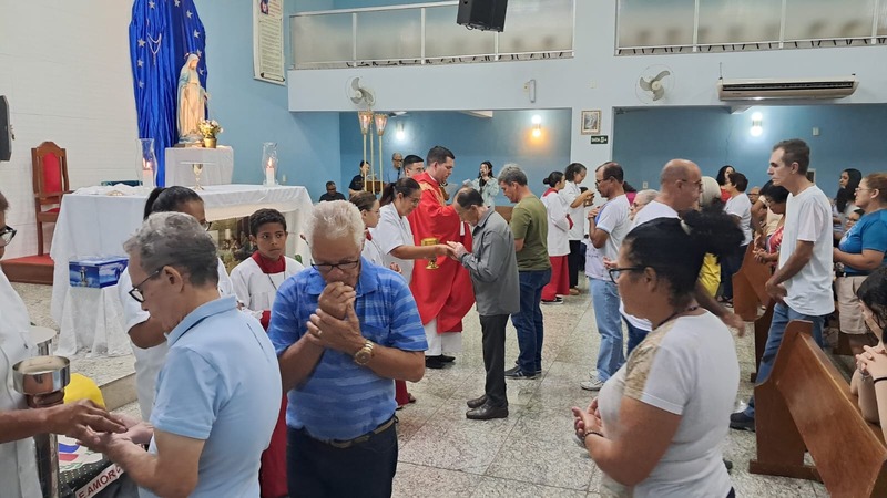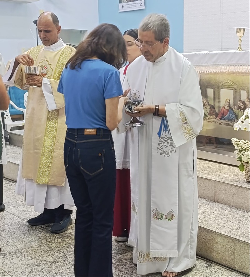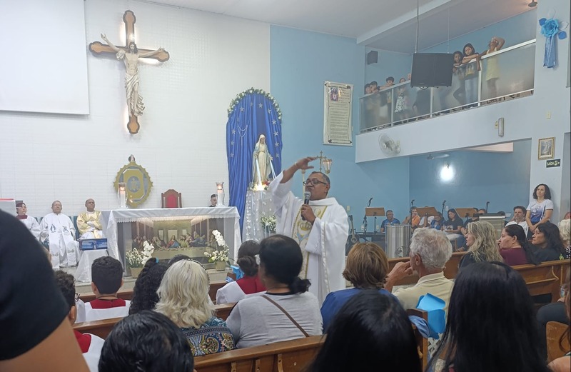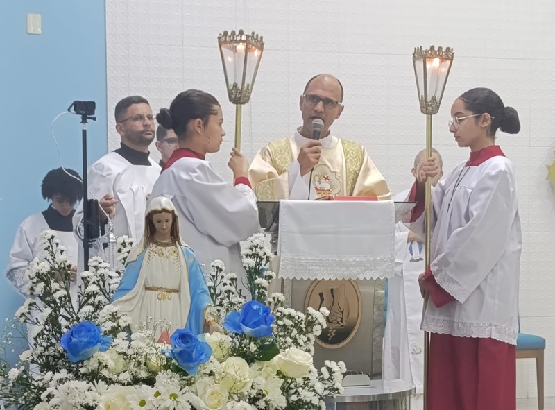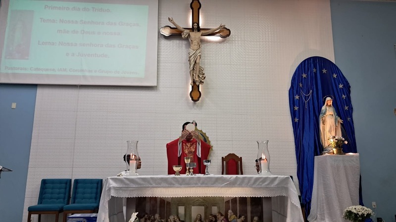 A Santa Missa pela solenidade de Nossa Senhoras das Graças, foi celebrada pelo Pároco da Paróquia Nossa Senhora Aparecida do bairro Iguaçu, Padre Marco José e contou com o auxílio do Diácono Henrique Armstrong Carvalho. Em sua reflexão, Padre Marco José falou sobre a história de Nossa Senhora das Graças e seus milagres, a na oportunidade ele disse: “se estou aqui hoje como Padre, é graças a intercessão de Nossa Senhora das Graças”. A Comunidade agradece a todos que envolveram, para levar aos fiéis este momento de Fé. Nossa Senhora das Graças, rogai por nós.