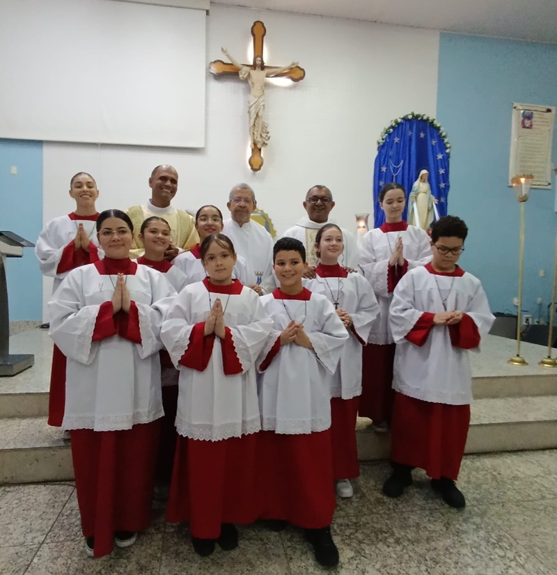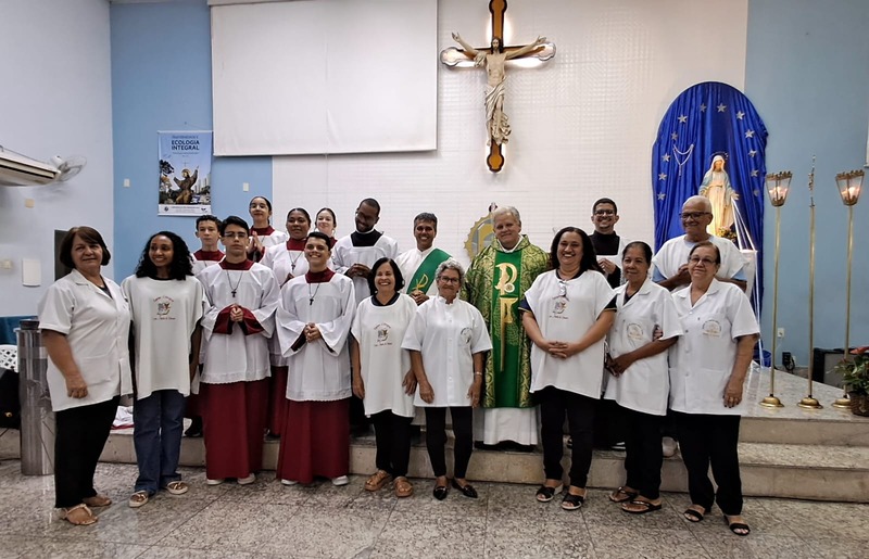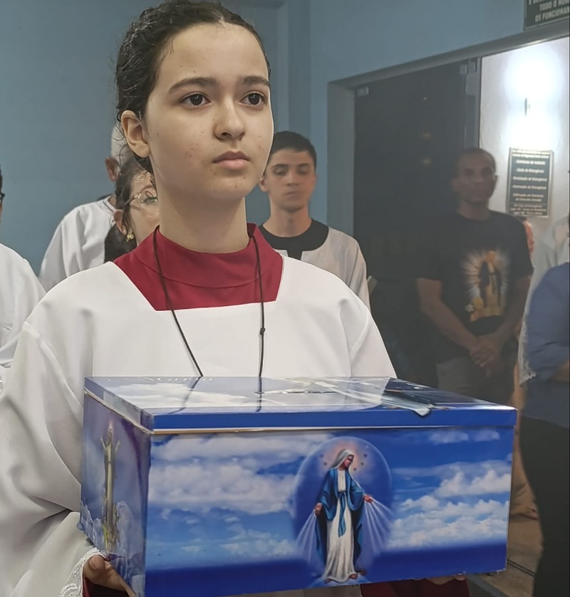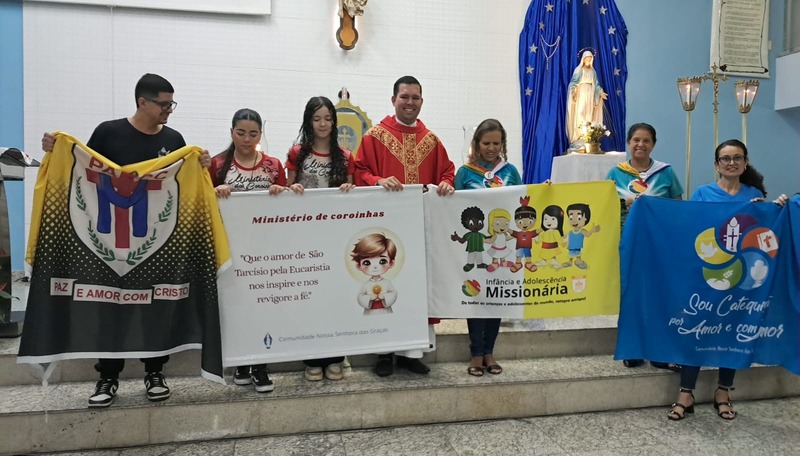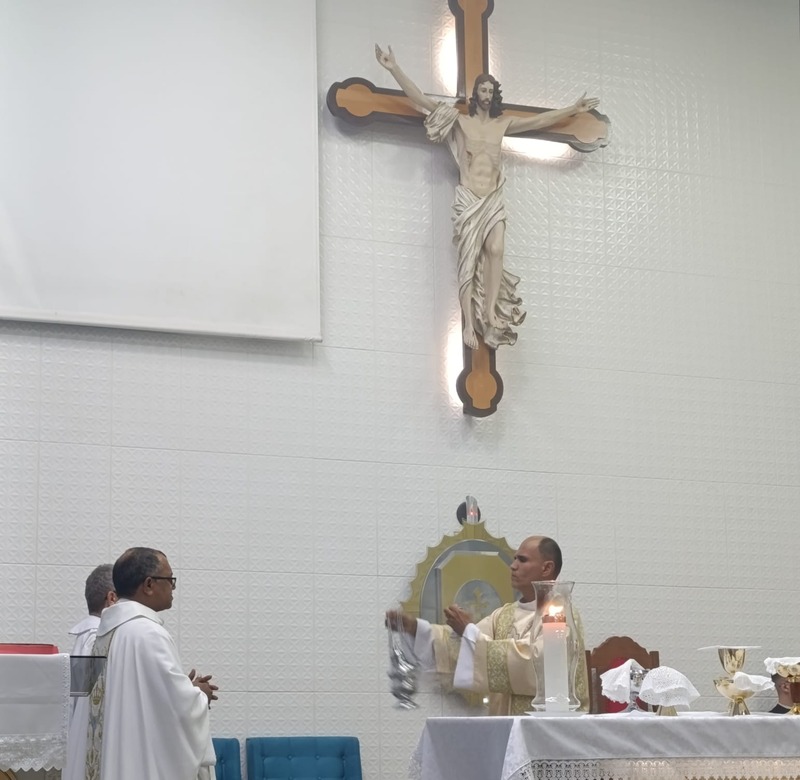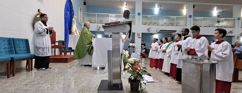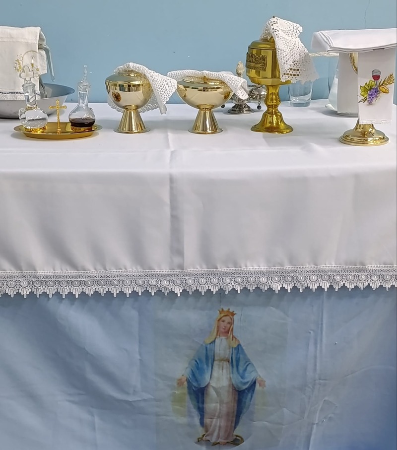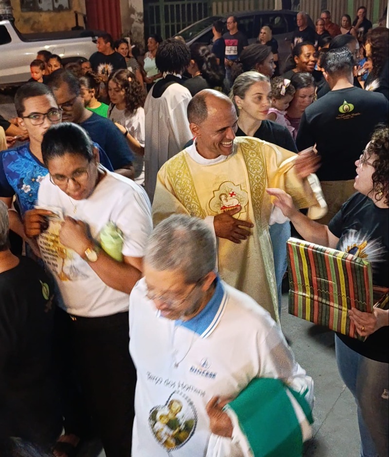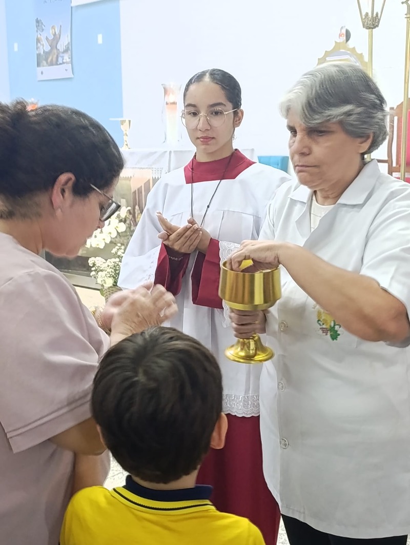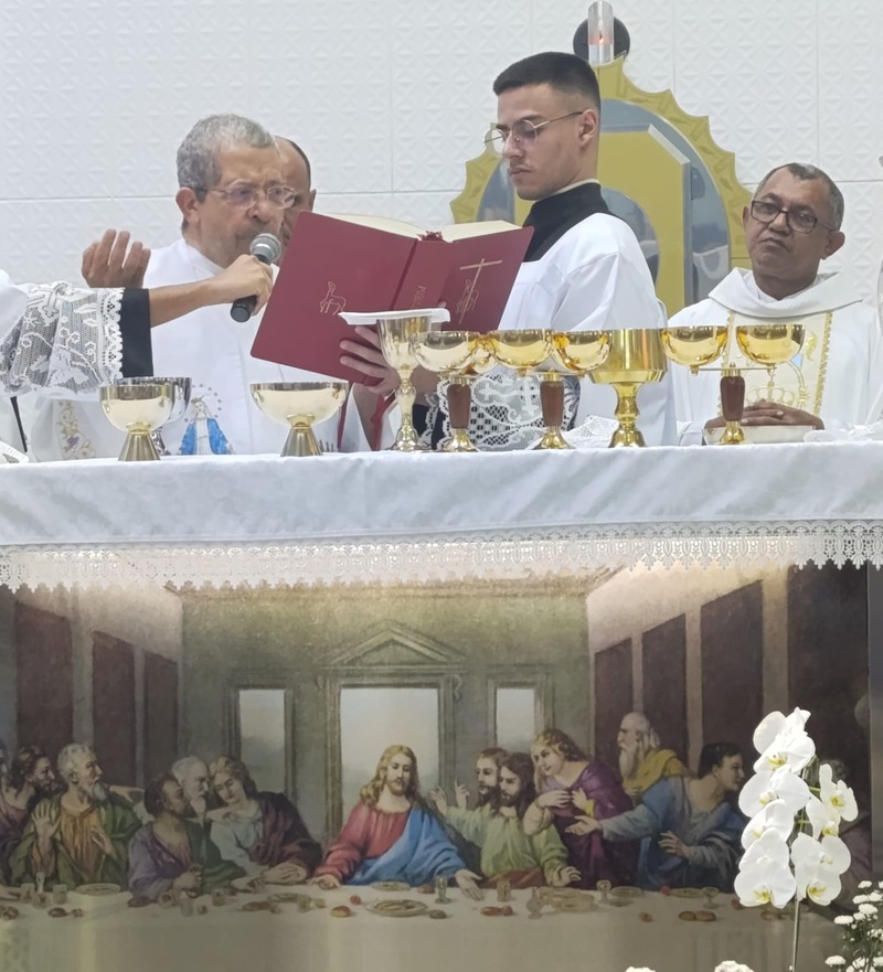 A Santa Missa pela solenidade de Nossa Senhoras das Graças, foi celebrada pelo Pároco da Paróquia Nossa Senhora Aparecida do bairro Iguaçu, Padre Marco José e contou com o auxílio do Diácono Henrique Armstrong Carvalho. Em sua reflexão, Padre Marco José falou sobre a história de Nossa Senhora das Graças e seus milagres, a na oportunidade ele disse: “se estou aqui hoje como Padre, é graças a intercessão de Nossa Senhora das Graças”. A Comunidade agradece a todos que envolveram, para levar aos fiéis este momento de Fé. Nossa Senhora das Graças, rogai por nós.