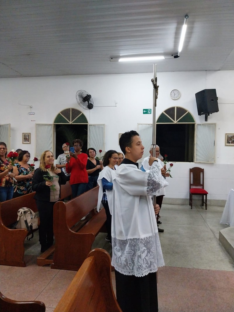 As mulheres presentes, receberam rosas que foram entregues no início das Missas. A Missa na Comunidade Maria de Nazaré foi celebrada pelo Pároco da Paróquia São Geraldo Magela, Padre Aloísio Vieira, e na Comunidade São João Batista, a Missa foi presidida pelo Vigário Paroquial, Padre Geraldo Morini.