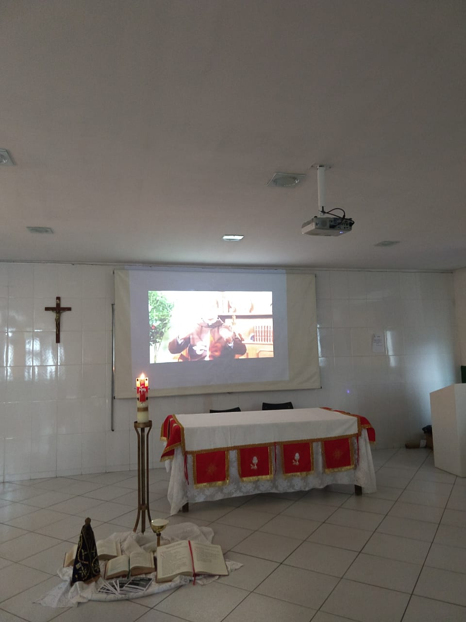 O encontro foi iniciado com um vídeo que contou a história da origem dessa festa litúrgica, em seguida foi repassado todo rito que será realizado durante a benção e procissão com o santíssimo.