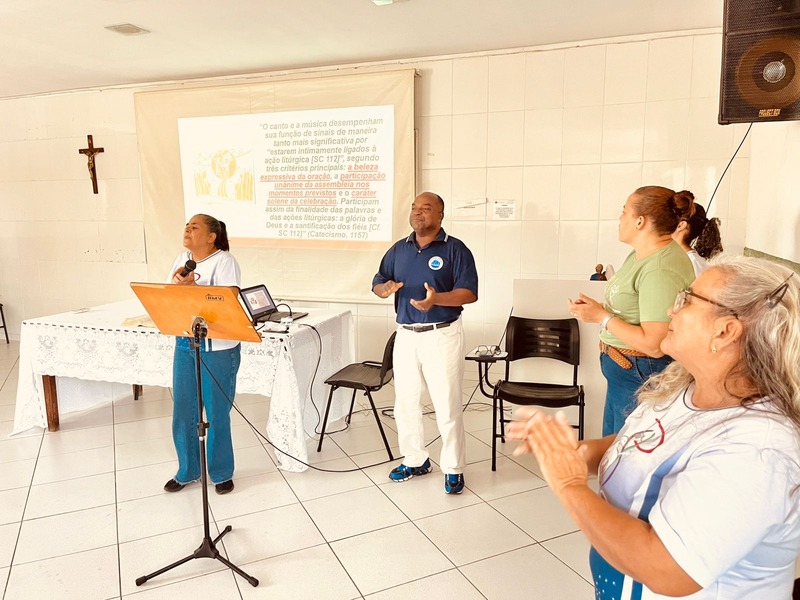 A formação reuniu agentes da liturgia e da música, proporcionando um momento de aprendizado, partilha e crescimento na missão de servir. Na oportunidade foram explicadas as partes importantes da Missa, além de um espaço para esclarecimento de dúvidas, contribuindo para uma vivência mais consciente e participativa da liturgia.