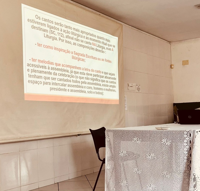 No domingo do dia 26 de abril de 2026 das 14 às 17 horas, foi realizada uma formação paroquial de liturgia e música no Centro Pastoral São João Paulo II, no bairro Bom Jardim, com o objetivo de aprofundar os conhecimentos sobre os ritos da liturgia, as partes da Santa Missa e orientar sobre o papel do ministério da música dentro da celebração.