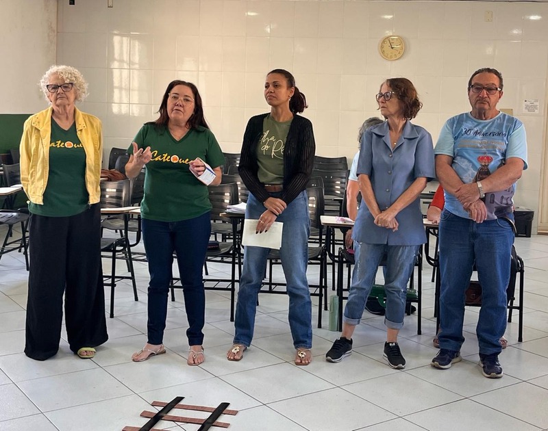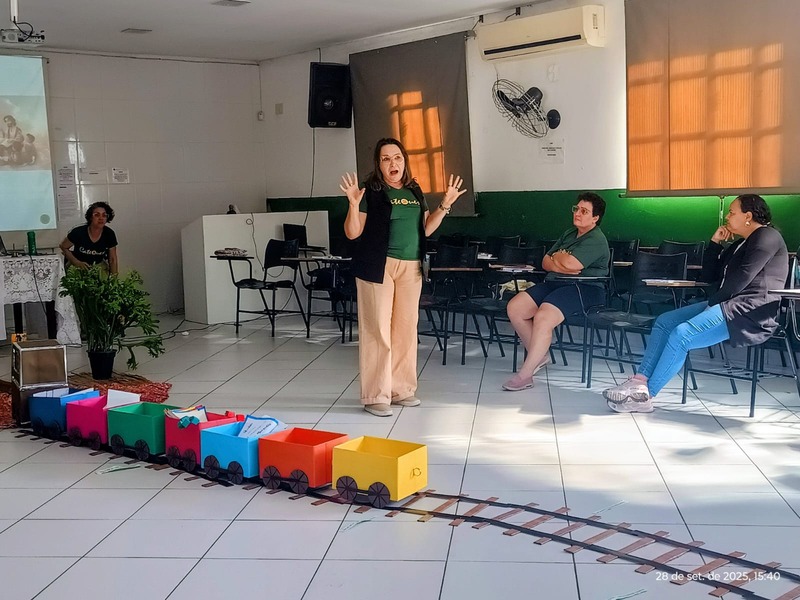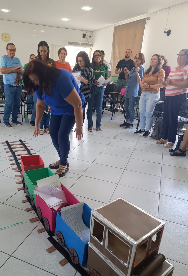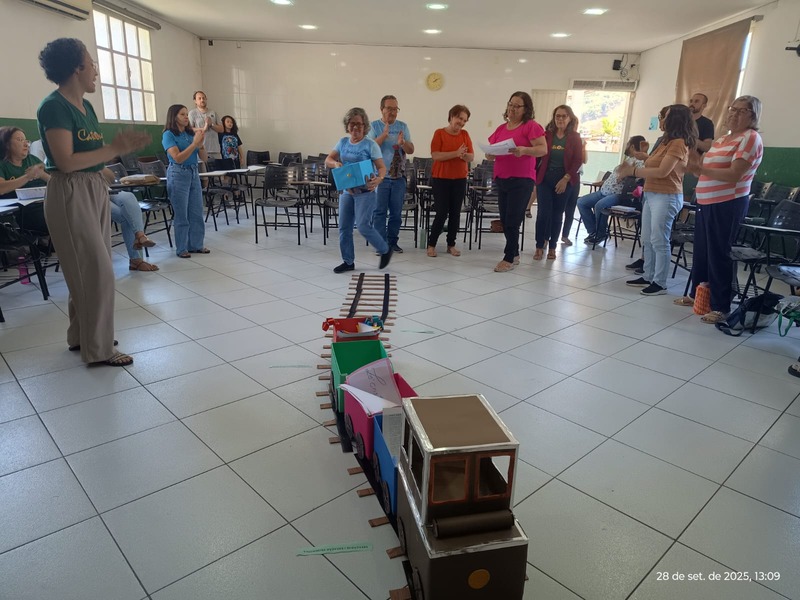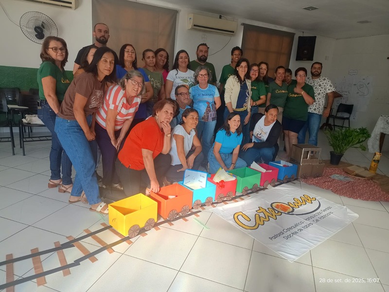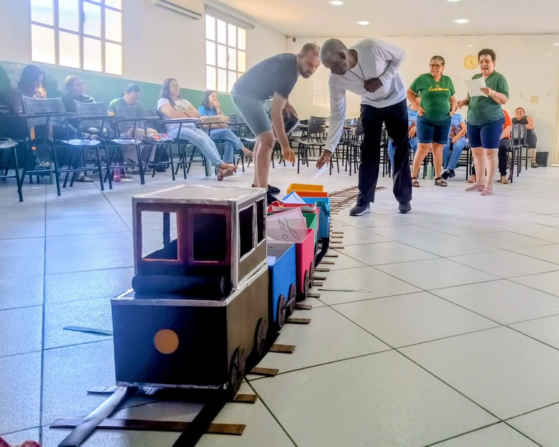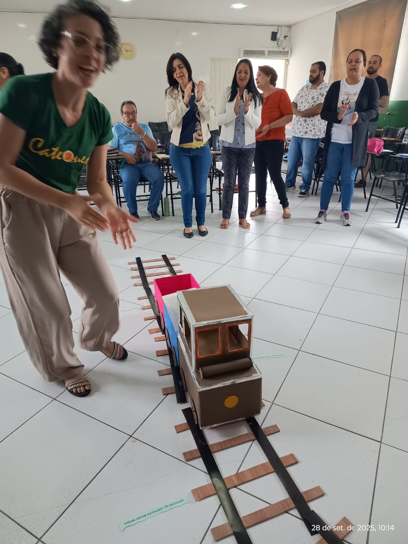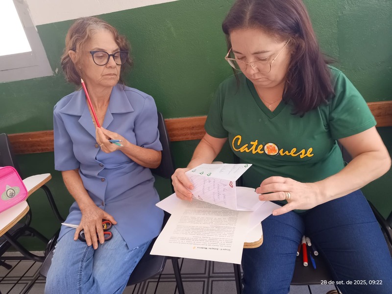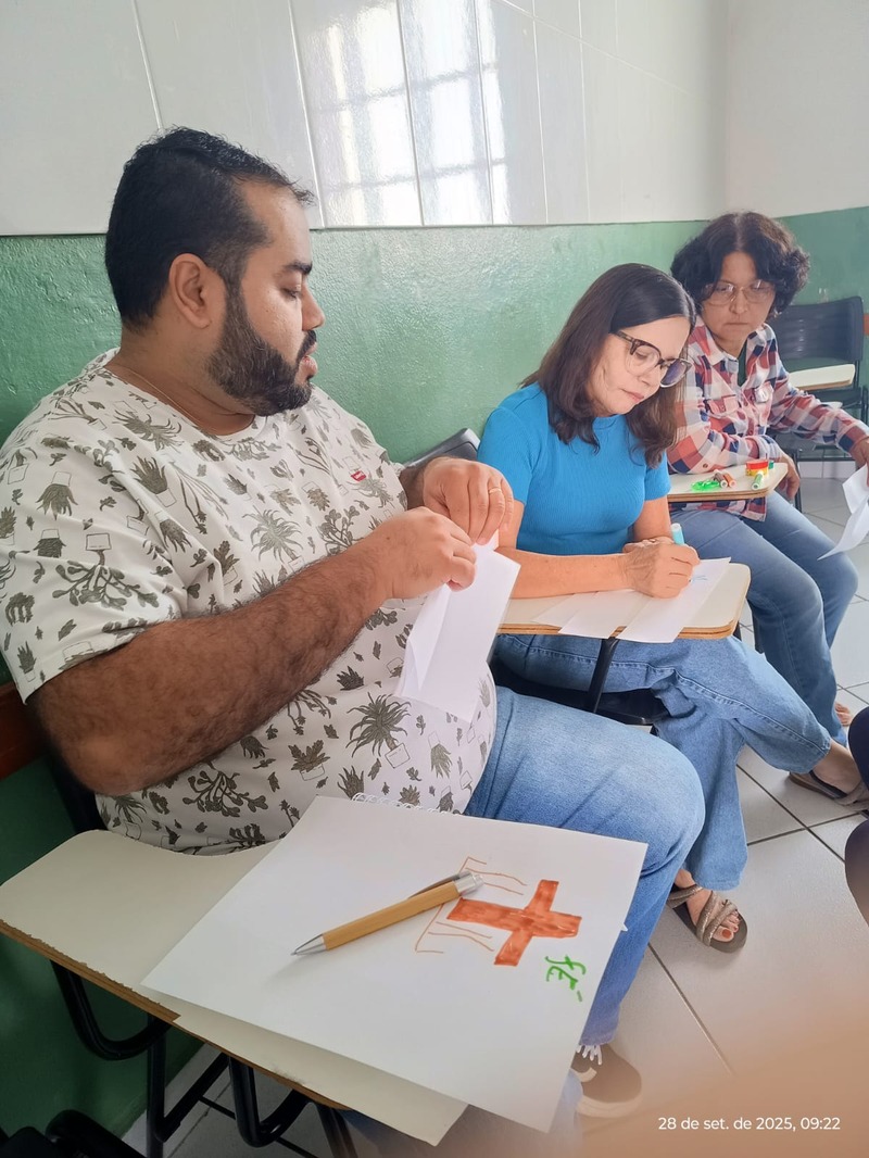 Aconteceu na manhã de domingo, dia 28 de setembro de 2025 a formação para a Catequese. Os Catequistas foram convidados para uma viagem pela história da catequese onde cada tempo é uma parada, cada estação um aprendizado, e o destino é Jesus Cristo. A história da Catequese é como um trilho de trem, onde cada época foi uma estação diferente, mas o destino é o mesmo, que é levar cada pessoa ao encontro com Cristo.