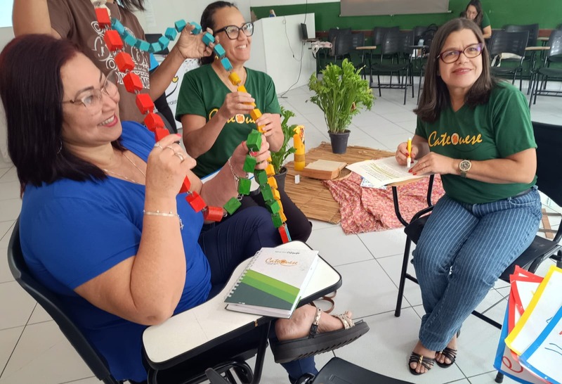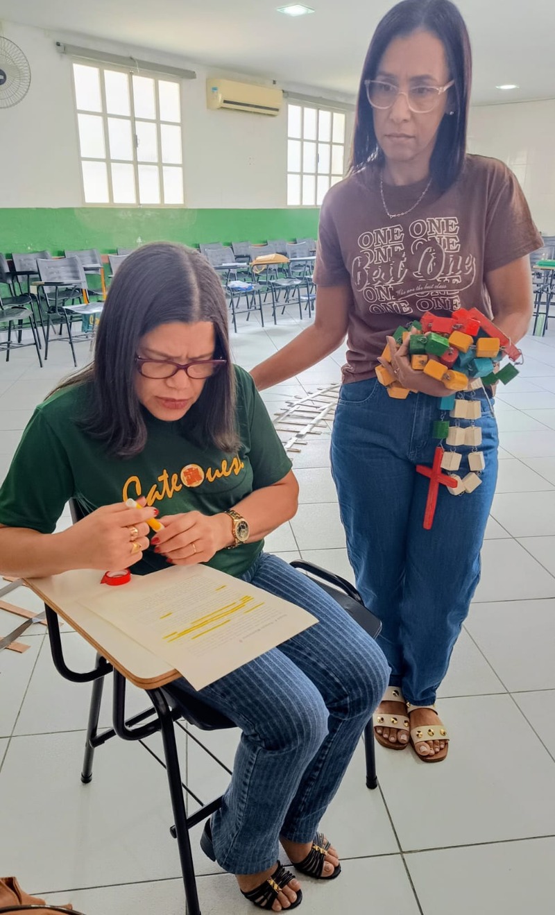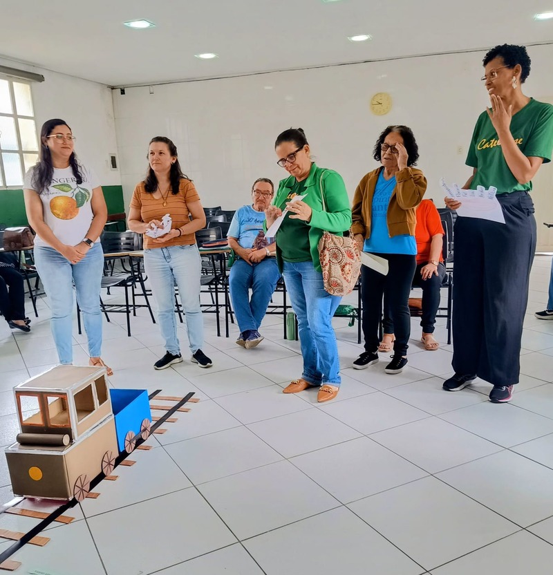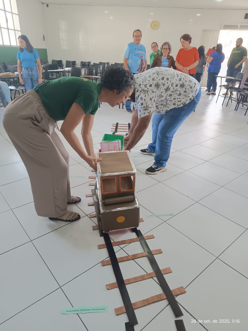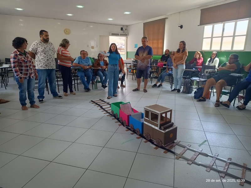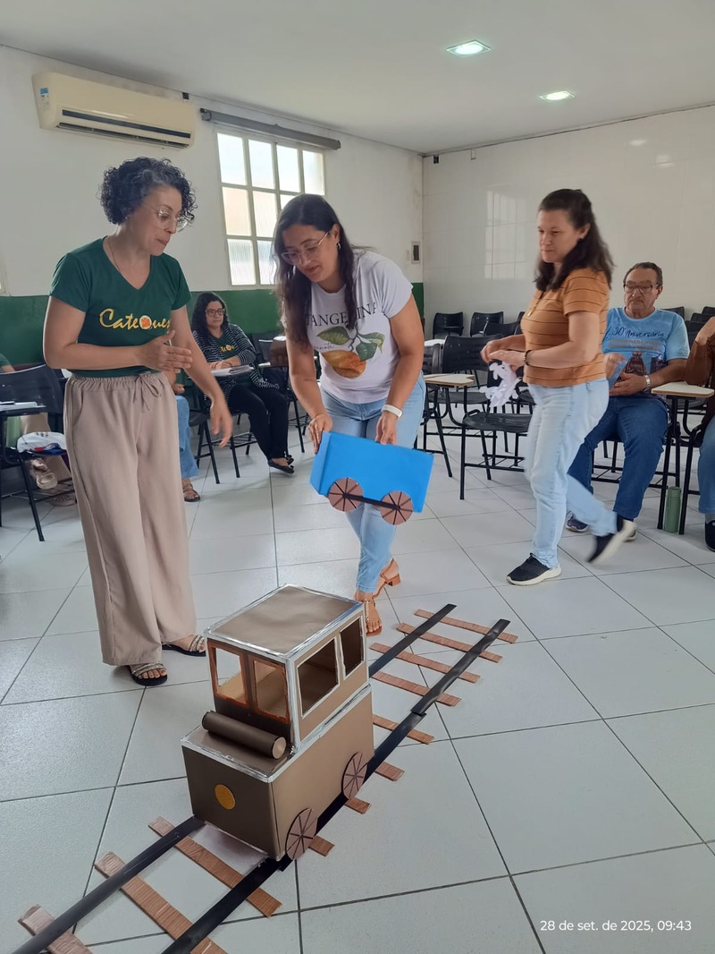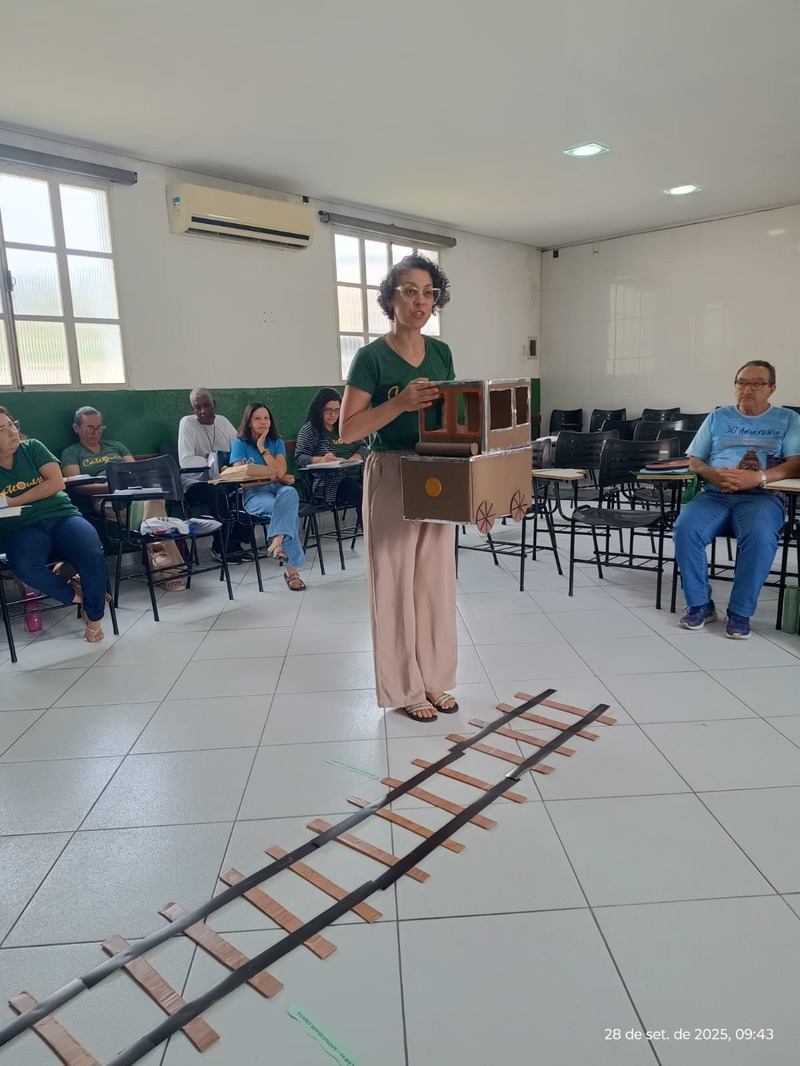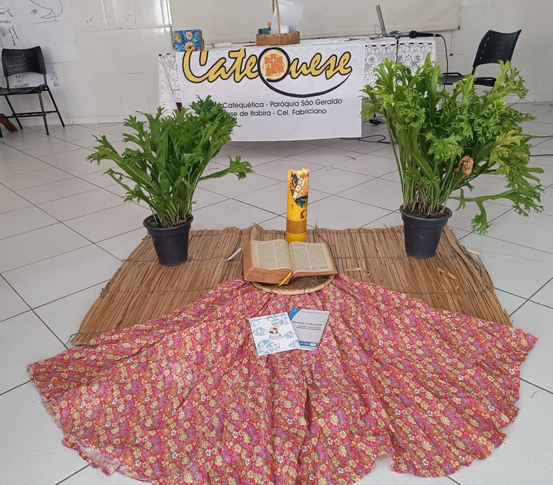 Aconteceu na manhã de domingo, dia 28 de setembro de 2025 a formação para a Catequese. Os Catequistas foram convidados para uma viagem pela história da catequese onde cada tempo é uma parada, cada estação um aprendizado, e o destino é Jesus Cristo. A história da Catequese é como um trilho de trem, onde cada época foi uma estação diferente, mas o destino é o mesmo, que é levar cada pessoa ao encontro com Cristo.