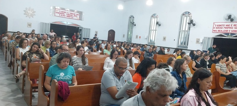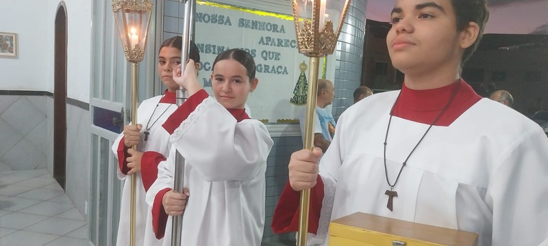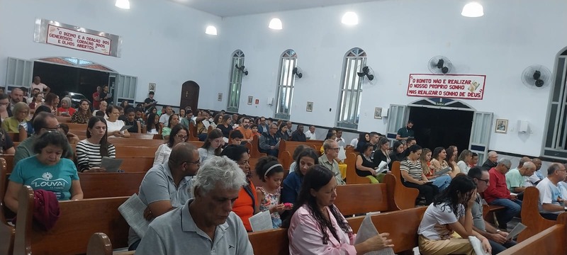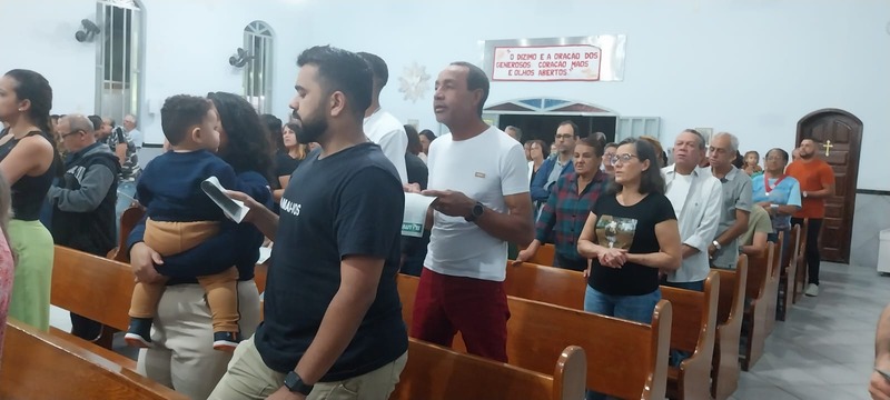 Aconteceu no dia 07/07/2024 na Comunidade Nossa Senhora Aparecida às 18:00 a missa em comemoração ao nono aniversário do terço dos homens, presidida por Dom Odilon Guimarães Moreira – Bispo Emérito.