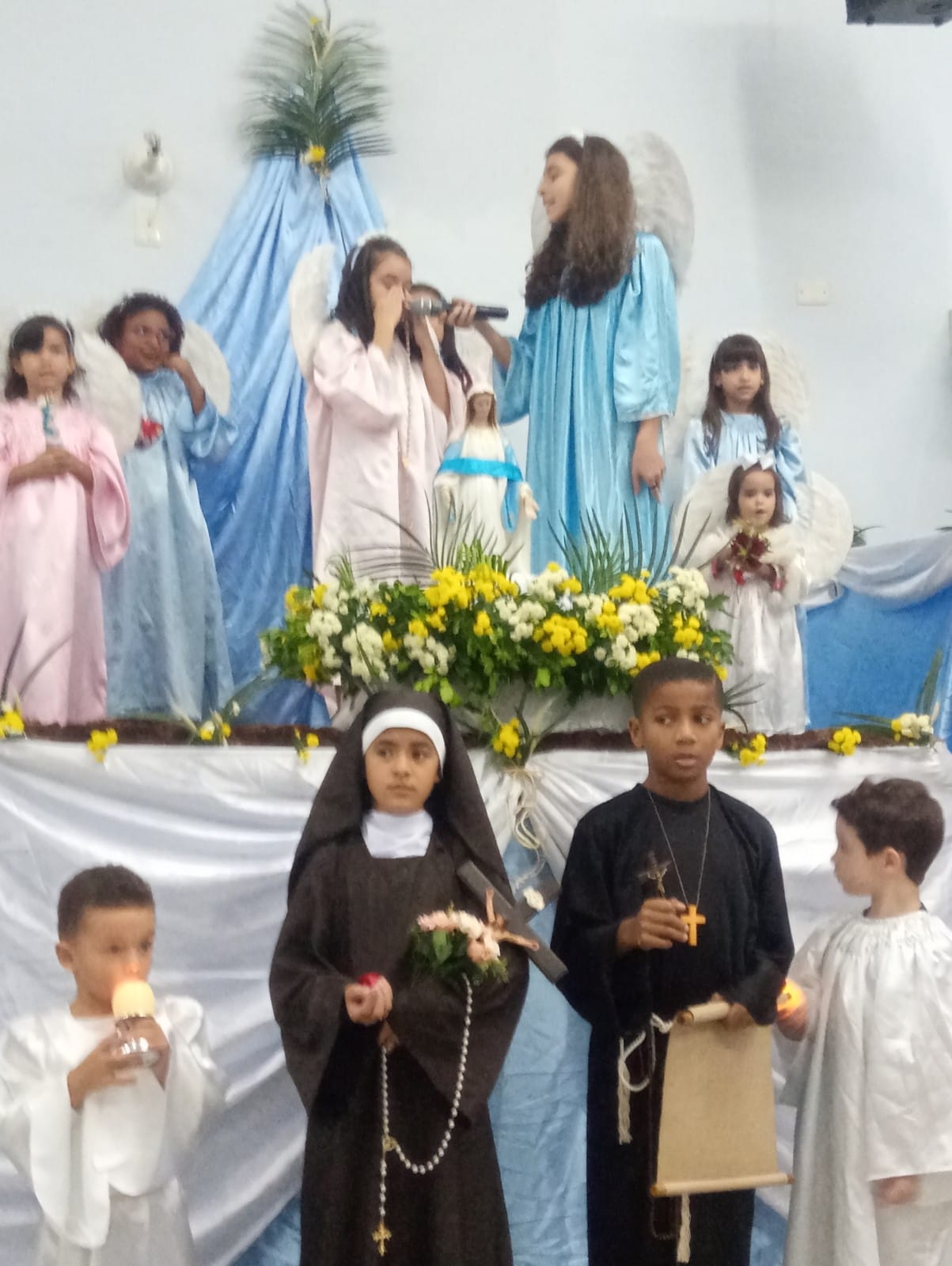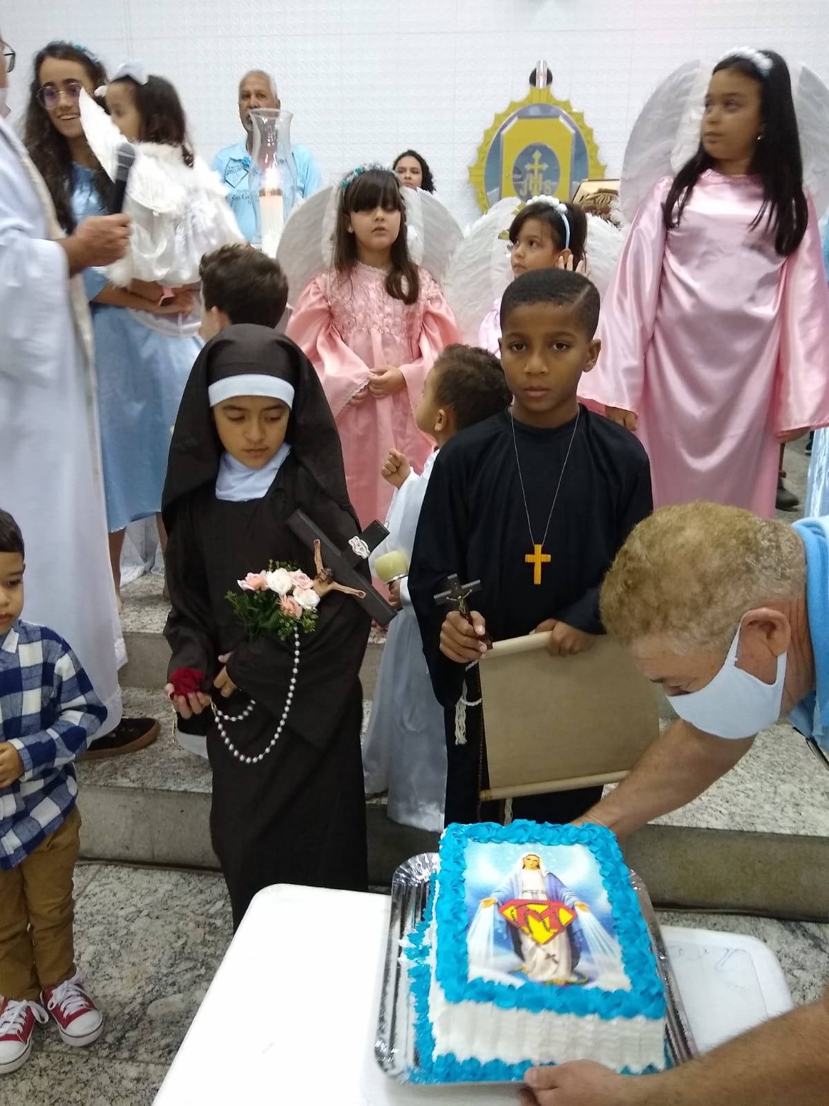 No último domingo, 29 de maio, às 18h30, foi realizada a comemoração dos 10 anos de caminhada do Grupo Terço dos Homens Super Homens na Fé. Em seguida, às 19h30, o Pe. Geraldo Morini presidiu a Santa Missa que contou com a Coroação à Nossa Senhora feita pelas crianças da IAM – Infância e Adolescência Missionária.