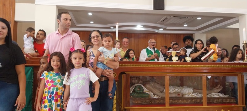 Na missa do domingo, dia 22 de setembro de 2024 no horário das 10:00h, o padre Geraldo Morini de Almeida fez uma homilia sobre a família, falando da importância da família, e pediu que todos os pais que tivessem com os filhos na igreja que se aproximassem do altar.