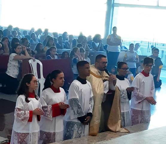 No sábado, dia 3 de agosto, a Paróquia Sagrada Família em Ipatinga recebeu o Encontro Diocesano de Coroinhas e Acólitos. Na ocasião, a Igreja Matriz acolheu cerca de 1.400 participantes, dentre coroinhas, acólitos, acompanhantes e coordenadores, vindos de diversas cidades da diocese. Realizado pelo ministério de acólitos e coroinhas, o encontro é um verdadeiro instrumento do cultivo vocacional. A paróquia São Geraldo participou desse momento de fé na caminhada desses jovens.