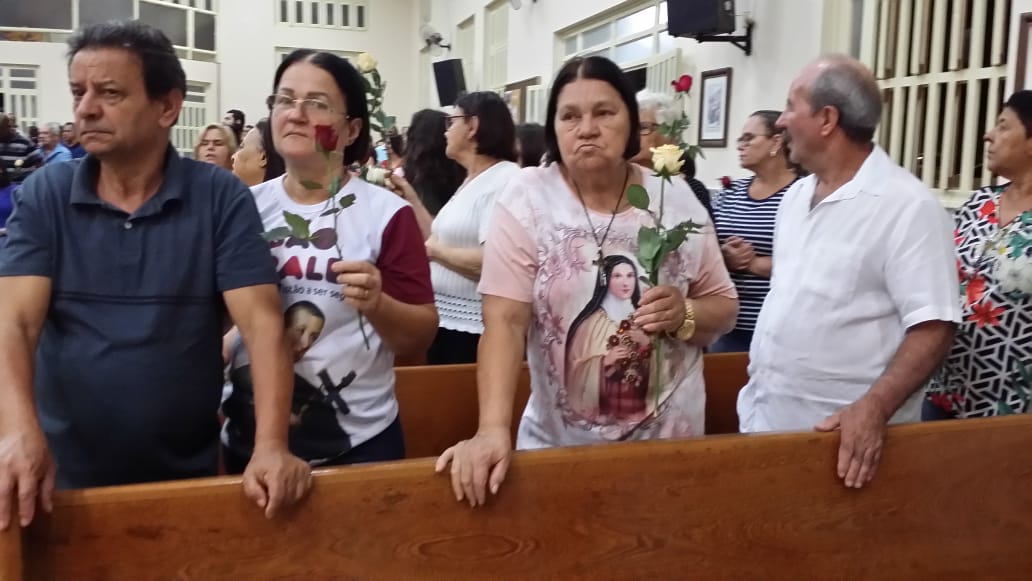 Ao chegar a igreja para a missa as pessoas estavam sendo acolhidas com muito carinho por membros da comunidade São João Batista. Teresinha, coordenadora de liturgia da comunidade São João, tem a tradição de todo ano, na missa em hora a Santa Teresinha ofertar flores, nesse ano, ela mais uma vez repetiu esse lindo gesto. Durante todo o mês de outubro nossa paróquia estará imersa em várias atividades missionárias.