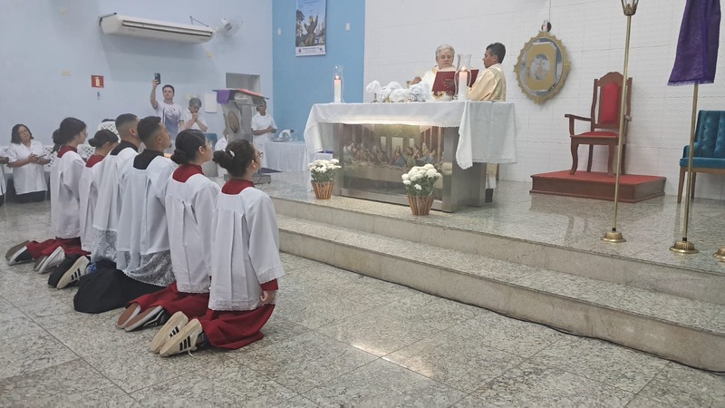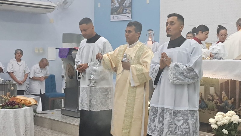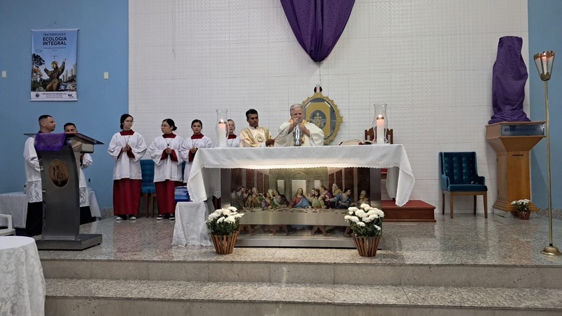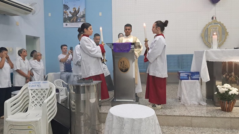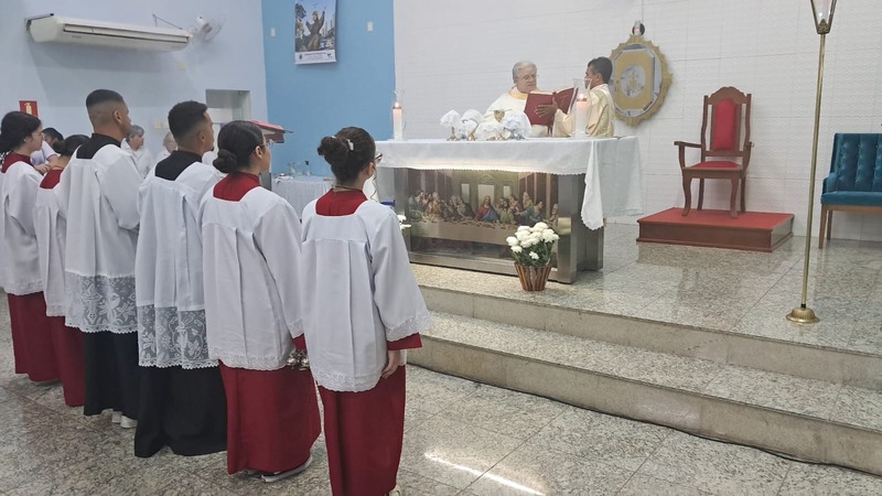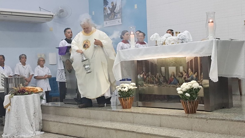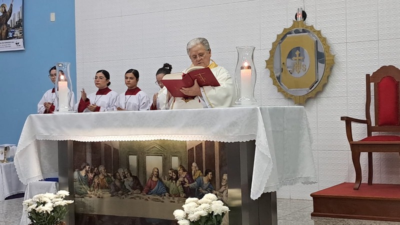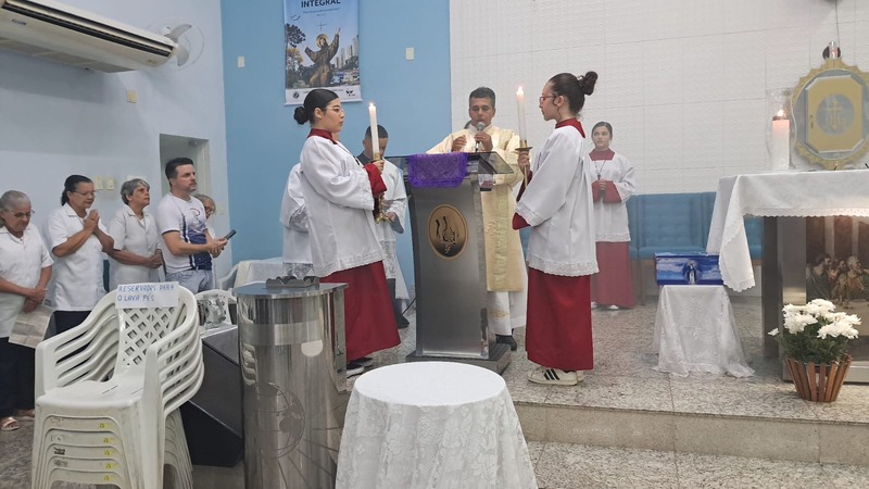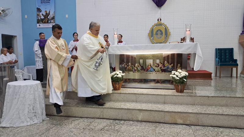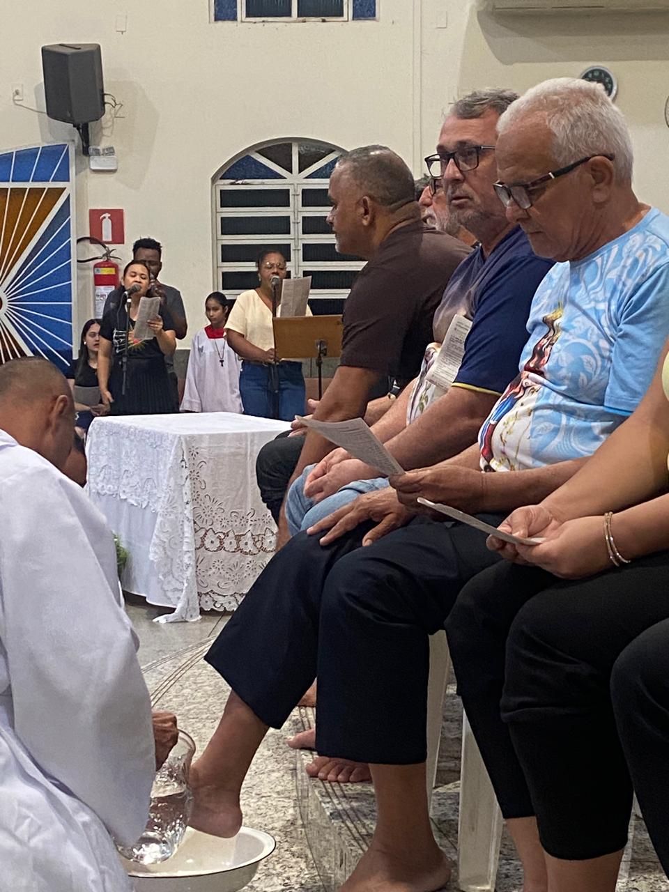 Com assistência do diácono permanente Henrique Armstrong Carvalho, no Inicio da Missa o vigário paroquial, padre Geraldo Morini explicou o que seria refletido e vivenciado ao longo da Missa. Que foi a ultima Ceia do Senhor com seus apóstolos: Ele diz: “Nesta celebração relembra-se três acontecimentos importantes: a instituição da Eucaristia, a instituição do Sacerdócio Ministerial e o Mandamento do Amor, chama-se de Tríduo Pascal”.