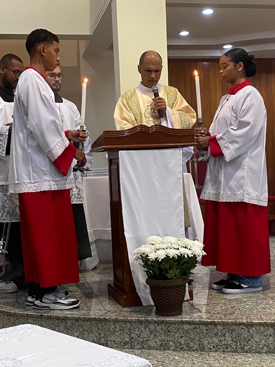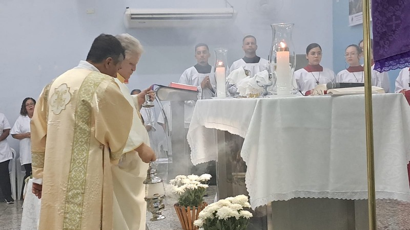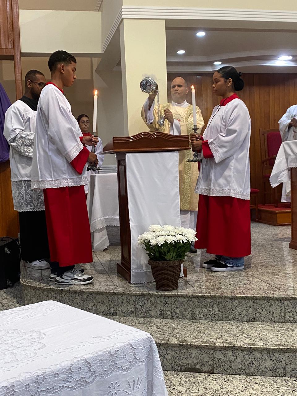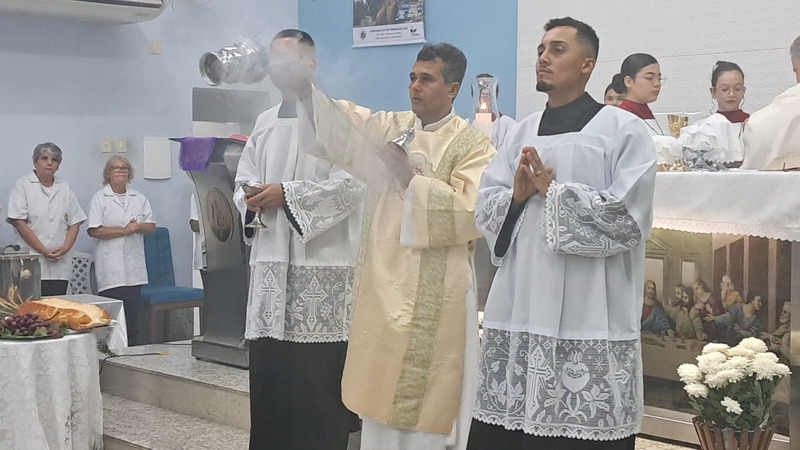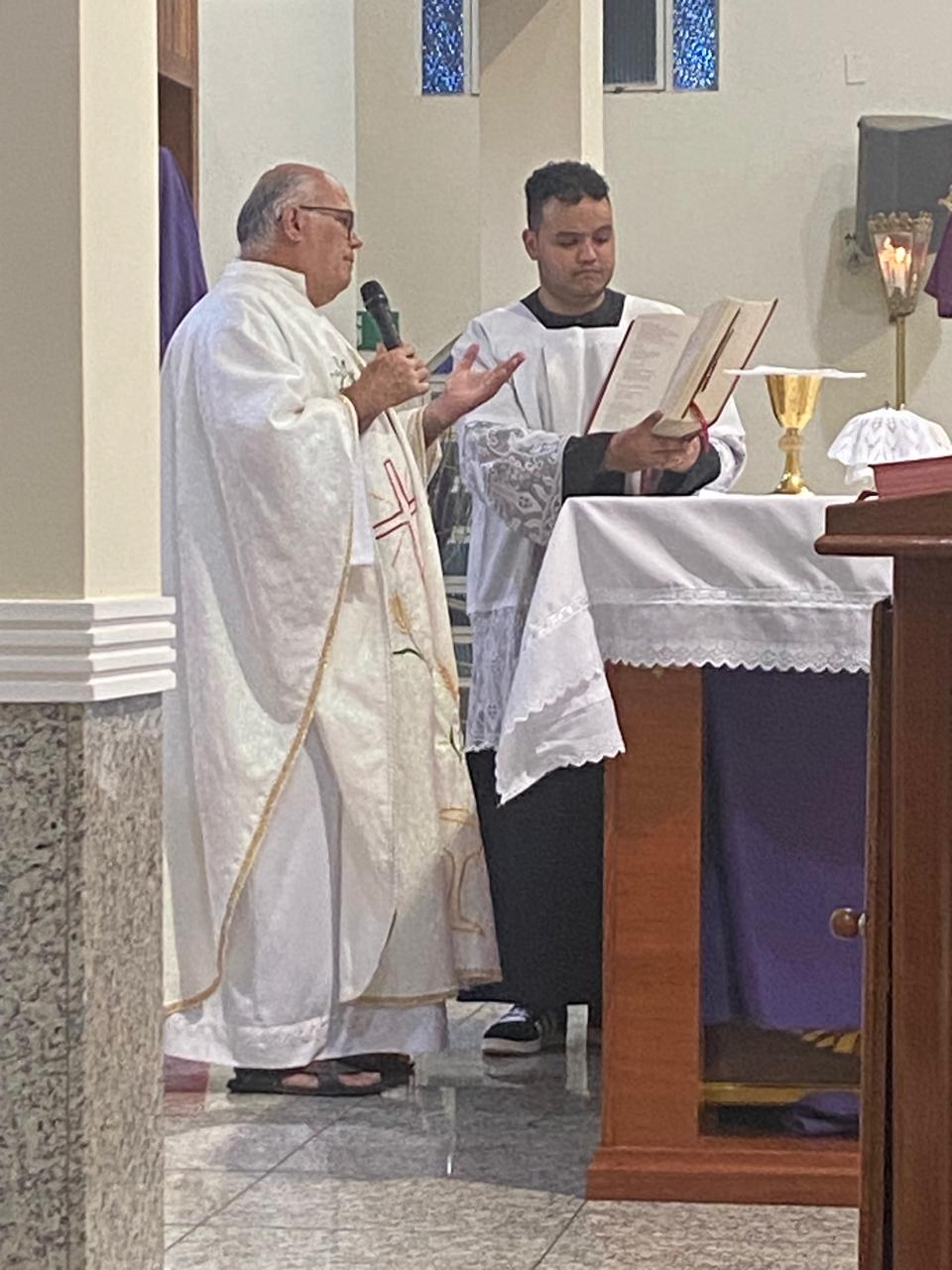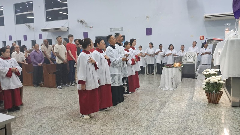 Com assistência do diácono permanente Henrique Armstrong Carvalho, no Inicio da Missa o vigário paroquial, padre Geraldo Morini explicou o que seria refletido e vivenciado ao longo da Missa. Que foi a ultima Ceia do Senhor com seus apóstolos: Ele diz: “Nesta celebração relembra-se três acontecimentos importantes: a instituição da Eucaristia, a instituição do Sacerdócio Ministerial e o Mandamento do Amor, chama-se de Tríduo Pascal”.
