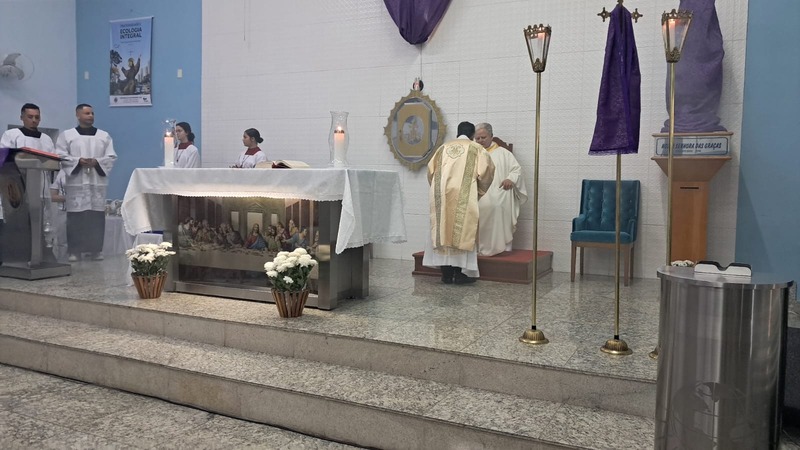 Vale recordar que na manha dessa mesma quinta-feira Santa, as 09h na Catedral Nossa Senhora do Rosário (Catedral Diocesana) em Itabira, aconteceu a celebração muito importante neste tempo tão significativo. A solene Missa dos Santos Óleos. A Missa dos Santos Óleos é uma cerimônia litúrgica de significado profundo na vida da Igreja Católica. Durante esta celebração, os óleos sacramentais – óleo dos enfermos, óleo dos catecúmenos e óleo do crisma – foram abençoados pelo bispo Dom Marco Aurélio Gubiotti, em comunhão com o clero presente. Os óleos abençoados durante esta missa são utilizados ao longo do ano em diversos sacramentos da Igreja Católica. Representantes designados pelas paroquias participam desse momento e levam os Santos óleos que serão apresentados durante a Missa do Lava-Pés e será utilizados ao longo do ano litúrgico. A presença de todo o clero diocesano na Missa dos Santos Óleos representa a unidade e fraternidade do presbitério local. É um momento no qual os sacerdotes renovam seus compromissos ministeriais e se comprometem novamente com o serviço à comunidade cristã.