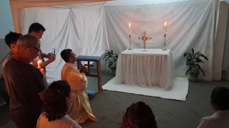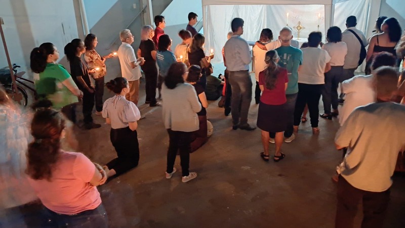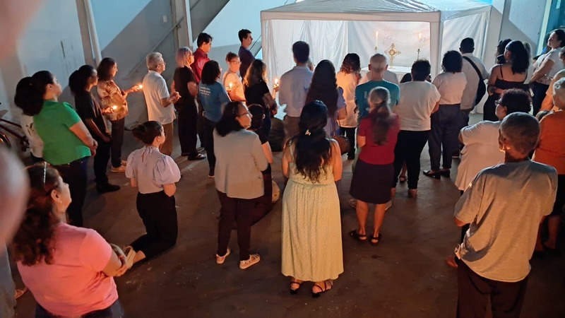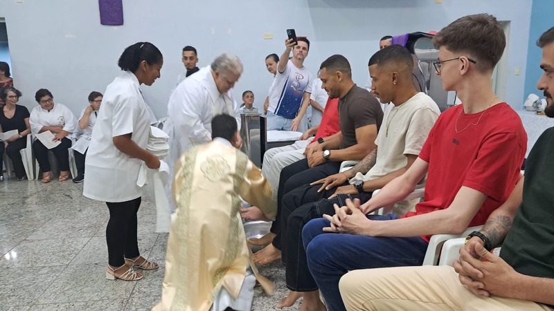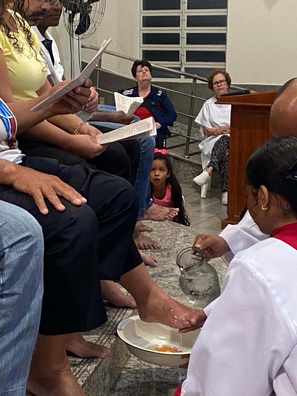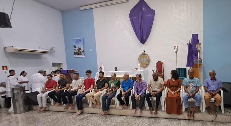 Dando prosseguimento as cerimônias da Semana Santa, na quinta-feira as 19h30 aconteceu a Missa do lava-pés nos dois bairros (Bom Jardim e Esperança) que compõe a Paroquia São Geraldo Magela. Como acontece em toda Igreja, marca o início do Tríduo Pascal — que contempla a Paixão, Morte e Ressurreição de Jesus, vivenciados em três celebrações unidas. É por isso que a Missa da Ceia do Senhor “não termina” do modo clássico, com a bênção final, mas se estende numa Vigília Eucarística. Ao final da Missa, o Santíssimo Sacramento é levado em procissão à um local preestabelecido fora da Igreja (Capela da Reposição), onde permanece em adoração até a meia-noite.