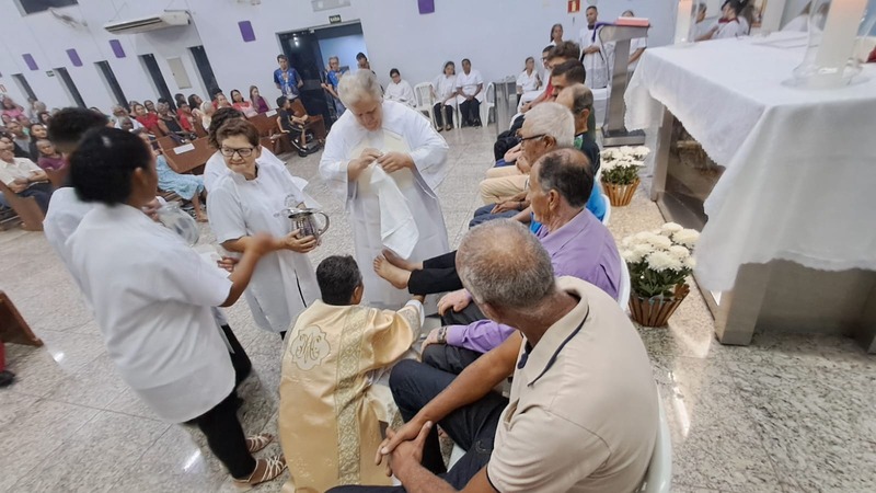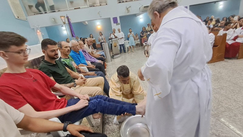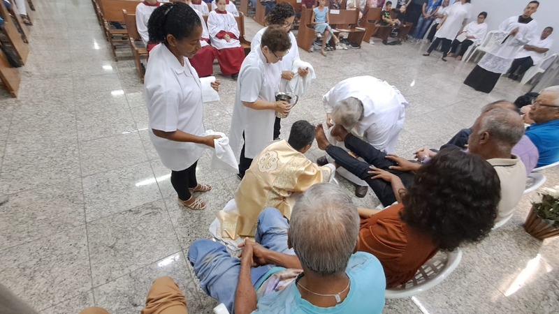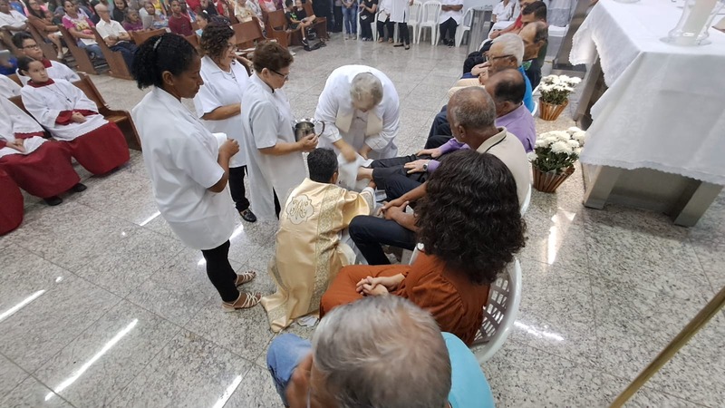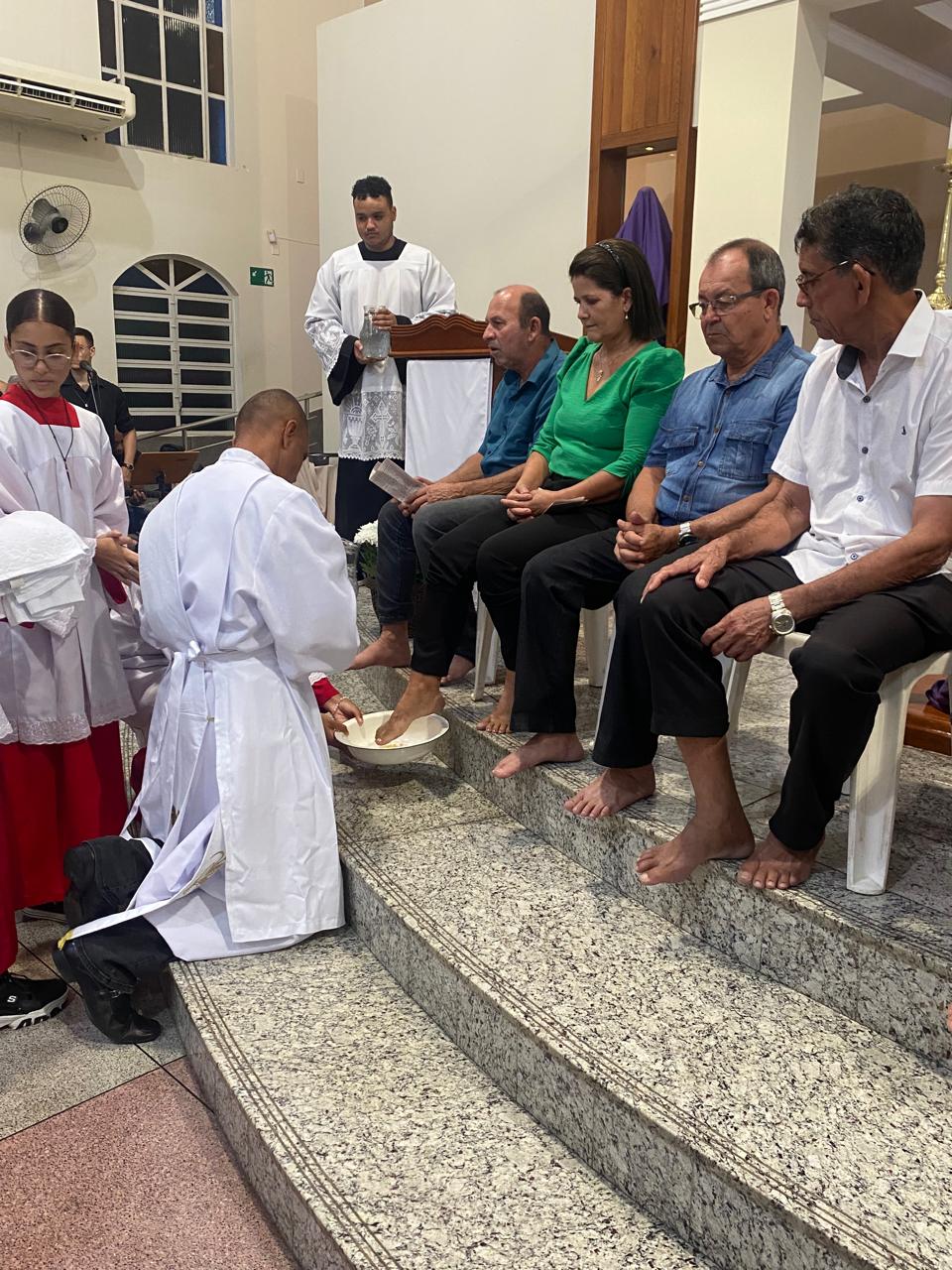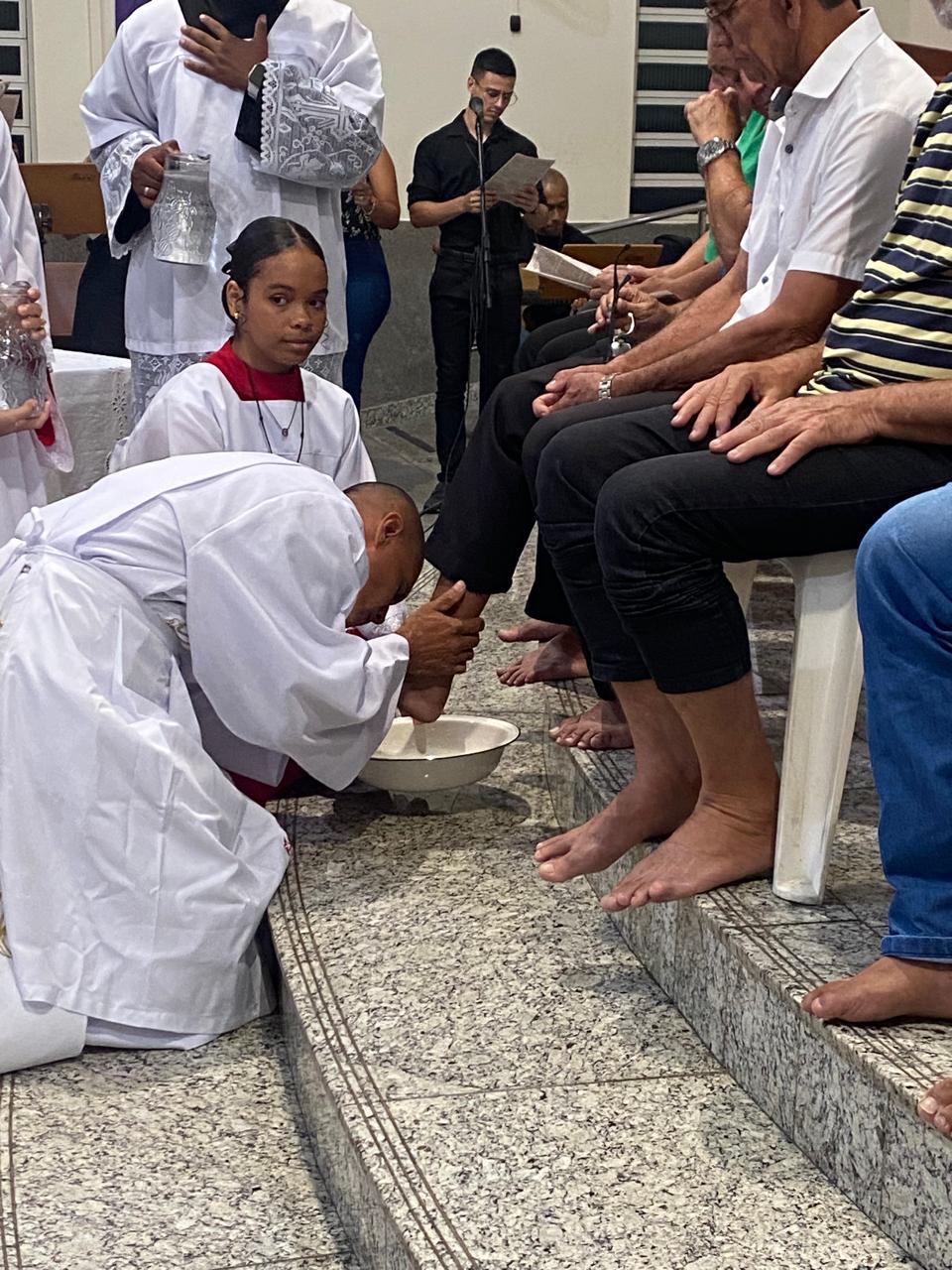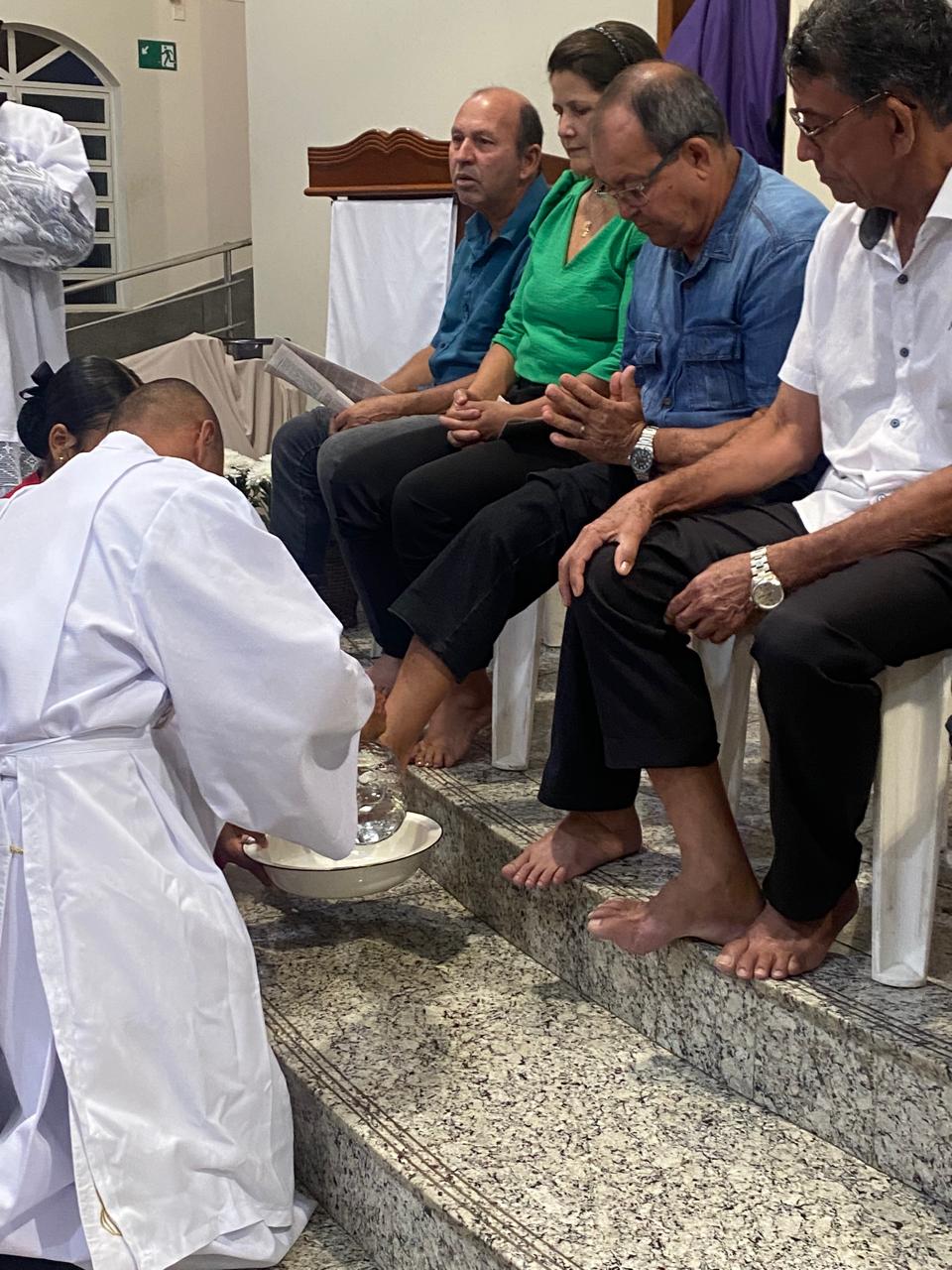 Na cerimônia de lava-pés, na Igreja Matriz São Geraldo Magela coube ao diácono permanente Henrique Armstrong Carvalho Rodrigues lavar os pés de pessoas que atuam nas diversas pastorais, movimentos e serviços de nossa Igreja como também aconteceu na outra missa simultânea na Comunidade Nossa Senhora das Graças no bairro Esperança, com o pároco, padre Aloísio Vieira e assistência do Diácono Márcio Rogério Vieira Honorato.