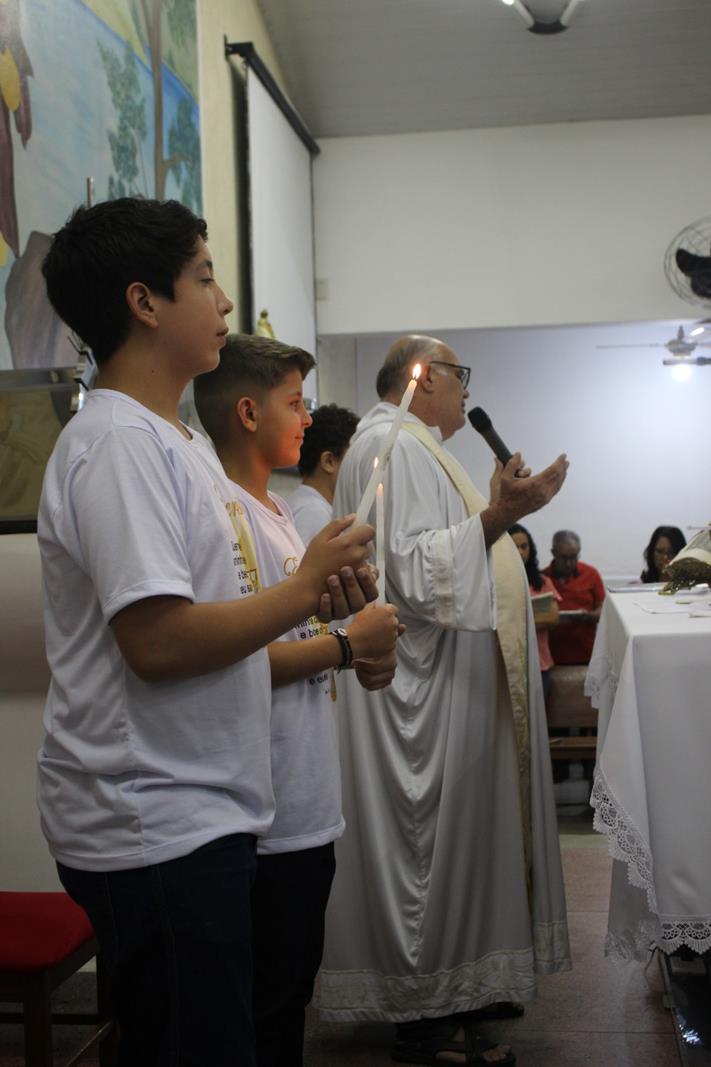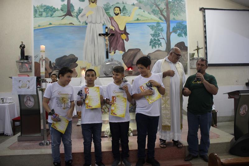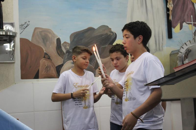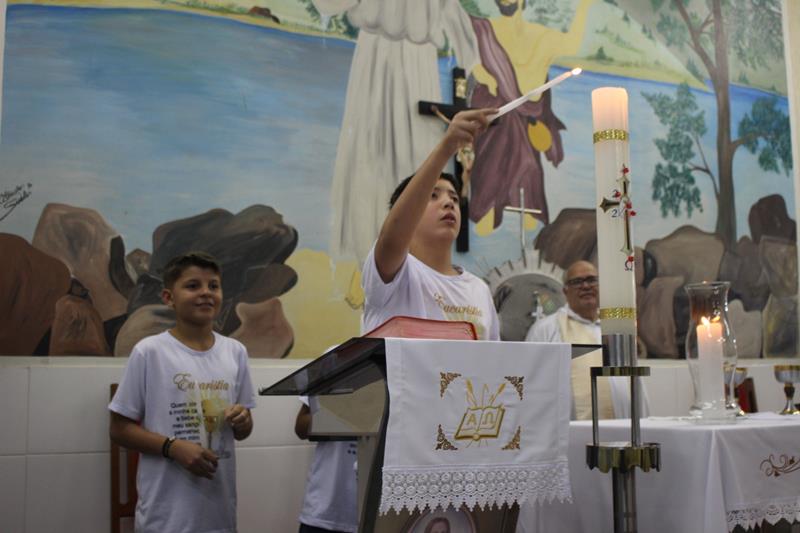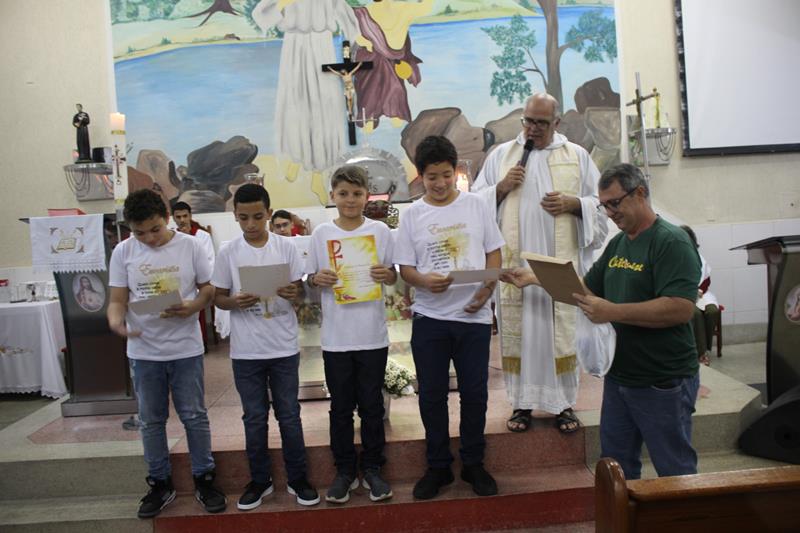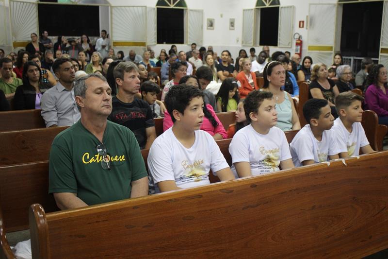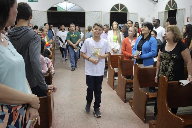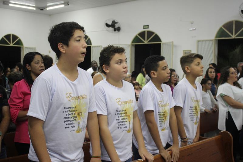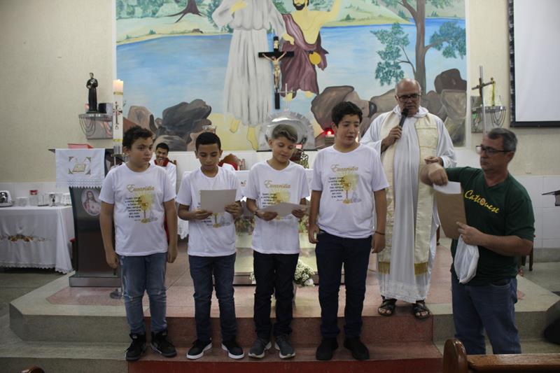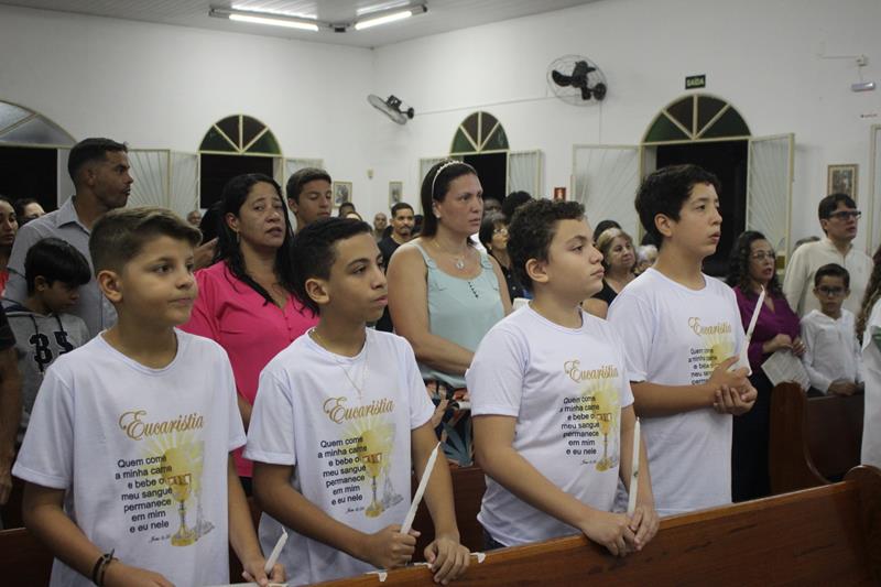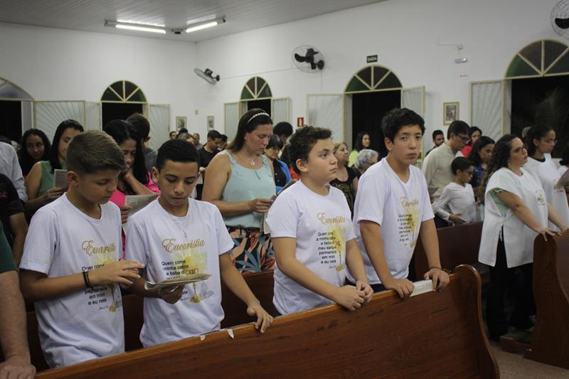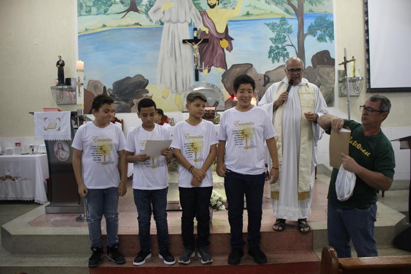 O catequista José Carlos agradeceu a comunidade por acolher os catequizandos e aos catequistas do ano anterior pelo trabalho desenvolvido. A comunidade muito se alegrou, desejou aos catequizandos que esta não seja apenas a primeira experiência com Cristo na Eucaristia, mas que seja a primeira de muitas, e expressou que está de portas abertas para acolhê-los em nossas pastorais, movimentos e serviços.
