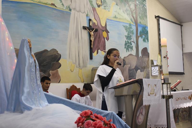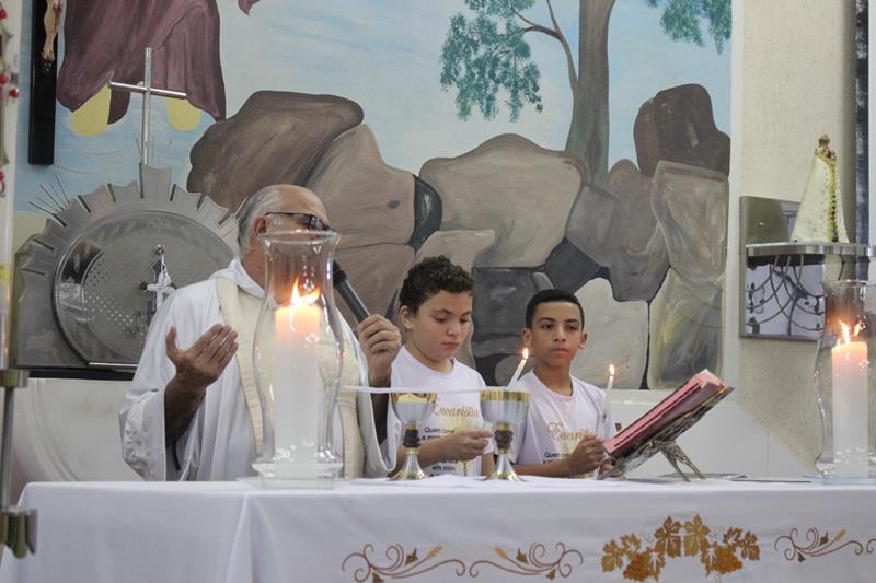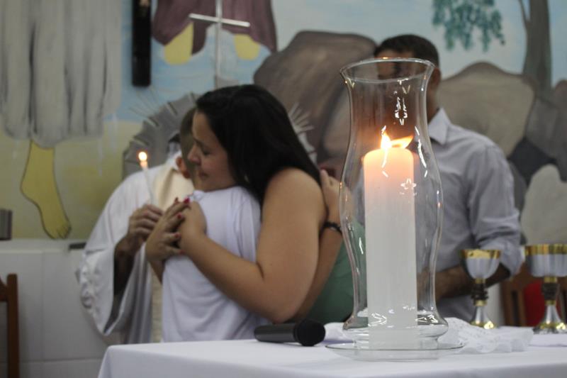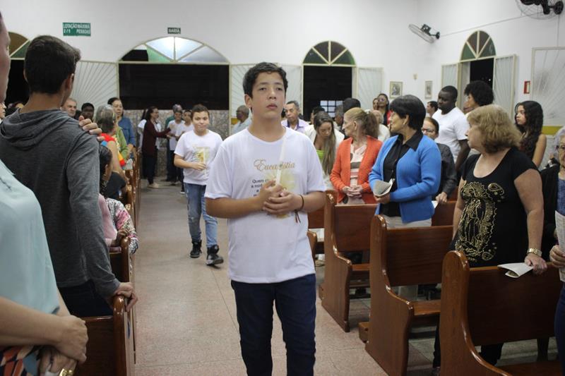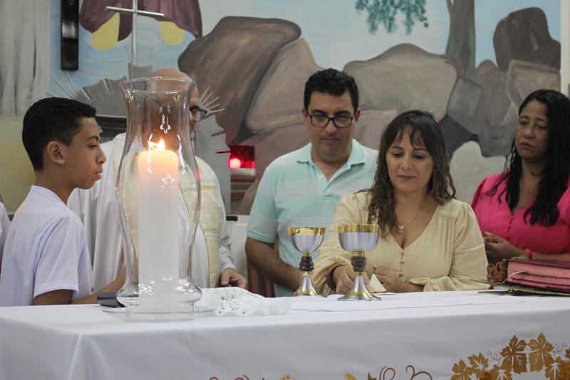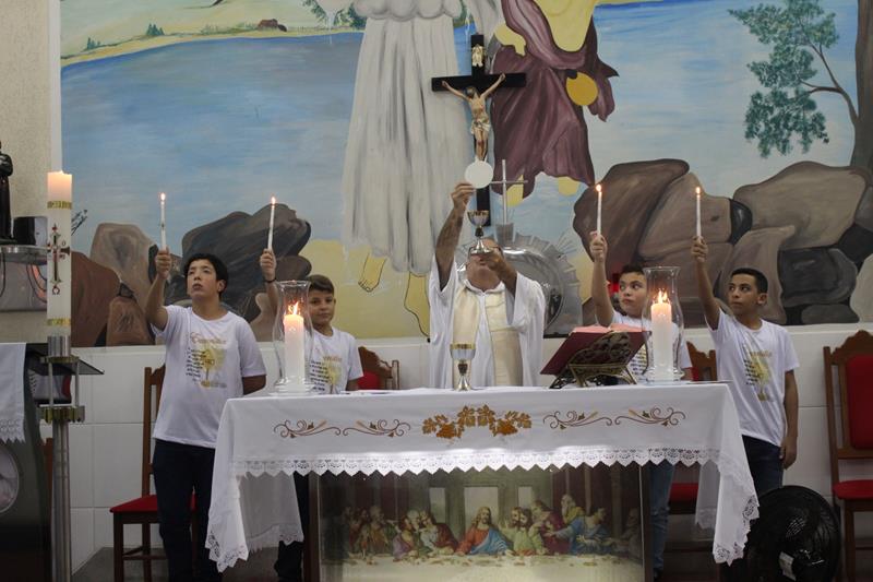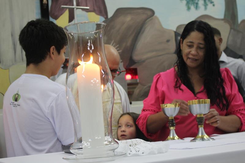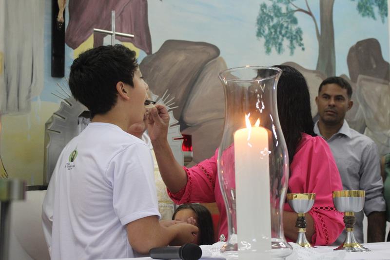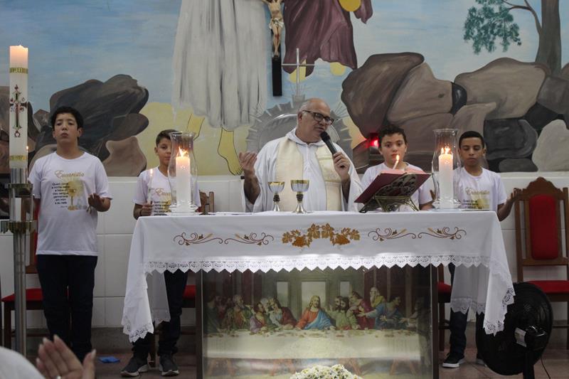 No último sábado, 20 de Maio, às 18h, na Comunidade Maria de Nazaré, no Bairro Bom Jardim, aconteceu a Missa da Primeira Eucaristia, que foi presidida pelo Vigário Paroquial Padre Geraldo Morini. Foram 4 adolescentes que vivenciaram o encontro com Jesus na Sagrada Comunhão pela primeira vez.