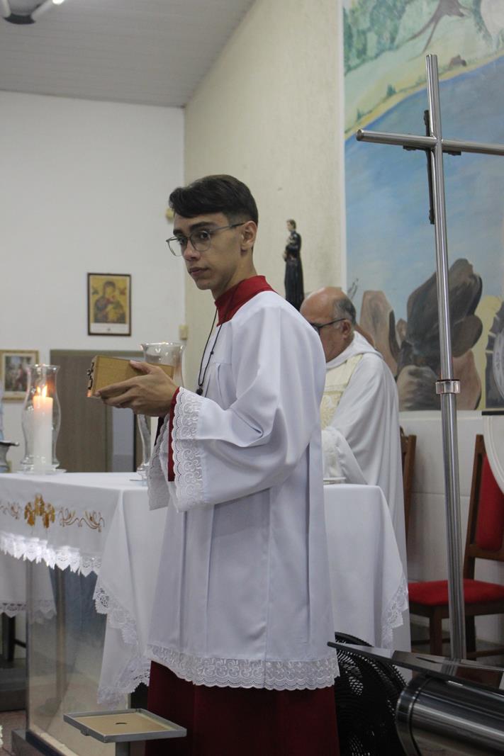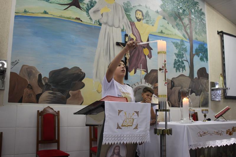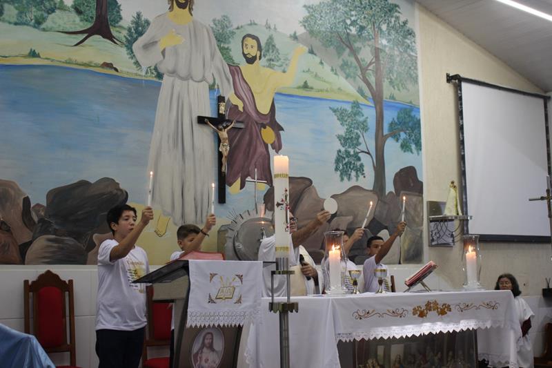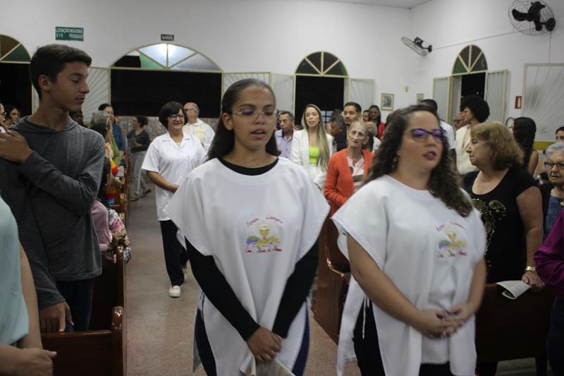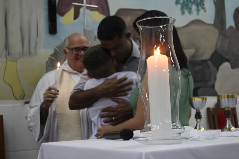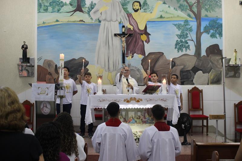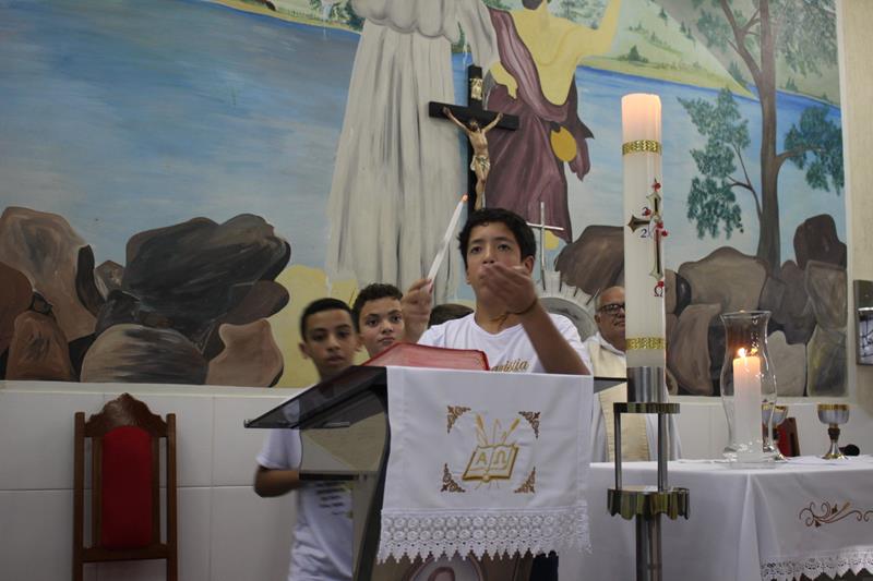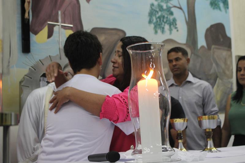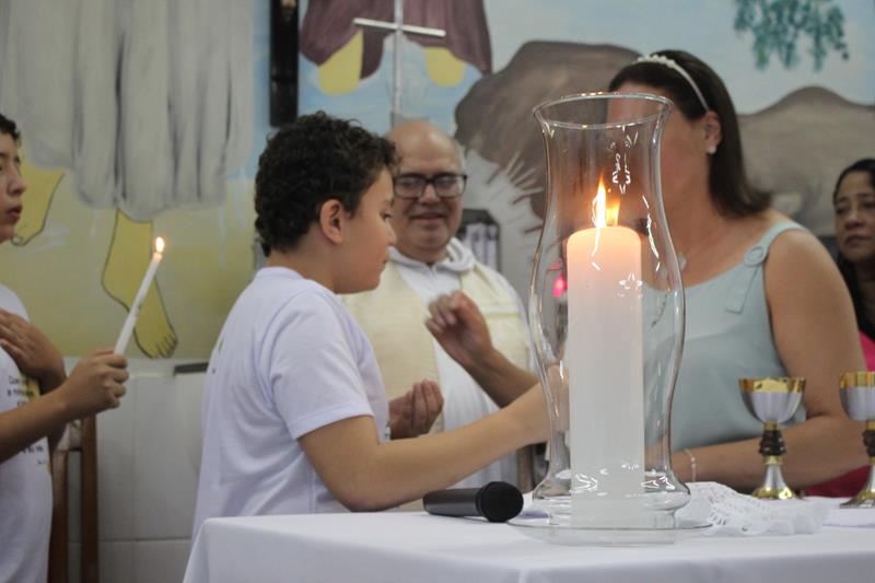 No último sábado, 20 de Maio, às 18h, na Comunidade Maria de Nazaré, no Bairro Bom Jardim, aconteceu a Missa da Primeira Eucaristia, que foi presidida pelo Vigário Paroquial Padre Geraldo Morini. Foram 4 adolescentes que vivenciaram o encontro com Jesus na Sagrada Comunhão pela primeira vez.