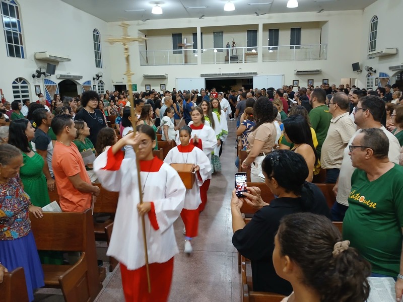 Aconteceu no domingo dia 23 de fevereiro de 2025, às 19h30, na Matriz São Geraldo Magela, a Missa Paroquial de Abertura e envio da Catequese. A Missa foi presidida pelo Pároco Pe. Aloísio Vieira. Na reflexão, Padre Aloísio falou da importância do desapego às coisas do mundo e buscar o arrependimento.