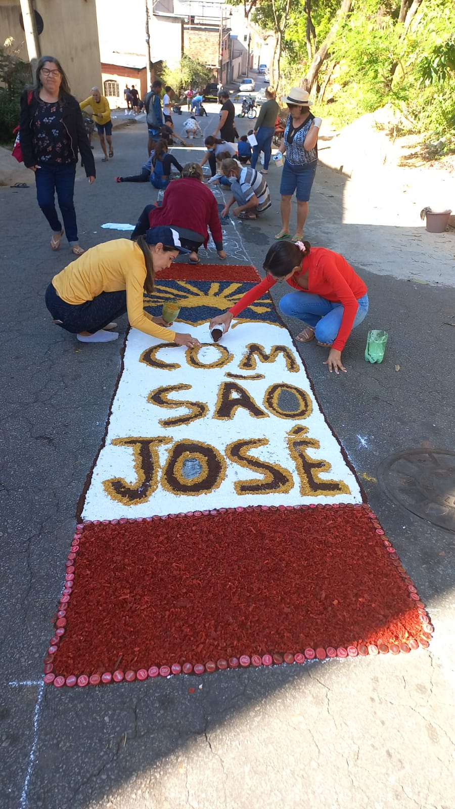 Após a benção final, Jesus em forma de “Hóstia consagrada”, foi exporto no ostensório e então todos seguiram em procissão, caminhando sob os belíssimos tapetes, que foram confeccionados ao longo do dia pela comunidades da Matriz São Geraldo, rumo a Igreja da Comunidade Maria de Nazaré, que também tem seu endereço no Bairro bom Jardim, n rua Francisca Constância n° 65, onde se encerrou esta importante comemoração Católica. Ao final os fies ainda puderam se deliciar com pastéis e canjição que foram vendidos ao arredor da igreja.