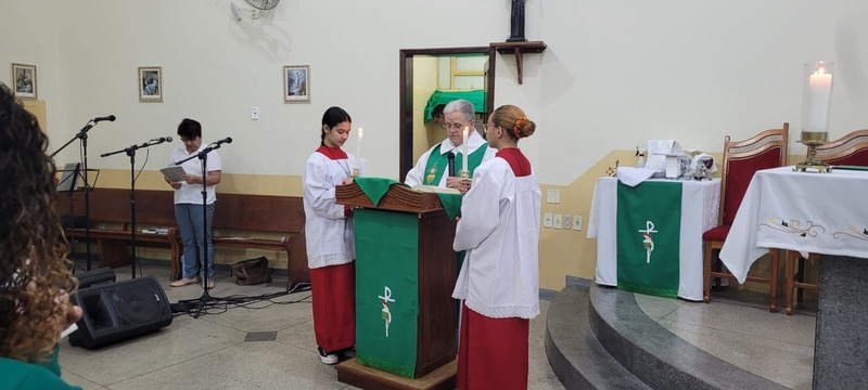 Aconteceu no sábado dia 20 de julho de 2024 às 19h30 na Comunidade Sagrada Família, a Missa de encerramento da Semana Missionária. Muitos Missionários que assumiram as visitas, uniram-se junto à Comunidade para este momento celebrativo. A Missa foi presidida pelo Pároco da Paróquia São Geraldo Magela, Padre Aloísio Vieira.