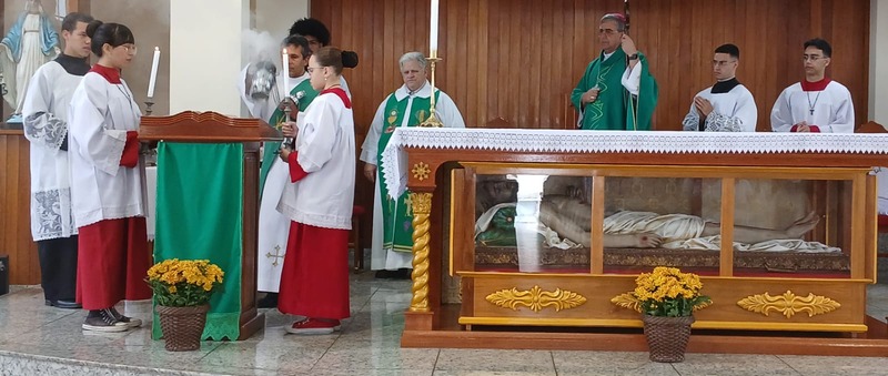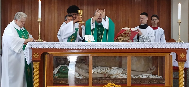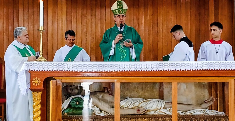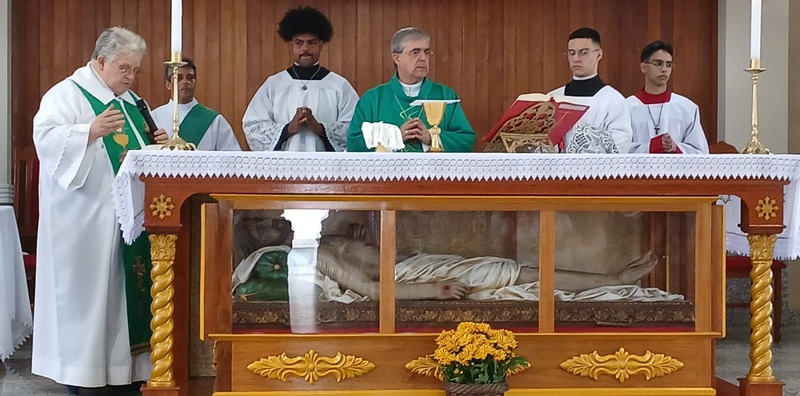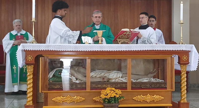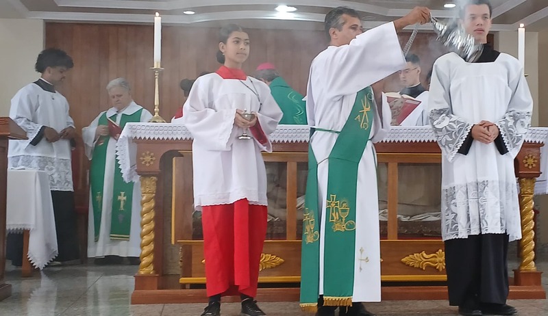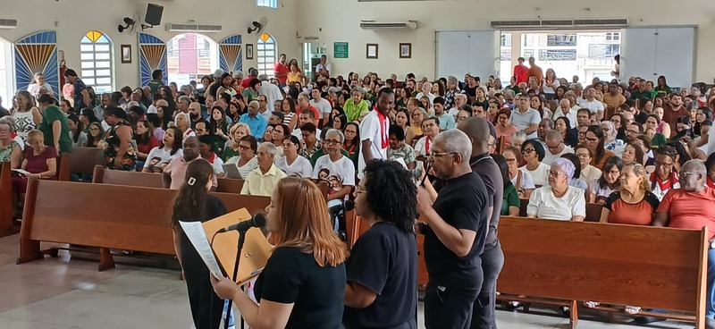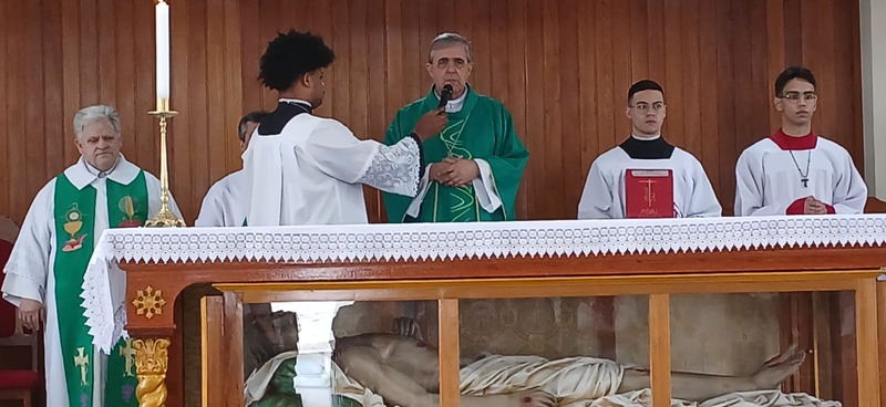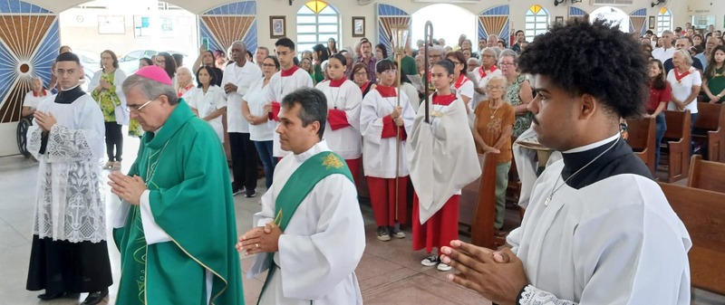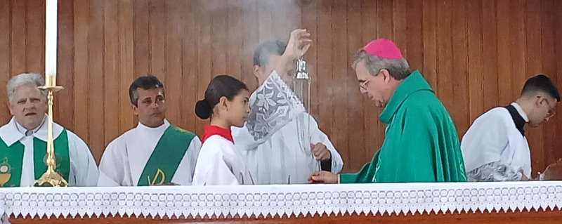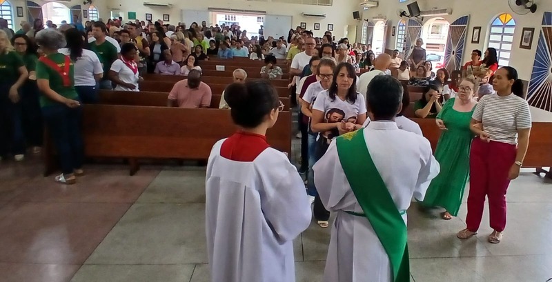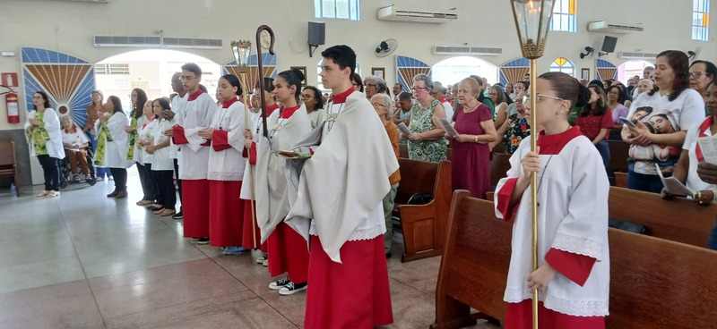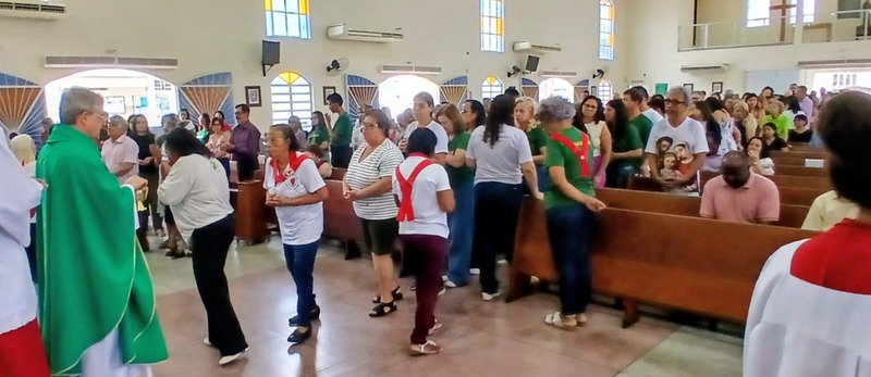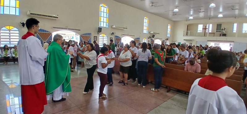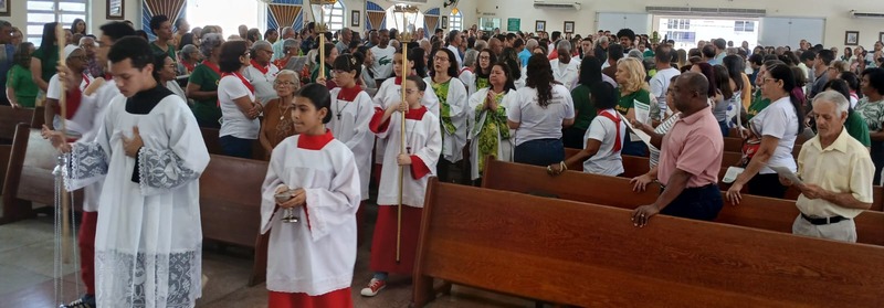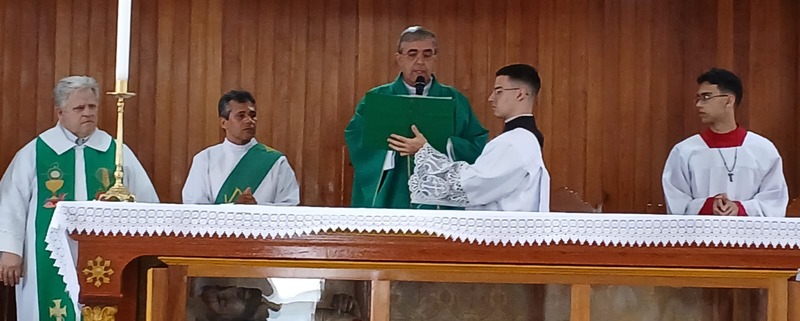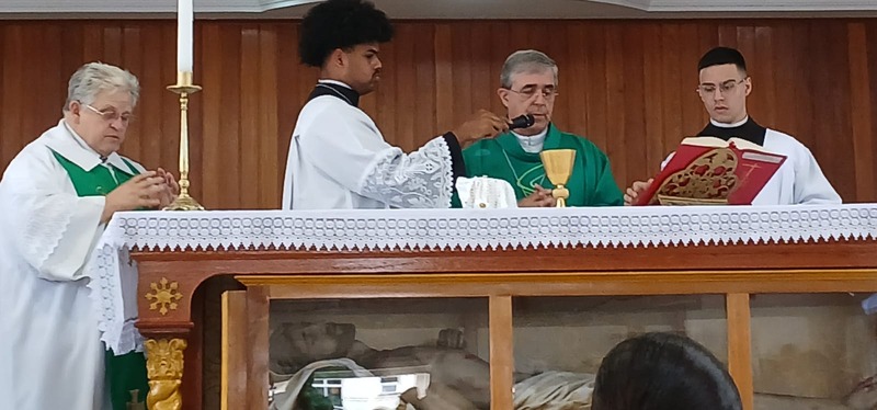 Após quatro dias em contato com as comunidades, entidades parceiras, Padres, Diáconos, lideranças das comunidades e outras vivências pastorais, chegou o momento de celebrar com o povo de Deus de todas às nove comunidades da Paróquia, e com uma Liturgia distribuída entre as equipes paroquial.