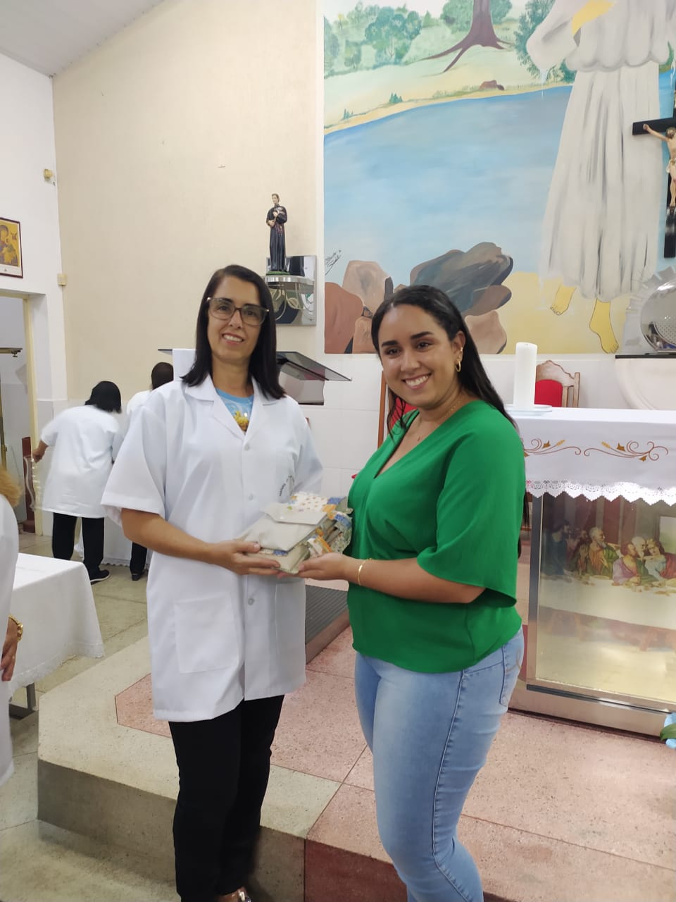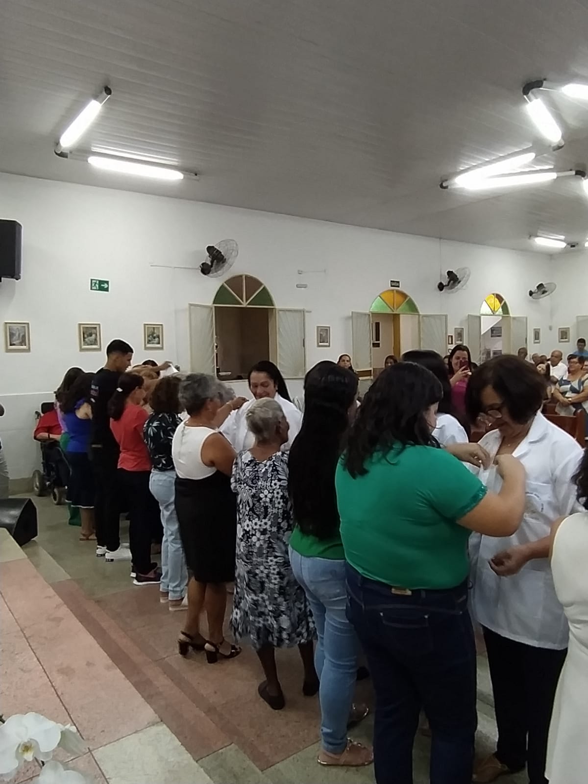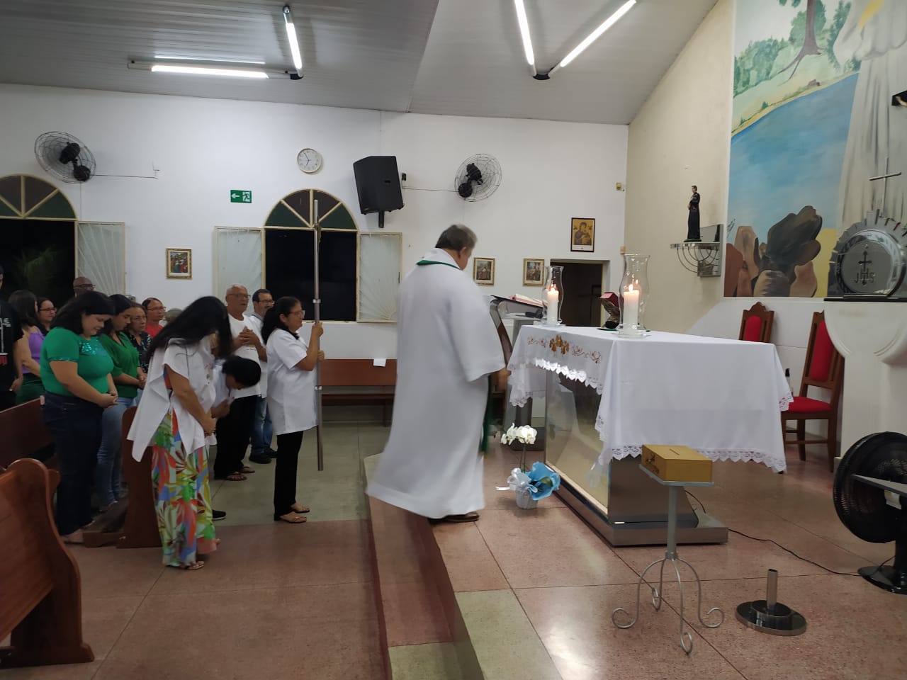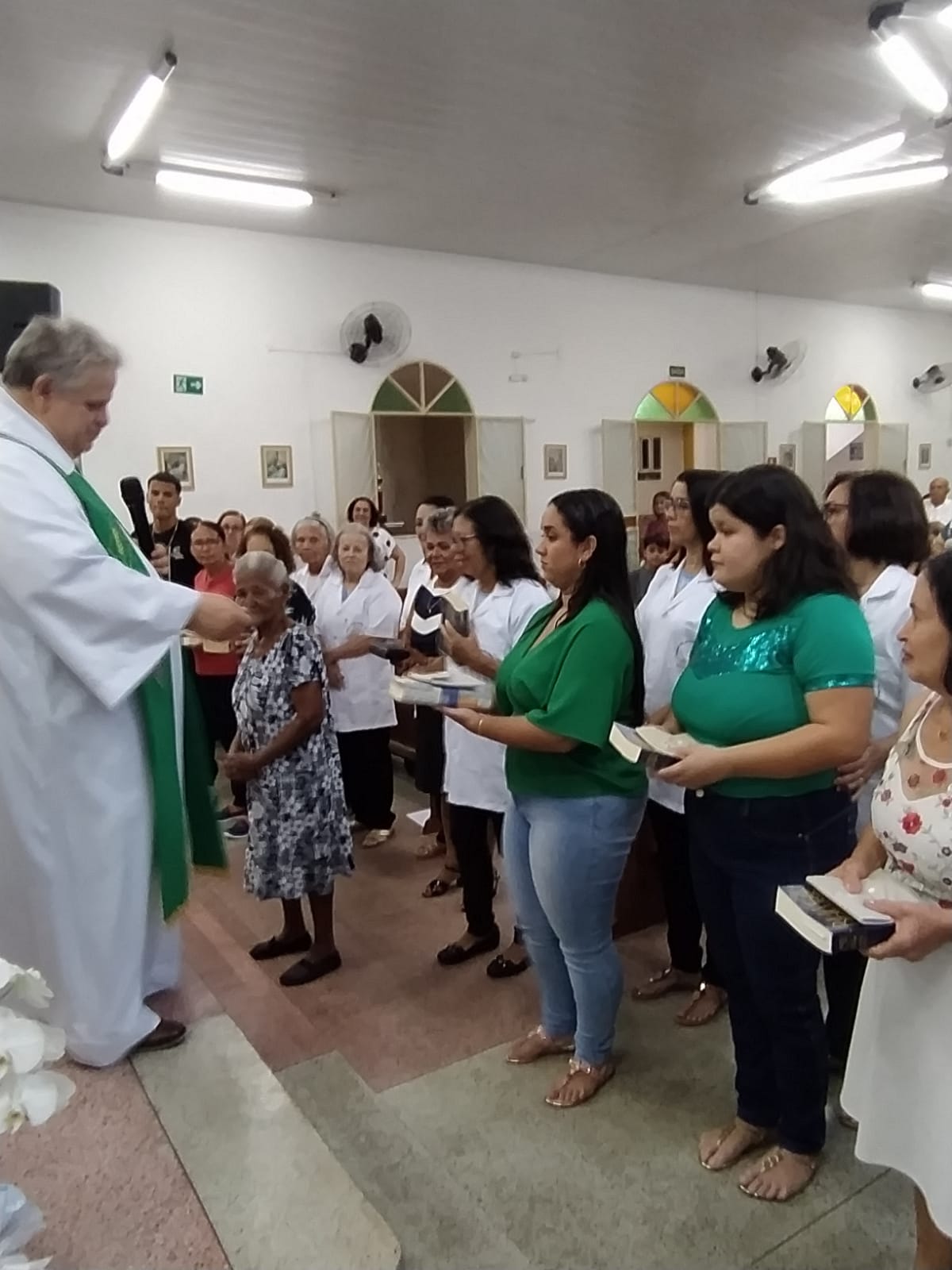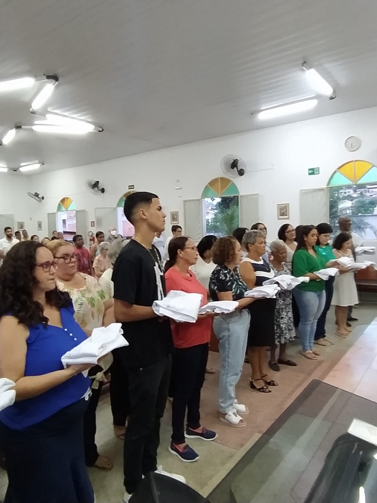 Neste dia, os ministros fizeram o seu compromisso de fé e o Pároco fez a imposição das mãos os abençoando. Em seguida, os padrinhos entregaram as vestimentas aos novos ministros que receberam das mãos do Pároco, a Sagrada escrituras, as alfaias e tecas, de acordo com cada ministério.