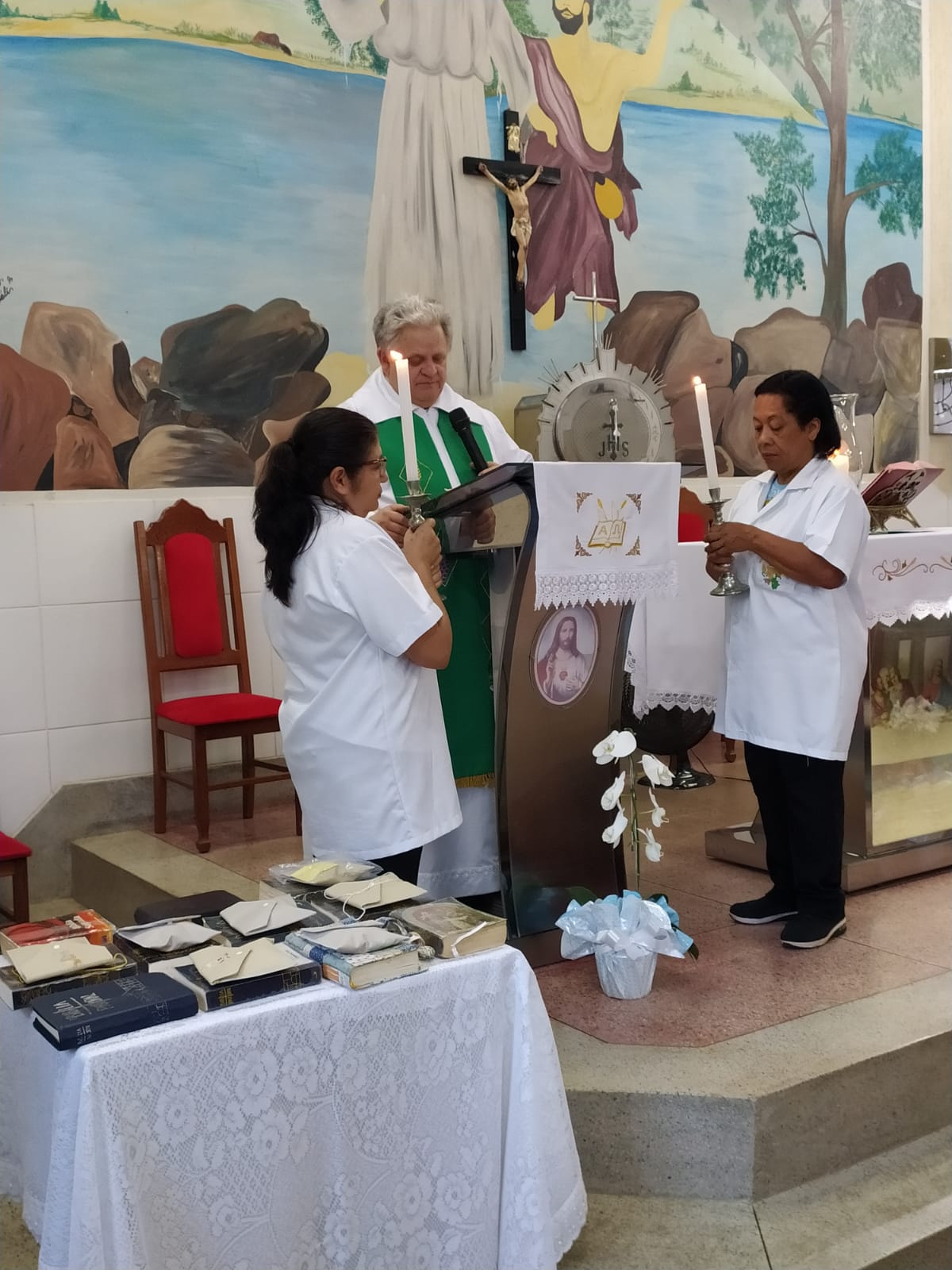 No último sábado, 4 de fevereiro, às 18h na Comunidade Maria de Nazaré, aconteceu a Santa Missa de investidura dos novos ministros extraordinários da Palavra e da Eucaristia, presidida pelo Pároco Aloisio Vieira. O novos ministros foram apresentados ao Pároco pela coordenação da comunidade e da liturgia, onde ambos atestaram que os candidatos estariam aptos e passaram pela formação da Paróquia.
