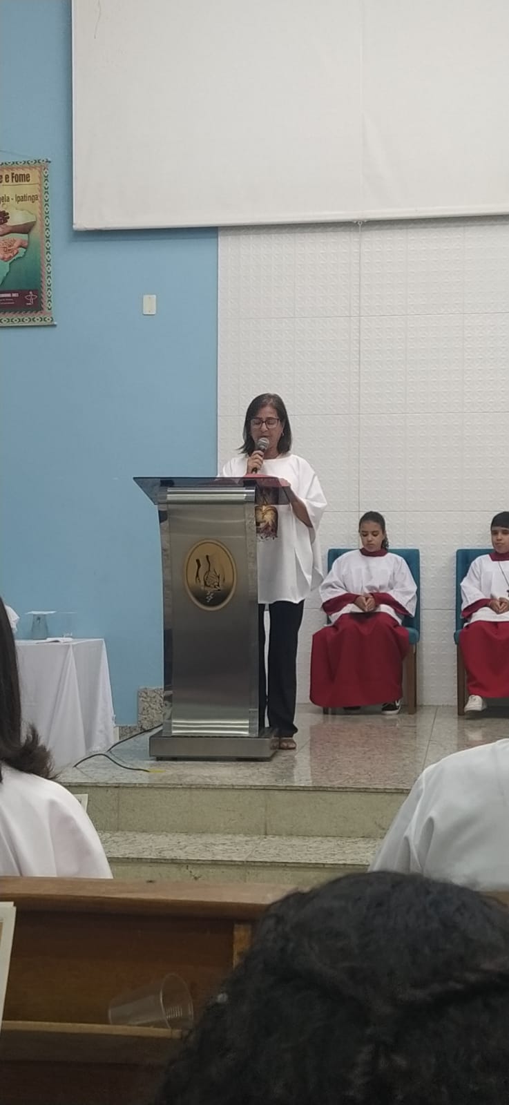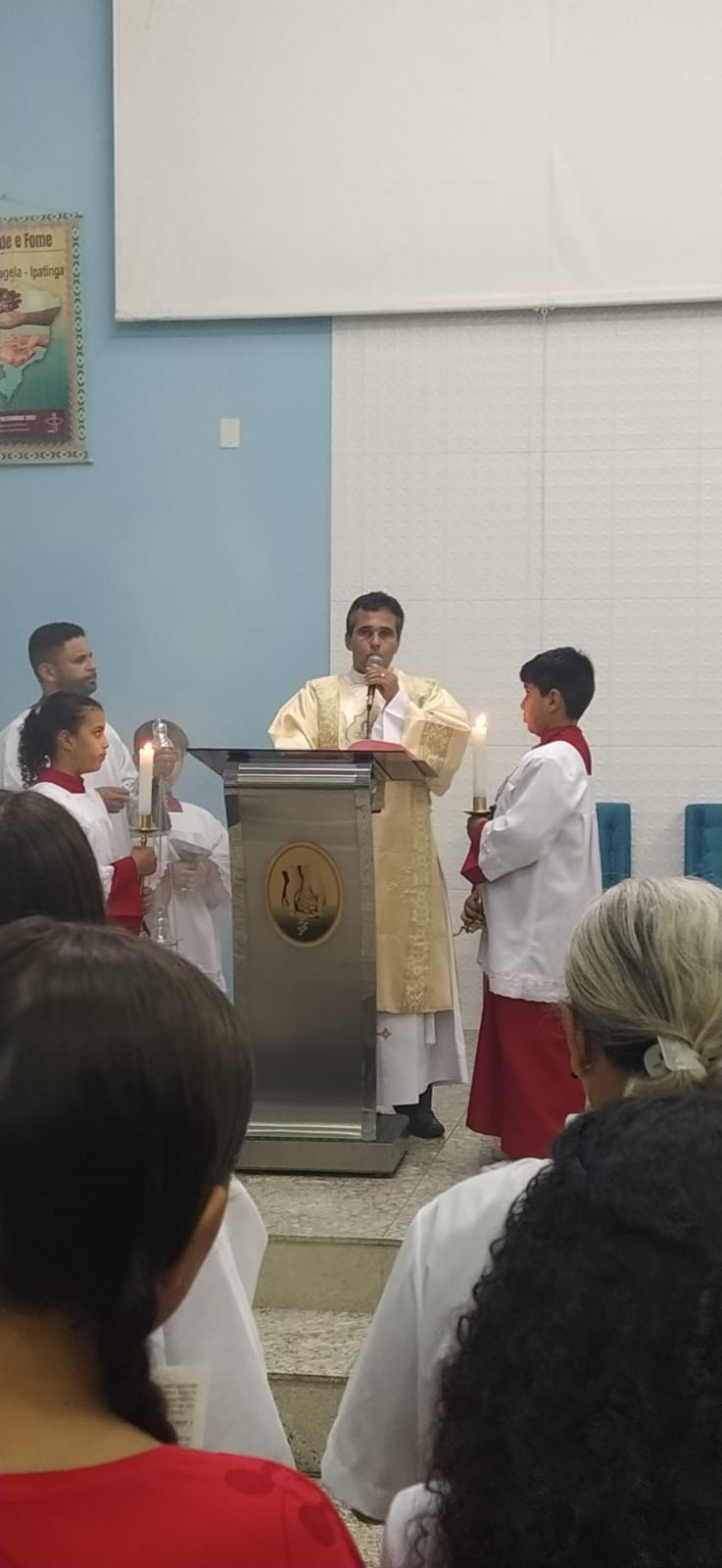 Foi entregue também nessa missa os santos óleos, abençoados na missa do Crisma pelo bispo Dom Marco Aurélio realizada na parte da manhã na Catedral de Itabira-MG. Nos foram trazidos pelo casal, José Sebastião (Luizinho) e Maria de Lourdes da comunidade São Sebastião.
