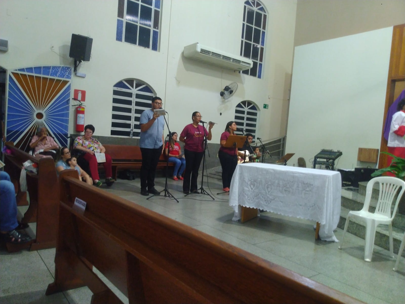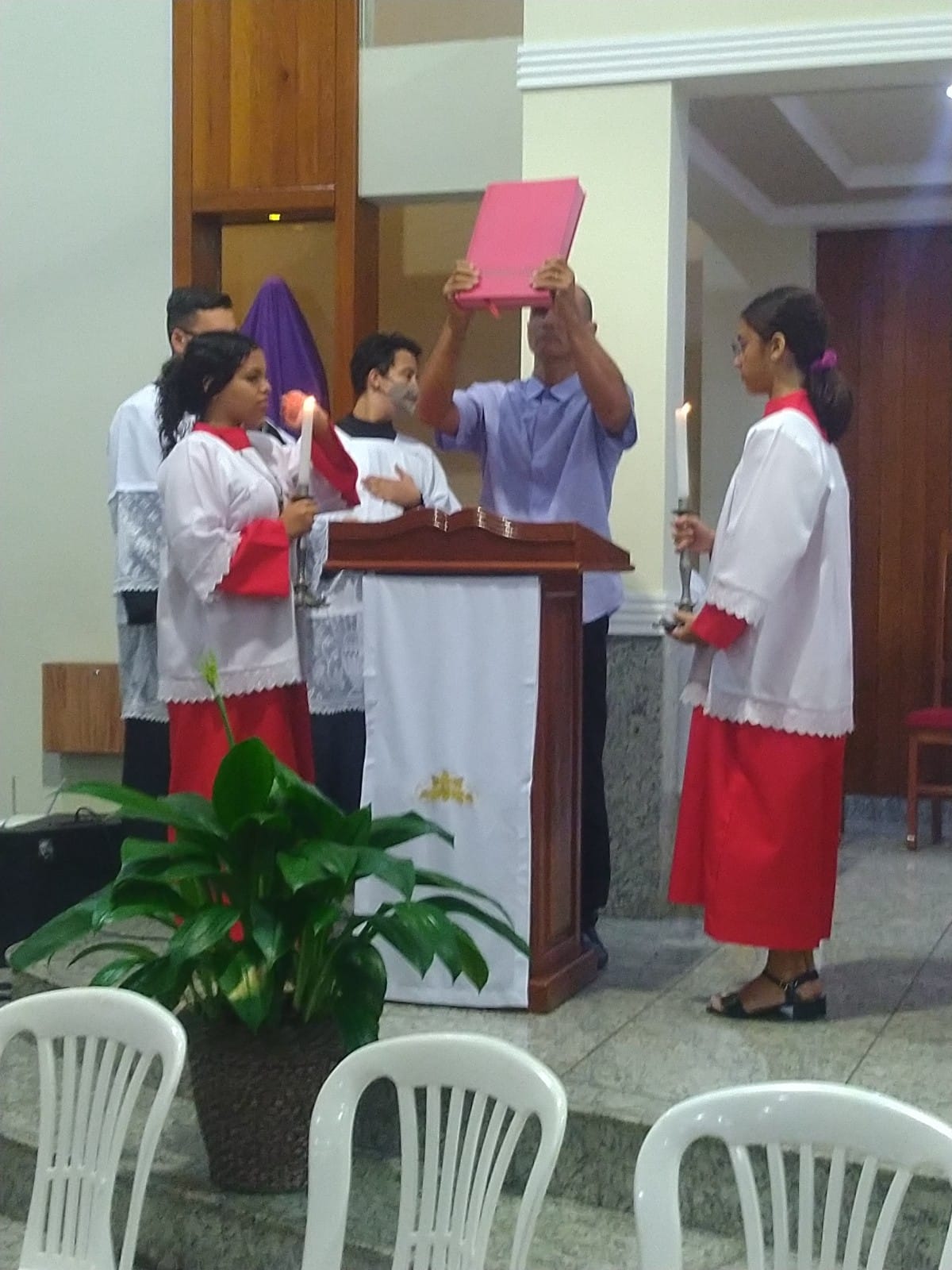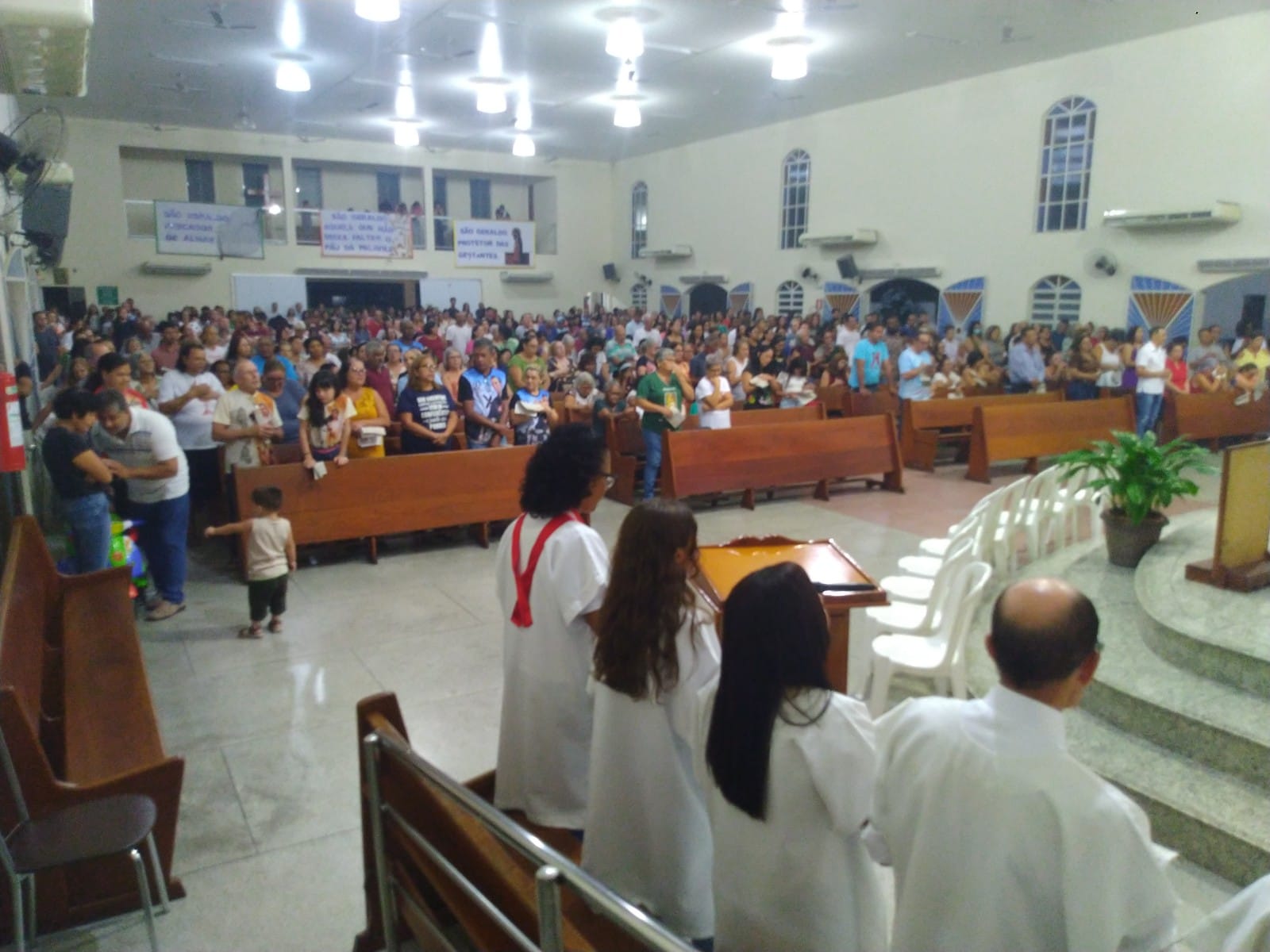 Teve início às 19:30h tanto na comunidade São Geraldo Magela – Bom Jardim quanto na comunidade Nossa Senhora das Graças- bairro Esperança. Presidida no Bom Jardim pelo Padre Geraldo Morini e assistência do Diácono Henrique. E no Esperança pelo Padre Aloísio com assistência do Diácono Rogério.