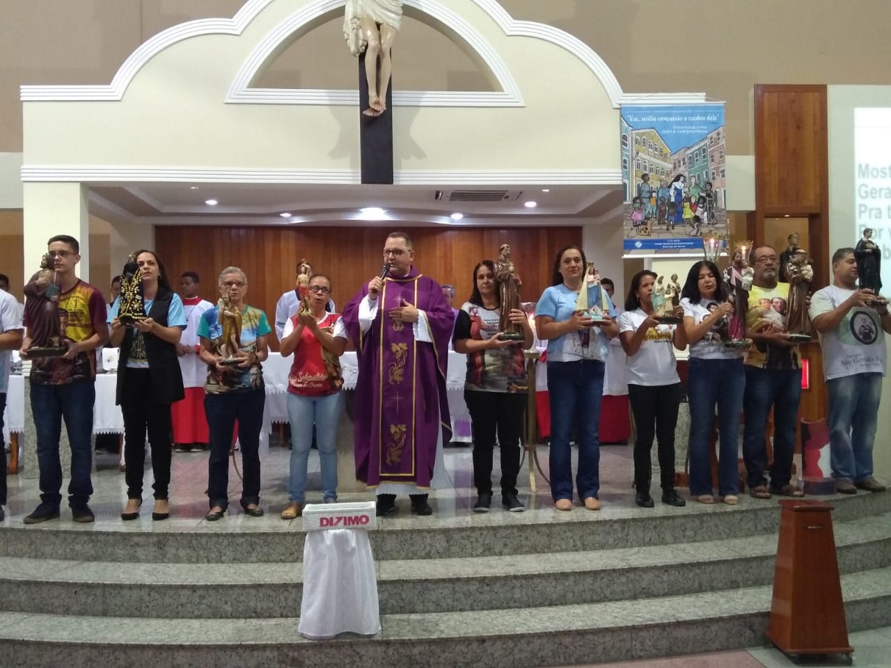 Numa demonstração de unidade as comunidades levaram as imagens dos seus padroeiros
