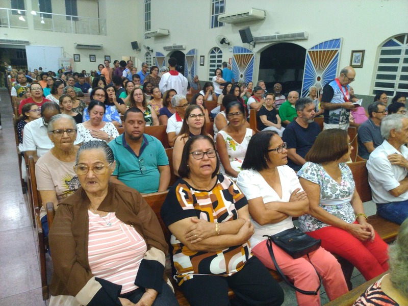 Iniciou com a oração do terço na pracinha do bairro, em seguida saímos em procissão rumo à matriz, onde aconteceu a Santa missa presidida por Padre Aloísio Vieira e auxiliada pelo Diácono Henrique Armstrong Carvalho Rodrigues.