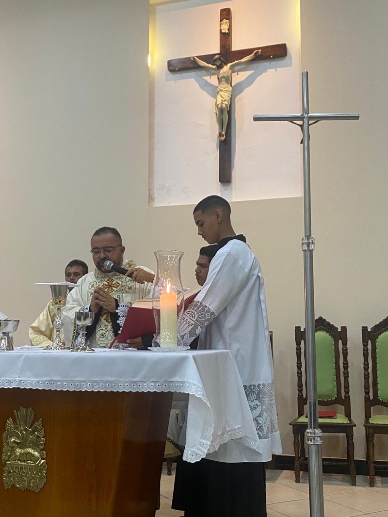 Lembrando que o padre José Cláudio é filho da dona Maria da Conceição e do senhor Matuzinho Augusto, afilhado da Maria do Socorro Grajaú, foi criado aqui onde é a Comunidade São José, onde foi um dos primeiros catequistas e deu seus primeiros passos do seu apostolado.