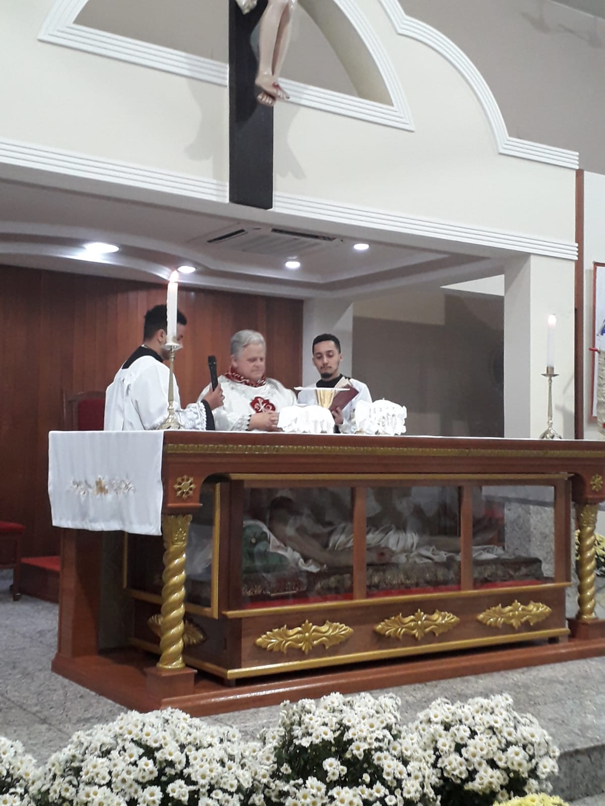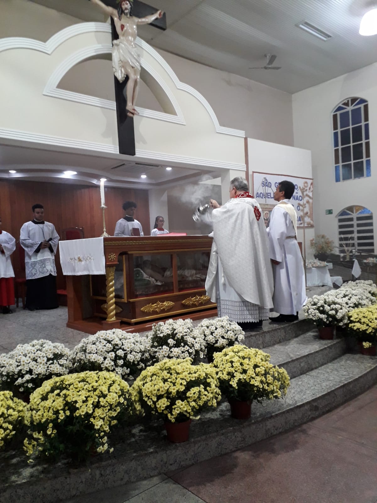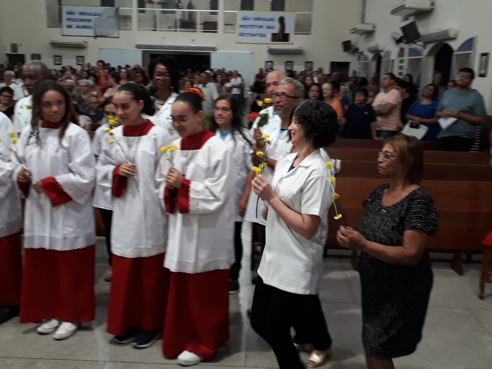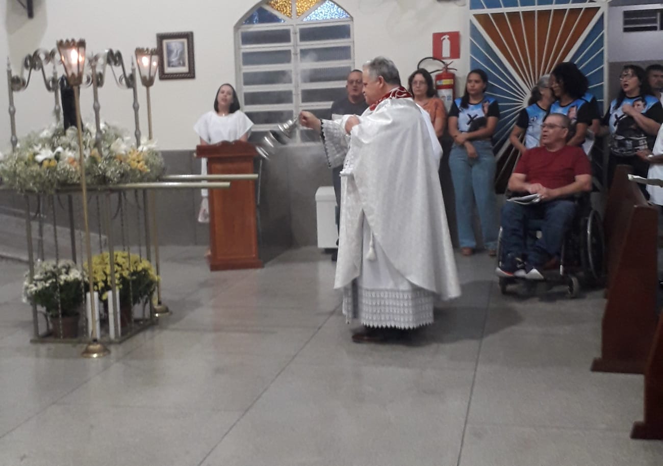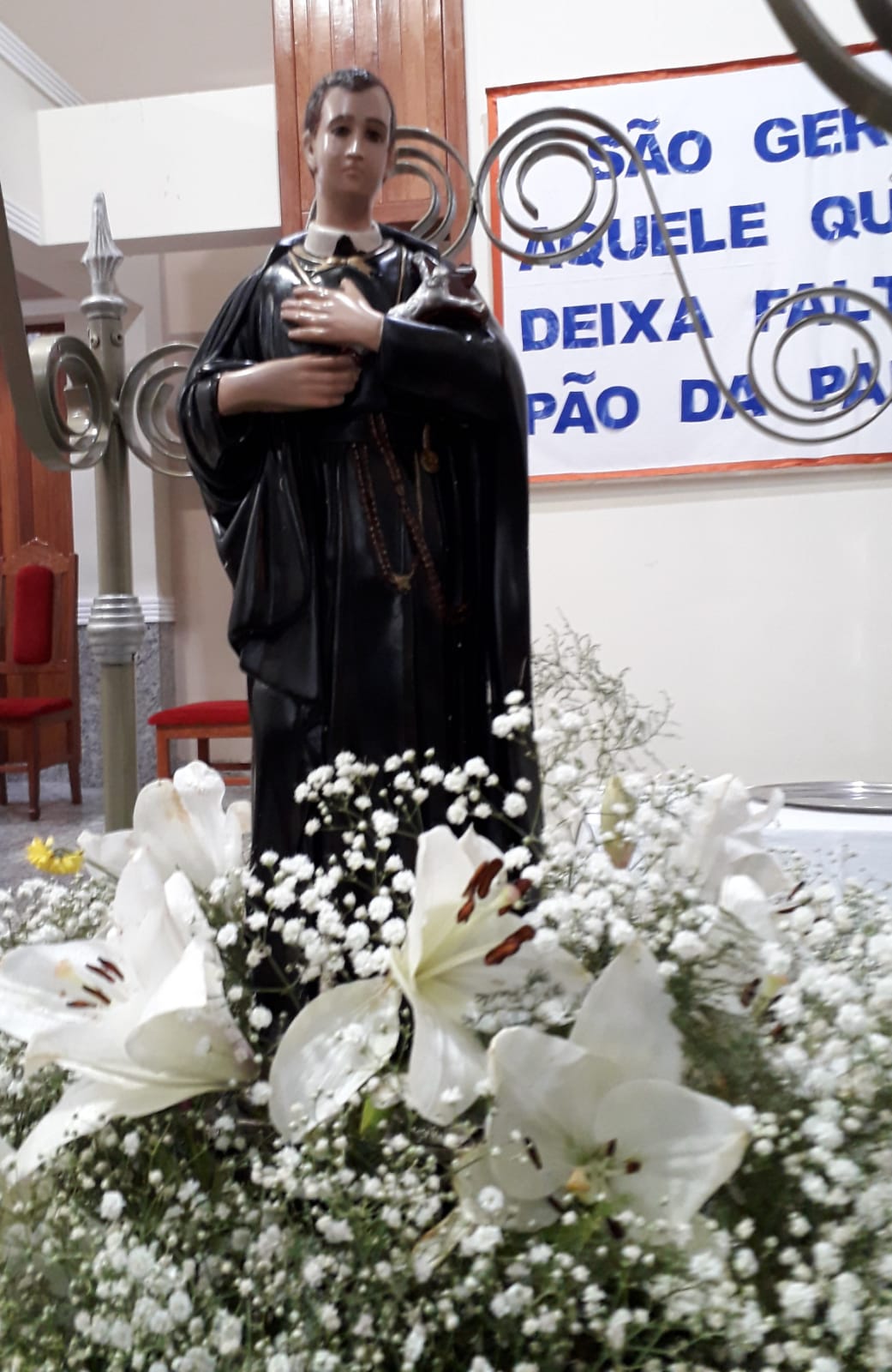 Presidida pelo nosso Pároco Padre Aloísio Vieira, a celebração, de responsabilidade da Liturgia da Comunidade Nossa Senhora das Graças, contou com a presença massiva de nossos paroquianos, todos desejosos de prestar homenagens ao nosso amado padroeiro São Geraldo. Nesta celebração, o oferecimento de flores ficou por conta dos padrinhos e madrinhas do andor com participação de todos os Ministros (MECE), Ministros da Palavra, Ministério de Coroinhas e Acólitos.