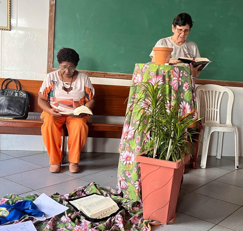 Iluminados pela Palavra de Deus em Amós 7,12-15, Efésios 3,1-10 e Marcos 6,7-13. A Assessora Adenildes Souza Martins fez refletir: O que é forte em relação à Missão nas três leituras bíblicas? Assim como o Chamado, o Envio e a Resposta está presente nas leituras, assim também deve estar em nossas vidas, no dia a dia.