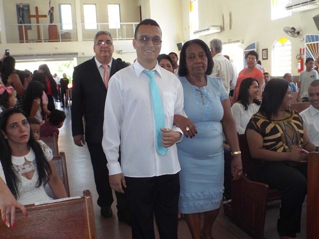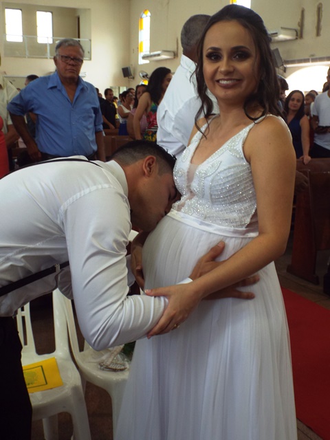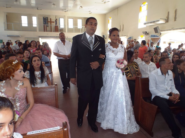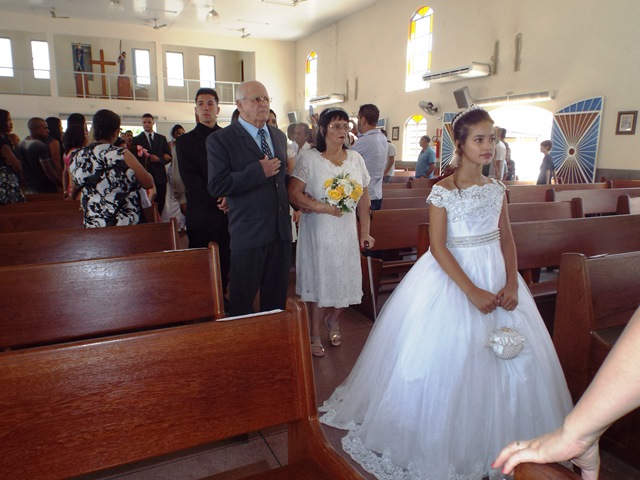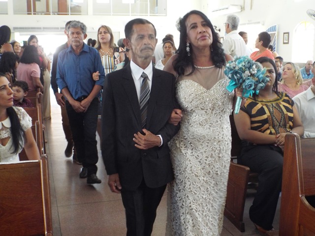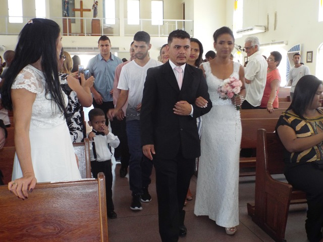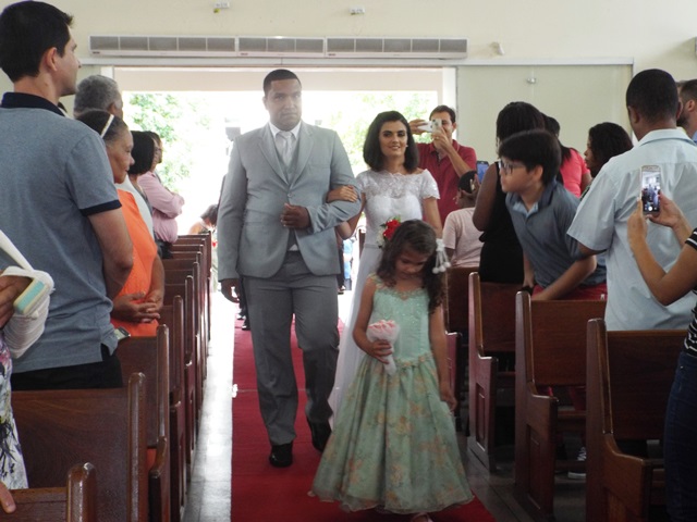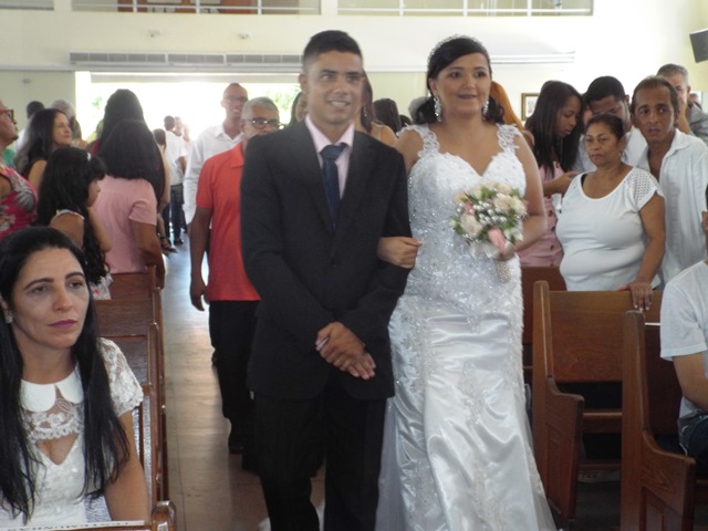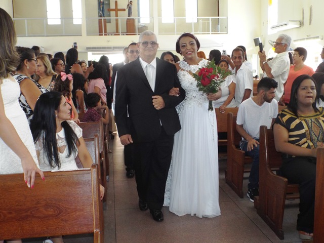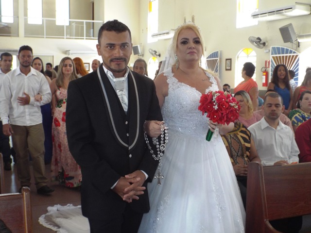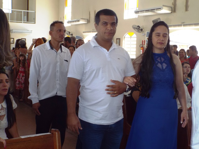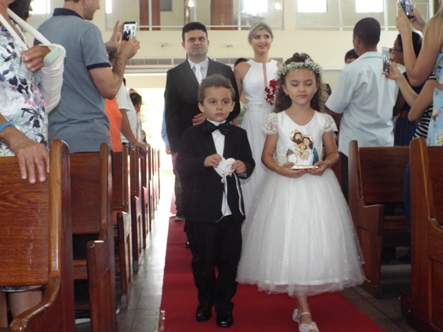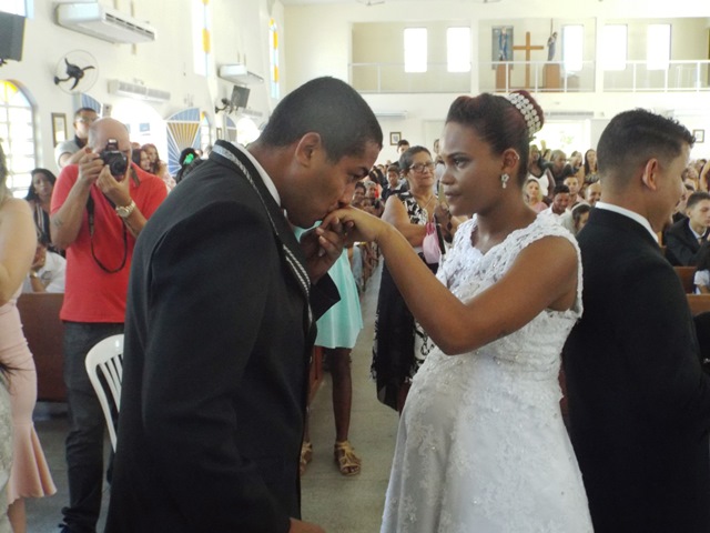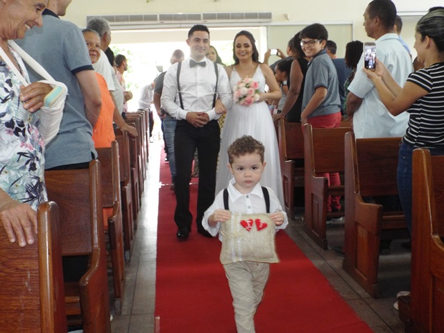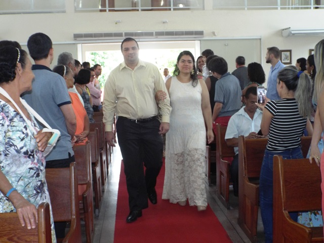 Perante uma igreja repleta, familiares e amigos acompanharam esse momento em que os noivos, deram o ‘sim’ no altar, perante Deus e a igreja, renovando assim seus votos de fidelidade e amor.