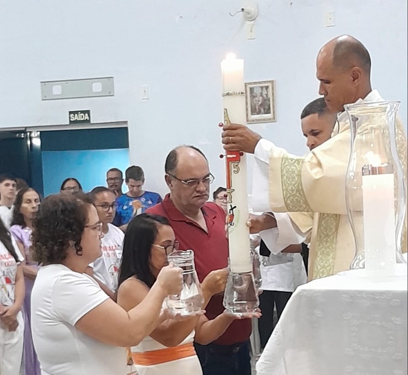 A Missa da Vigília Pascal foi marcada por momentos de profunda espiritualidade e emoção. Um dos pontos altos da celebração foi a Iniciação à Vida Cristã de seis pessoas da Paróquia São Geraldo, que receberam os sacramentos do Batismo, Crisma e Primeira Comunhão. Um momento especial e de grande alegria para todos os presentes.