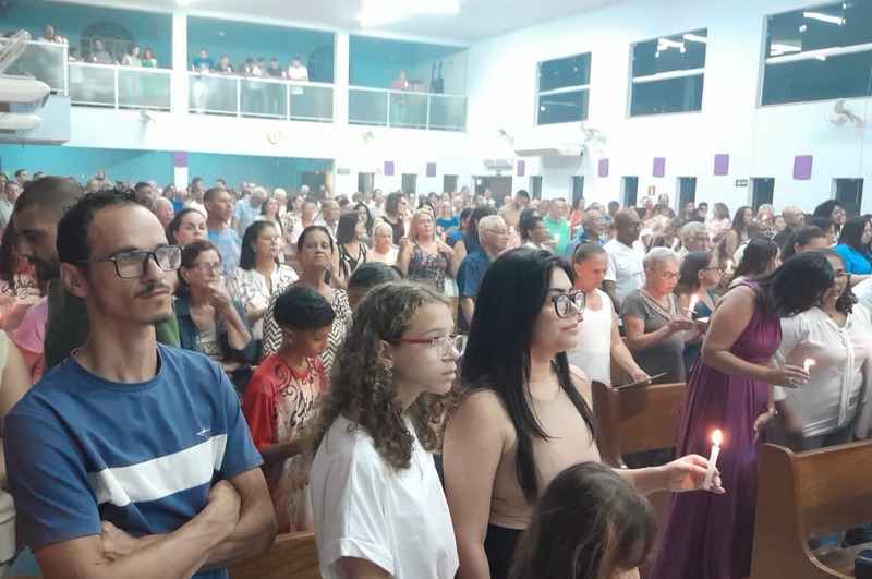 Como na Comunidade Matriz, a celebração, durou 3 horas e 40 minutos, contou com a igreja completamente cheia e uma participação muito expressiva dos fiéis, refletindo o espírito de fé e unidade da comunidade.
