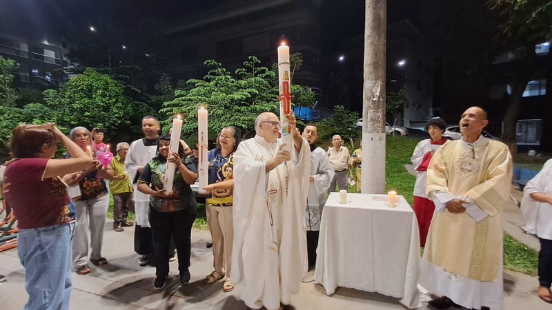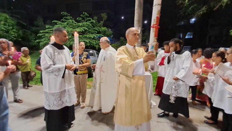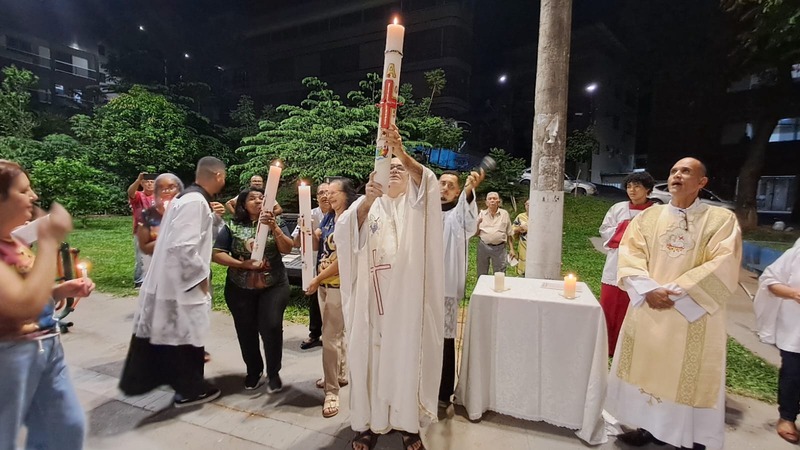 No Sábado Santo, 19 de abril, a Igreja celebrou a Vigília Pascal, a Vigília das Vigílias, momento em que se conclui o Tríduo Pascal. Antiquíssima tradição, esta celebração conta com a bênção do fogo novo, com que se acende o Círio Pascal, a Proclamação da Páscoa e a Renovação das Promessas do Batismo, e é dividida na Celebração da luz, a Meditação sobre as maravilhas que Deus realizou desde o início pelo seu povo, o nascimento espiritual de novos filhos de Deus por meio do sacramento do Batismo e por fim, a tão esperada comunhão Pascal. ⠀