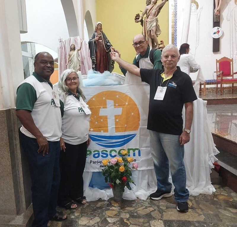 A Pascom da Paróquia São Geraldo Magela, mais uma vez se fez presente neste momento importante para comunicação na Igreja. O Assessor Espiritual da Pascom Diocesana, Padre Ueliton Neves, celebrou a Santa Missa e disse um ponto importante em sua homilia, “eu louvo a Deus pela Pascom de nossa Diocese, que usa os Meios de Comunicação para evangelizar”.