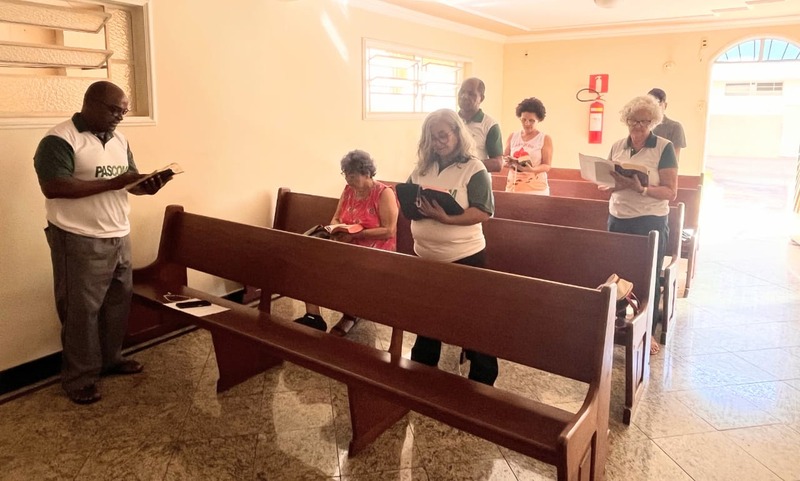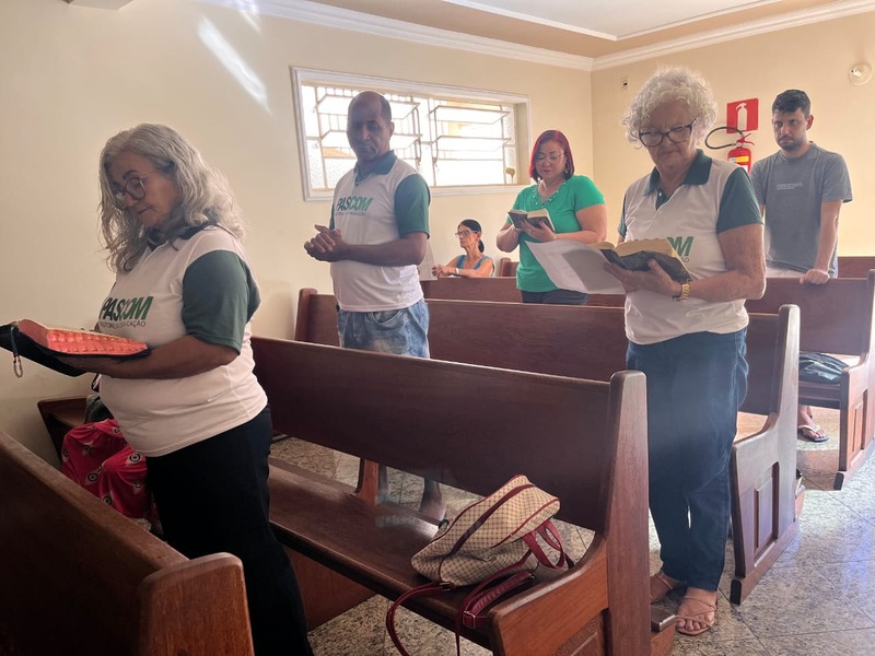 O momento de espiritualidade foi conduzido por Adelaide Santos (Tia Dê) e Fabrício Carvalho, com participação de todos ao Agentes. O momento da espiritualidade teve a oração do Santo Terço Mariano, leitura da palavra de Deus, meditação e reflexão. Ao final do Terço, todos cantaram: “A nós descei Divina Luz”. Que a Divina luz acompanhe a Pascom neste ano de 2025.