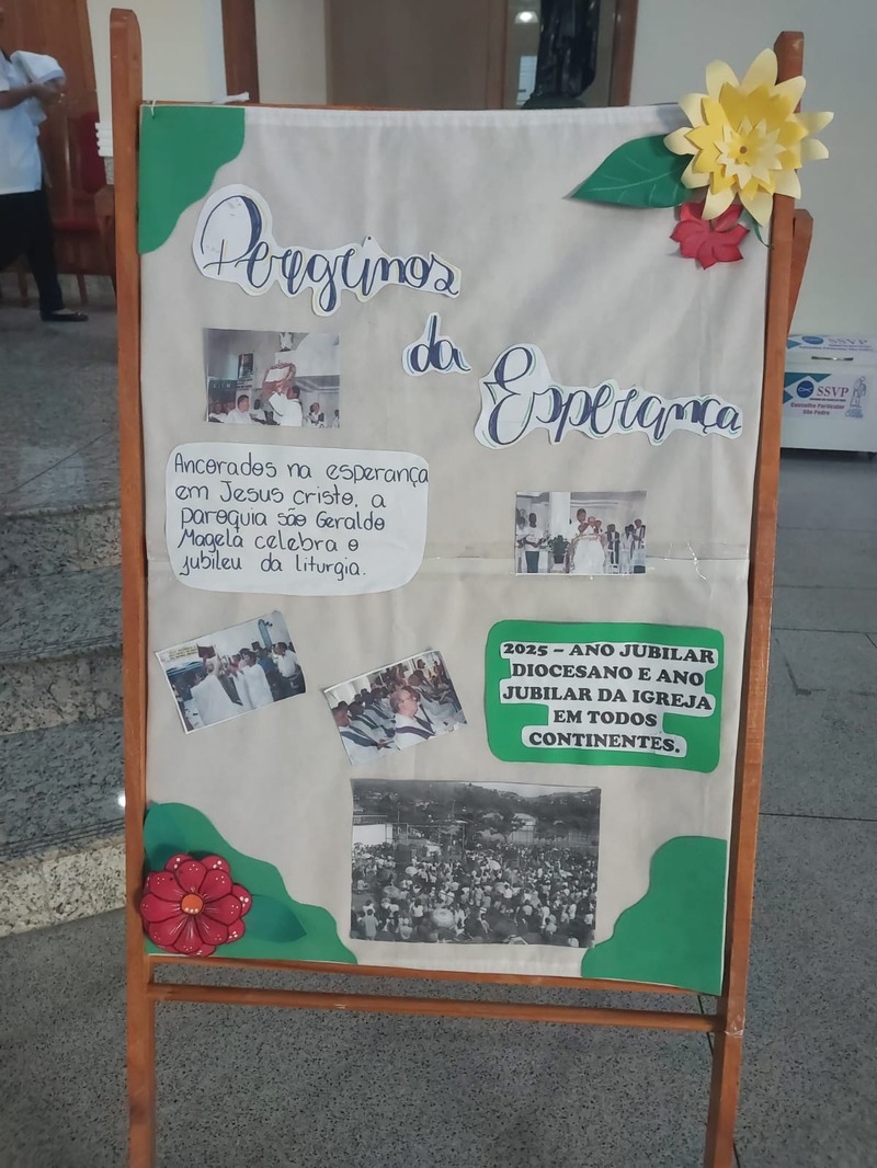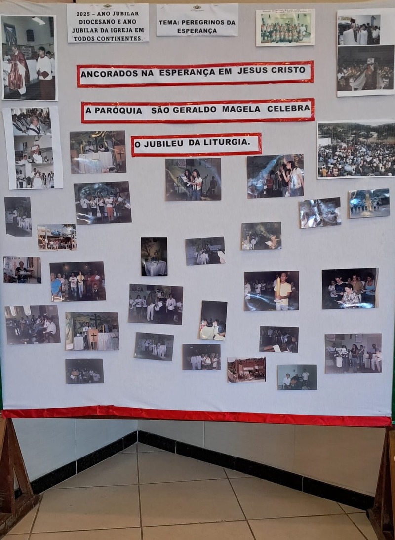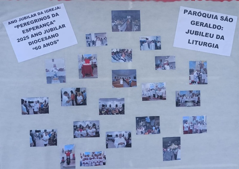 As Comunidades da Paróquia São Geraldo Magela celebraram o Jubileu da Liturgia, no final de semana dos dias 15 e 16 de fevereiro (sábado e domingo) de 2025. As Comunidades fizeram mural mostrando suas realidades, através de fotografias marcantes, que expressaram suas vidas.