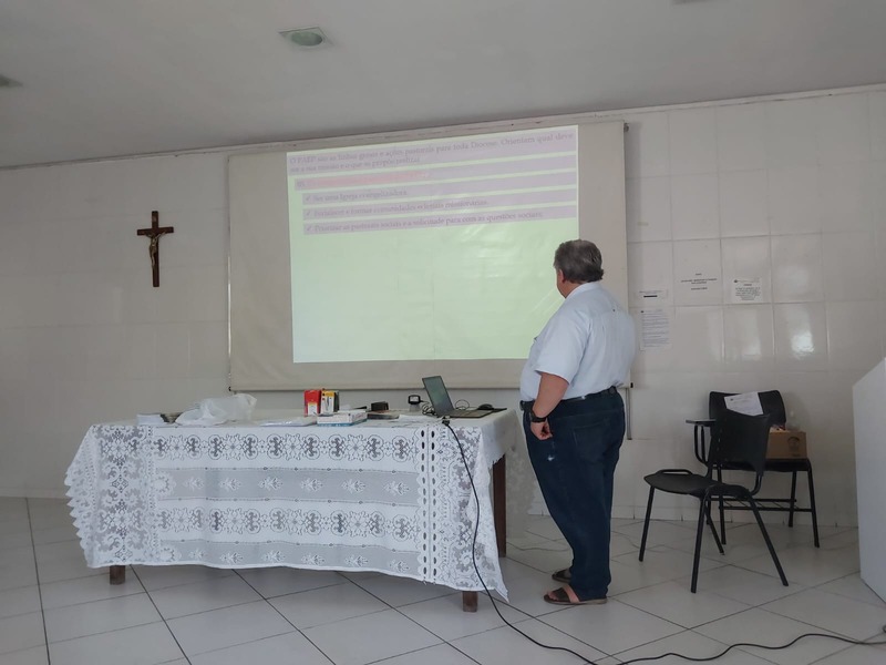 O encontro foi conduzido e coordenado pelo Pároco da Paróquia São Geraldo, Padre Aloísio Vieira, que realizou uma fundamentação em cima do material elaborado para o encontro, fazendo algumas intervenções necessárias, de acordo com a realidade que ia de encontro com a vivência Pastoral, Comunitária e Paroquial.