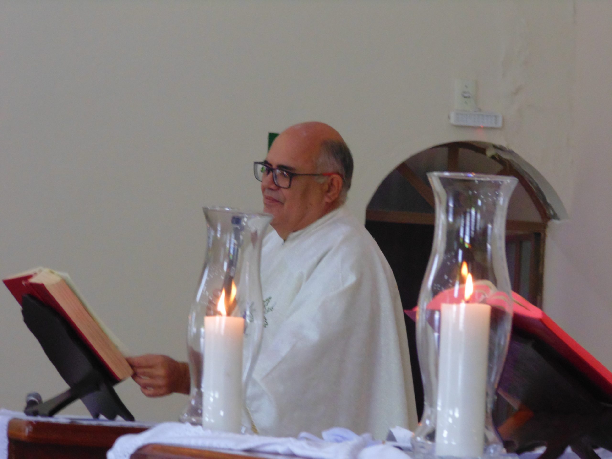 Em sua homilia, o Pe. Geraldo Morini, à luz do Evangelho do dia, mostrou-nos claramente que Jesus veio para nos redimir, e na ocasião, confirma os discípulos como testemunhas do Reino, promete o Espírito Santo, abençoa-os (envia-os), e por sua vez, os discípulos voltam alegres.