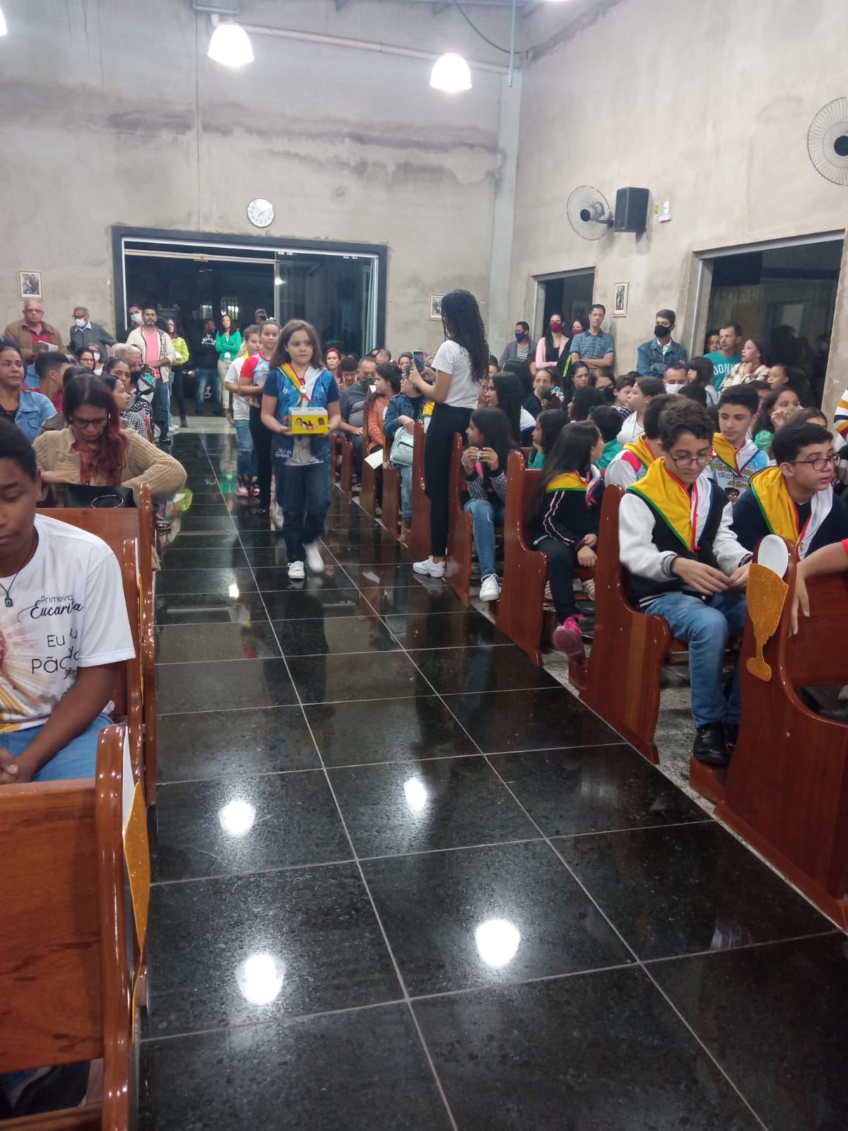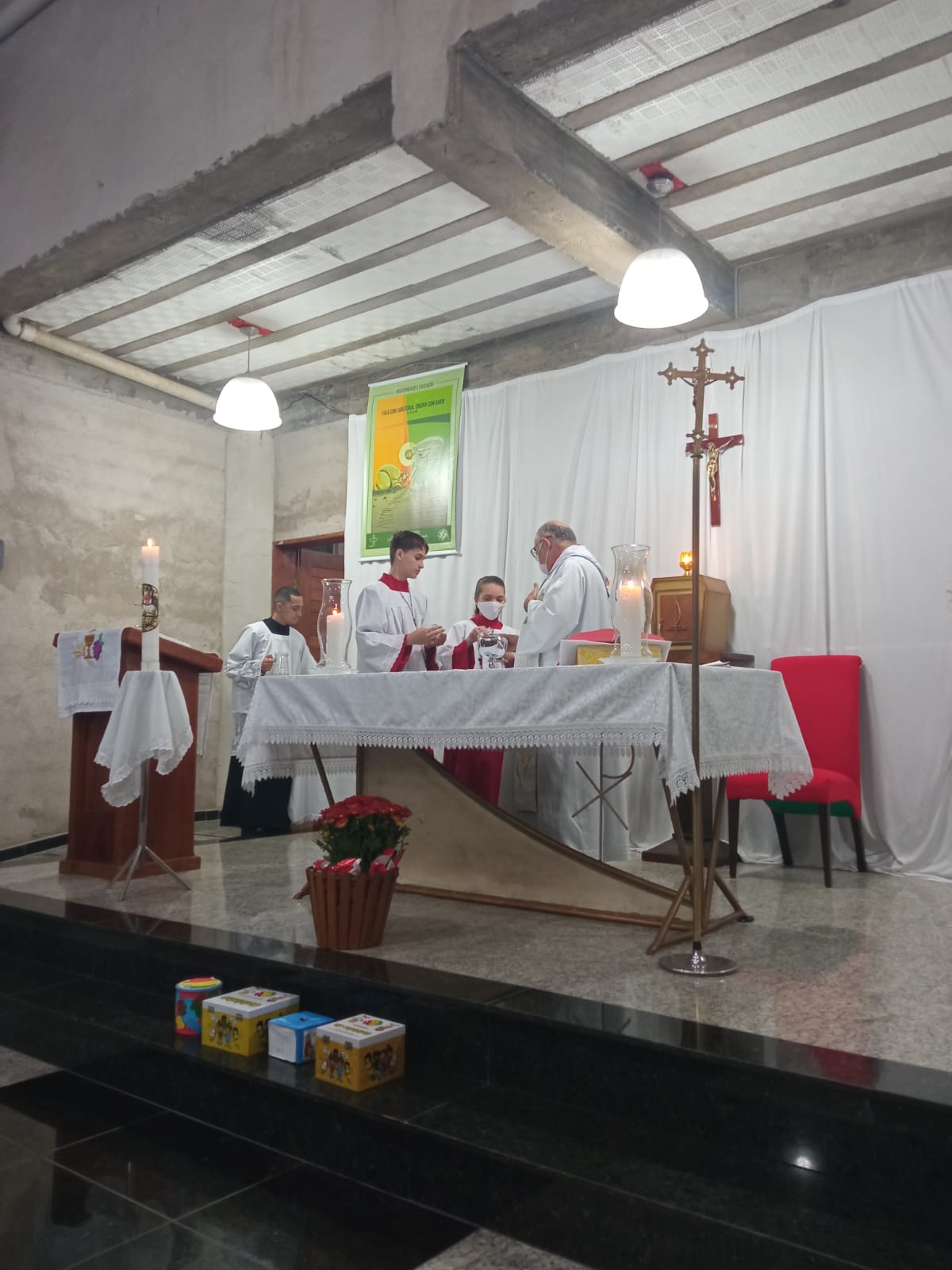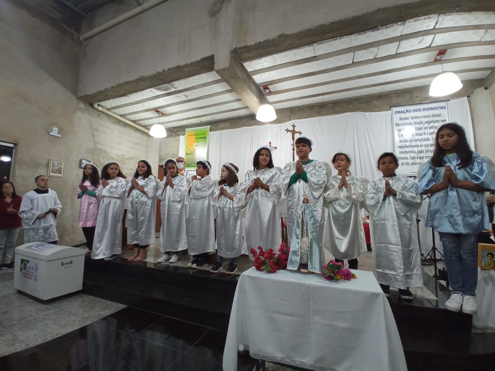 Presidida pelo Pe. Geraldo Morini, a celebração contou com a presença em massa de crianças da Comunidade São João Batista, visto que os momentos vividos nesta noite foram protagonizados por elas.
