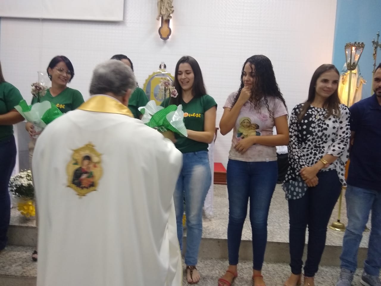 Ao final, os catequistas receberam uma singela homenagem e a cada um deles recebeu uma orquídea.